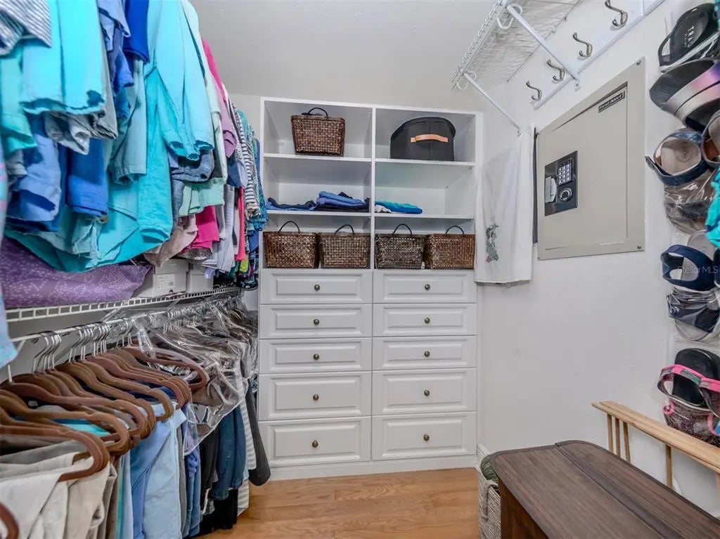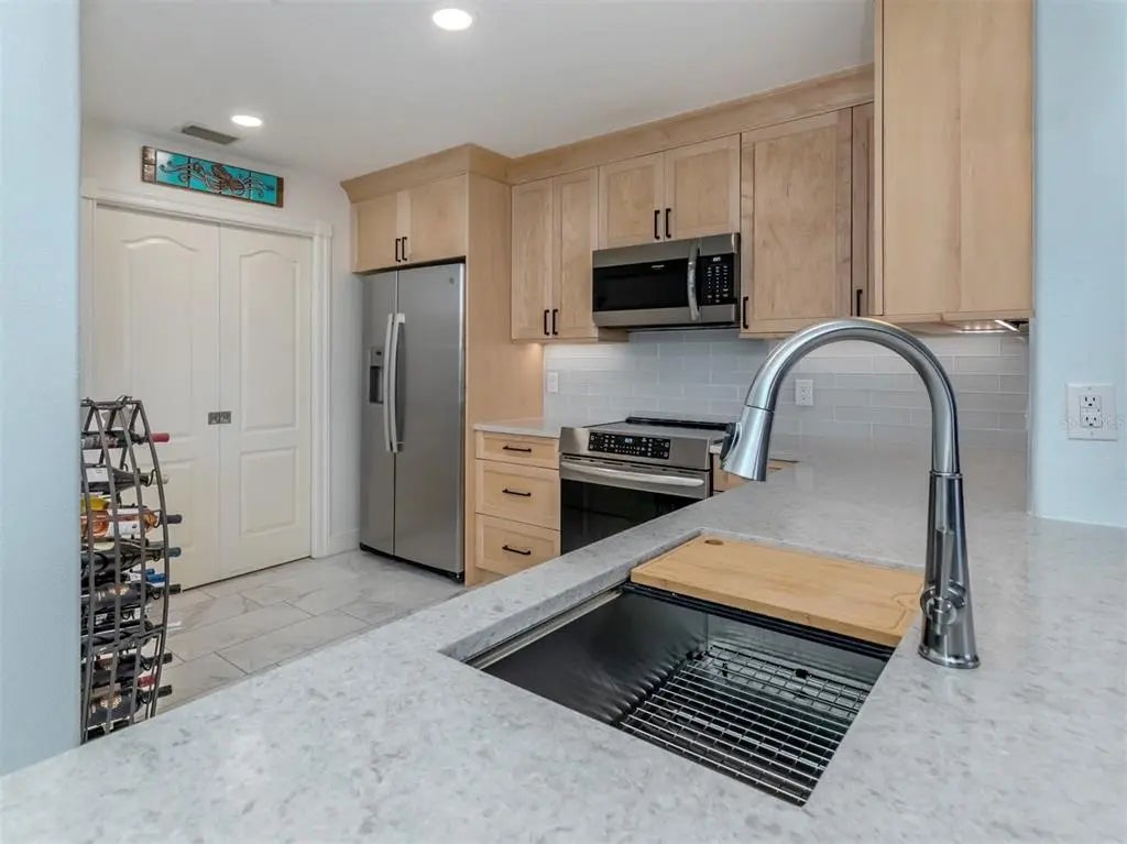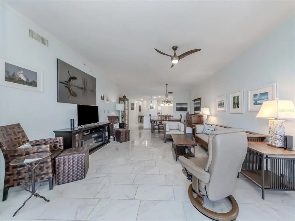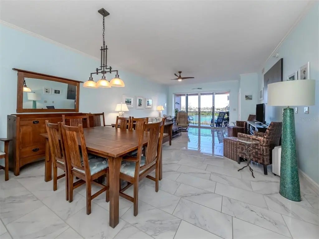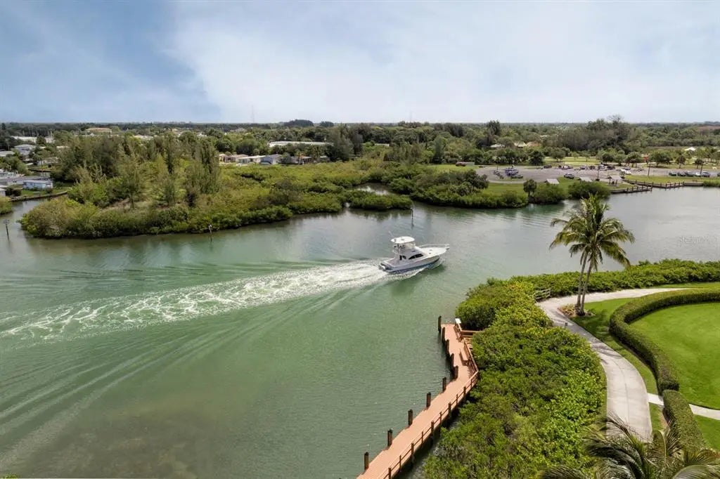 Under contract-accepting backup offers. RARELY AVAILABLE UPDATED 2 BEDROOM, 2 BATHROOM, PLUS FLEX ROOM UNIT IN PREMIER GATED WATERFRONT COMMUNITY STEPS AWAY FROM DOWNTOWN VENICE ISLAND. PET FRIENDLY. Quality 2004 construction, an open floor plan, and upgrades throughout - including IMPACT windows, sliding doors, and high ceilings - make this residence truly special. Located on the second floor, this condominium offers breathtaking views from the moment you step inside, perfectly positioned to showcase the natural beauty of the Intracoastal Waterway. Enjoy sunrises that sparkle across the water and golden sunsets over the Gulf from your private patio and balcony - ideal spots for morning coffee, evening cocktails, or simply taking in the scenery. Delight in daily coastal wonders as dolphins, manatees, and sailboats glide gracefully by. This beautiful unit is meticulously designed with new high-end finishes throughout, featuring upgraded designer lighting, quartz countertops, new appliances, an induction range, soft-close solid wood cabinets, and additional cabinetry on the kitchen peninsula’s back side for extra storage - plus added storage throughout the unit. The primary updated bathroom shines with new vanities, tile, and updated plumbing, while the guest bathroom features a beautiful shower accessible from the second bedroom through a pocket door. The primary bedroom’s bottom-up/top-down shade ensures versatile light control, and the walk-in closet includes built-ins for added convenience. Additional features include custom cabinets in the laundry room, a den/library with built-in cabinetry, and a Murphy bed with extra storage in the second bedroom that conveys with the home. The flex room also includes built-in cabinets for maximum functionality. Recent upgrades include a new A/C unit (2021), a hot water heater (2017), and nearly all kitchen appliances replaced within the past two years. The HOA fee is notably lower than those of other buildings in the community, and residents enjoy designated under-building parking for added convenience. Enjoy resort-style living with a heated saltwater pool, inviting BBQ area, and a private day dock complete with electricity and water - perfect for kayaking, paddleboarding, or short-term dockage. Launch your kayak or paddleboard with ease, then store them conveniently on-site. When you’re ready to explore, step outside to the Venetian Waterway Park, ideal for a waterside stroll or a bike ride along the Legacy Trail, all the way to Caspersen Beach - famous for shark’s tooth hunting. You’ll find yourself just steps from downtown Venice’s fabulous restaurants, unique shops, lively entertainment - including the renowned Venice Theatre - and, of course, the beautiful beaches. Within walking distance, you’ll also find tennis and pickleball courts. Picture yourself watching the enchanting Venice Christmas Boat Parade from your balcony, strolling downtown for dinner and a show, or joining friends for a morning game of pickleball. This isn’t just a home - it’s your front- row seat to the very best of coastal Florida living. Schedule your private tour today and experience The Waterfront on Venice Island. Opportunities like this are rare - don’t miss your chance to own one of the most sought-after residences in the heart of Venice.