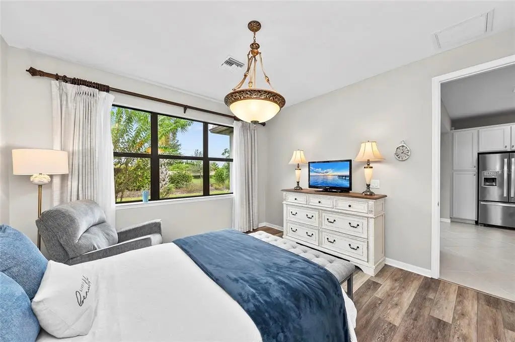 Under contract-accepting backup offers. Stunning CRESTVIEW Model – Lightly Lived In & Move-In Ready!Welcome to this beautifully maintained and fully furnished home, situated on a private lot in IslandWalk. With southern exposure, peaceful preserve views, and exceptional privacy, this home offers the perfect combination of comfort, style, and convenience.Inside, you’ll find gorgeous diagonal tile flooring throughout and a light-filled, open layout that feels both spacious and inviting. This is a 2 bedroom plus a den( could be utilized as a third bedroom)—ideal for hosting guests, enjoying hobbies, or working from home—with the two guest rooms and a full bathroom thoughtfully situated on one side of the house for added privacy.The primary suite features tranquil preserve views, an oversized walk-in closet, and a luxurious en suite bathroom with a frameless glass shower, dual sinks with quartz countertops, and elegant finishes.The chef’s kitchen is designed to impress with an oversized center island perfect for bar seating, 42" light cabinetry with crown molding, quartz countertops, and stainless steel appliances, including a French door refrigerator.The open-concept living and dining areas provide an ideal setting for entertaining or relaxing, enhanced by upscale features like plantation shutters in the dining room, 9-foot ceilings, 8-foot doors, high-end fixtures, and pocket sliding doors that lead to the lanai.Off the kitchen is the laundry room with additional cabinets and utility sink. The oversized lanai, complete with privacy shades, comes fully furnished making ready for outdoor enjoyment from day one.IslandWalk is one of VENICE'S most social communities with a FULL TIME ACTIVITIES DIRECTOR, countless events and clubs and activities, TWO community clubhouses, an EVENT center, TWO resort style pools, a LAP pool, 12 PICKLE BALL Courts, 8 Har Tru Tennis Courts, DOG PARK, Playground, Basketball Court, Community Garden- the list goes on! The entire community is surrounded by miles and miles of golf cart trails, walking and biking trails, VENETIAN bridges and water! The Atlanta Braves Stadium is a short bike ride away- enjoy year- round events and activities. The new marketplace features PUBLIX, restaurants, shopping, gas station, etc! Downtown Wellen Park features an 80-acre lake, retail shops, restaurant waterfront dining and rooftop decks, pedestrian-friendly streets, a splash pad, a playground and a public town hall gathering place that hosts live theater and music events. Coming soon to downtown Wellen Park- a hammock grove and a permanent food truck area. IslandWalk HOA includes grounds maintenance, CABLE, WIFI, amenities, and 24-hour guard.Skip the time and expense of furnishing a new home. This immaculate, move-in-ready property makes it easy to start living your best Florida lifestyle right away!