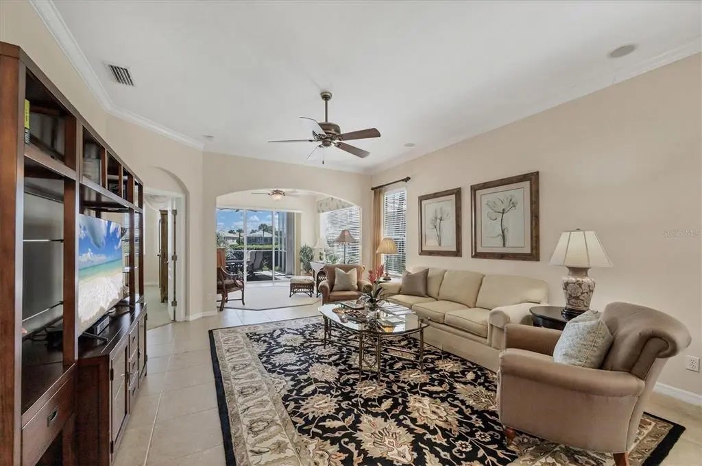 Welcome to your beautiful lake retreat, a 3-bedroom, 2.5-bath home where comfort meets tranquility. Situated along one of the most desirable streets in Buckingham Meadows, this home embraces a full lake view, offering a daily backdrop of sparkling water and stunning sunsets. From the moment you arrive, you'll appreciate the soft, inviting décor and crown molding throughout, creating a warm and elegant feel. The open design flows easily into the Florida room, inviting in natural light and framing the water beyond. Step out to your screened lanai and take in the peaceful views, perfect for morning coffee, evening gatherings, or simply unwinding in your own private oasis. This home comes fully furnished, making it move-in ready so you can immediately enjoy the Florida lifestyle. A two-car garage adds convenience, while the spacious layout balances everyday living with effortless entertaining. Beyond the home, residents of Buckingham Meadows at St. Andrews enjoy the wonderful pools in their community. A variety of golf and social memberships at The Plantation are available but not mandatory. Conveniently located near The Wellen Park Town Center, Atlanta Braves Training Facility, local beaches and downtown Venice. Whether you're seeking a full-time residence, a seasonal getaway, or an investment opportunity, this home is the home for you. Located in Buckingham Meadows, St. Andrews, within The Plantation Golf & Country Club, this home is more than a place to live, it's a lakefront retreat ready to welcome you home.