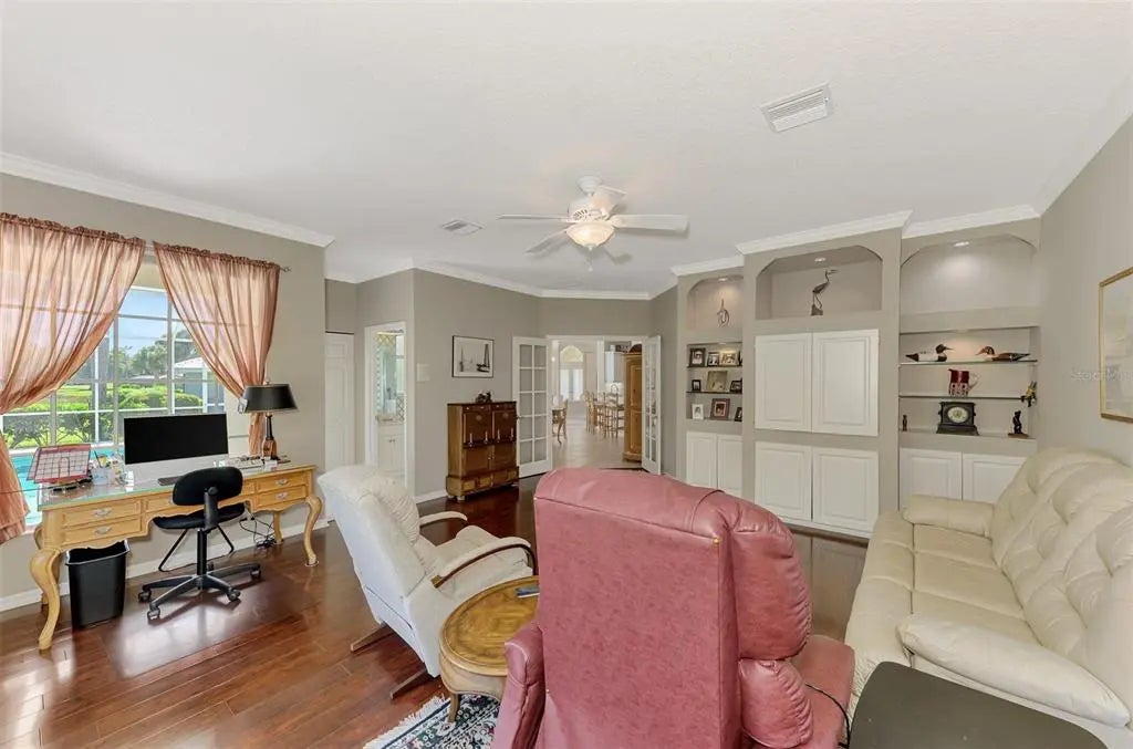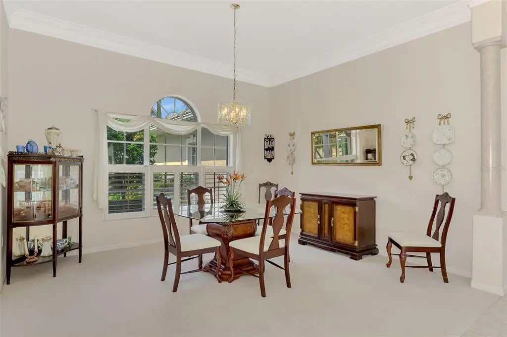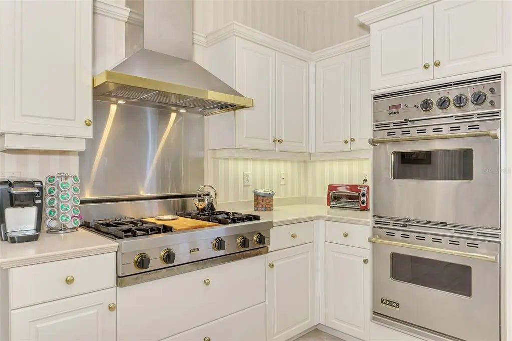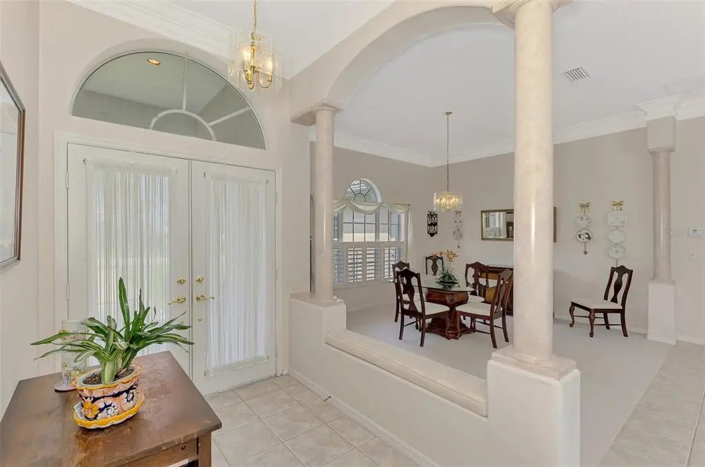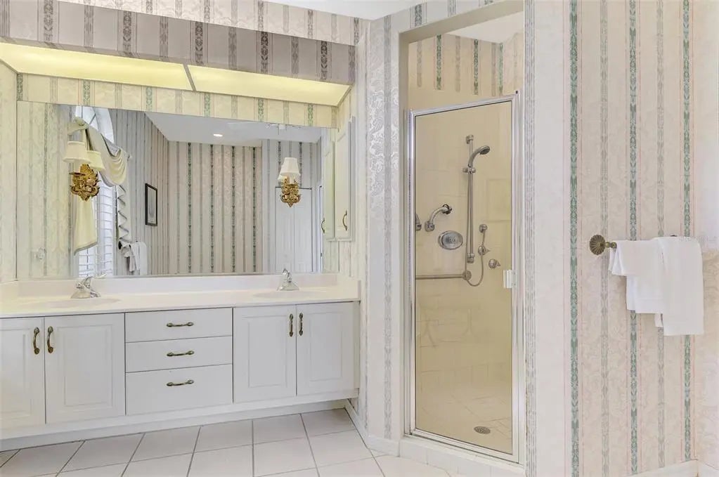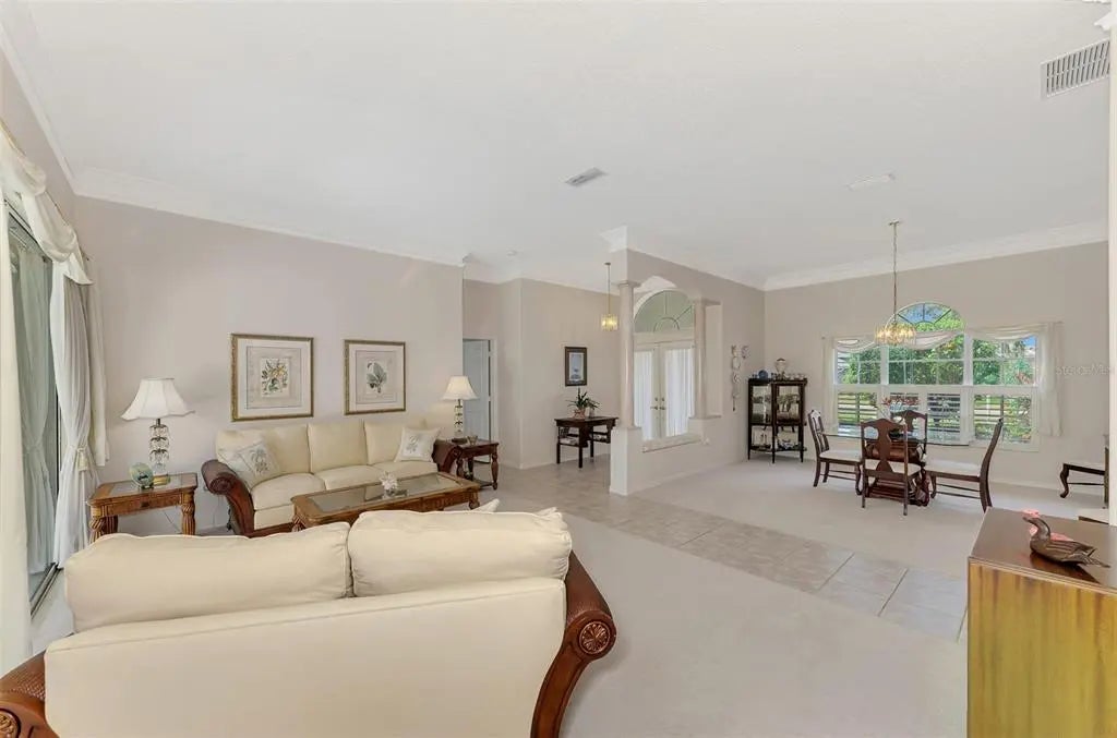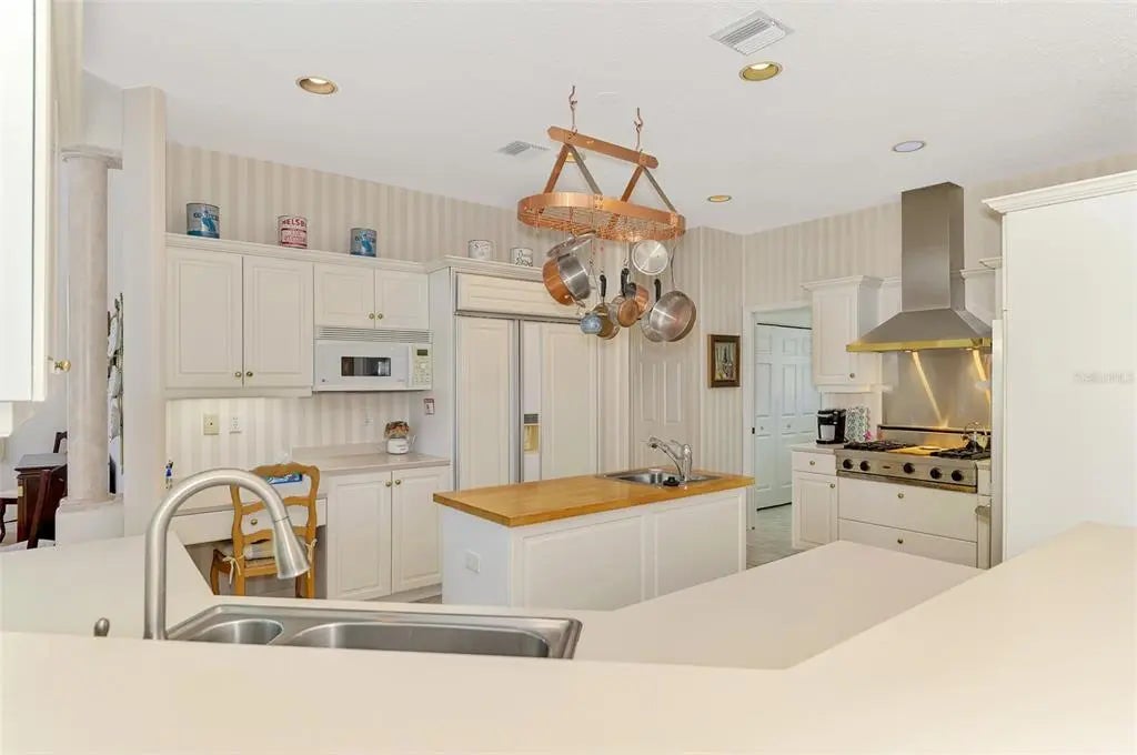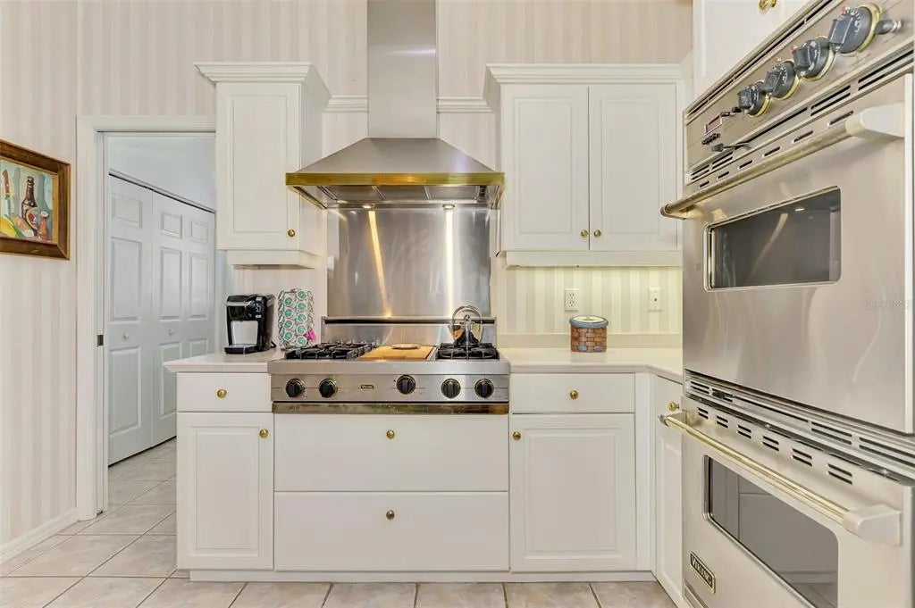 Attractive two bedroom, three bath, pool home, with golf course and water views. The home looks out onto the 7th hole of the Gleneagles course, in the highly desirable, Waterford Golf Community. The home features a gourmet kitchen, with center island, breakfast bar, Corian counters, a Viking double oven and a propane gas stove. There is a large eating area/breakfast nook looking out onto your pool. There is also a formal dining room. The large family room has French doors and could be used as a mother-in law suite with its attached full bath. The master bedroom has sliders out to the pool and two walk-in closets. The garage is an oversize two-car at 768 square feet. The home is being sold partially furnished. The roof was replaced in 2022 and the AC system was replaced in 2021. Be a part of this great community where golf membership on the 27 hole championship course is voluntary. The Waterford community amenities include a large heated pool and spa, clubhouse, fitness room and tennis courts. New pickleball courts are coming very soon! Come and see this beautiful home today!