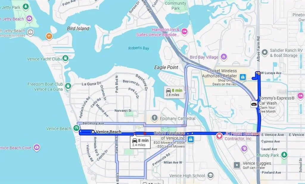Unbelievable location in the middle of everything! A short 5 minute walk to restaurants, shopping, salon, and the bus stop. A very short 2.4 miles to Venice Beach! Enjoy the carefree lifestyle in this corner unit 2 bedroom 2 bathroom single story condo. November 2024 AC. One car enclosed attached garage is a perfect place for your bicycle and car. The community pool is just outside your backdoor. Water, trash pick up, washer and dryer inside unit, and lawn maintenance is included giving you more time to enjoy living your best Florida life.