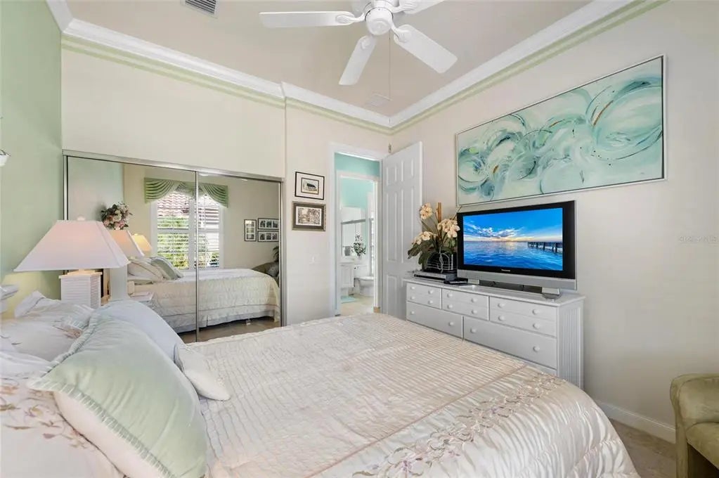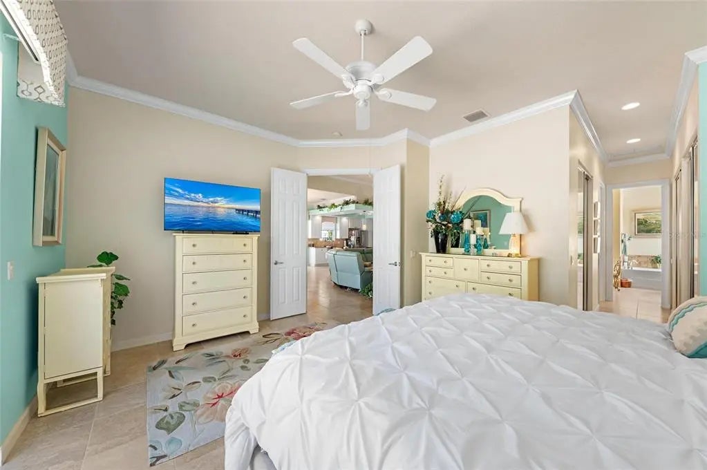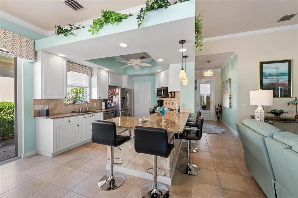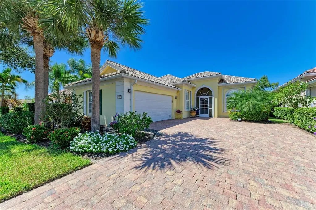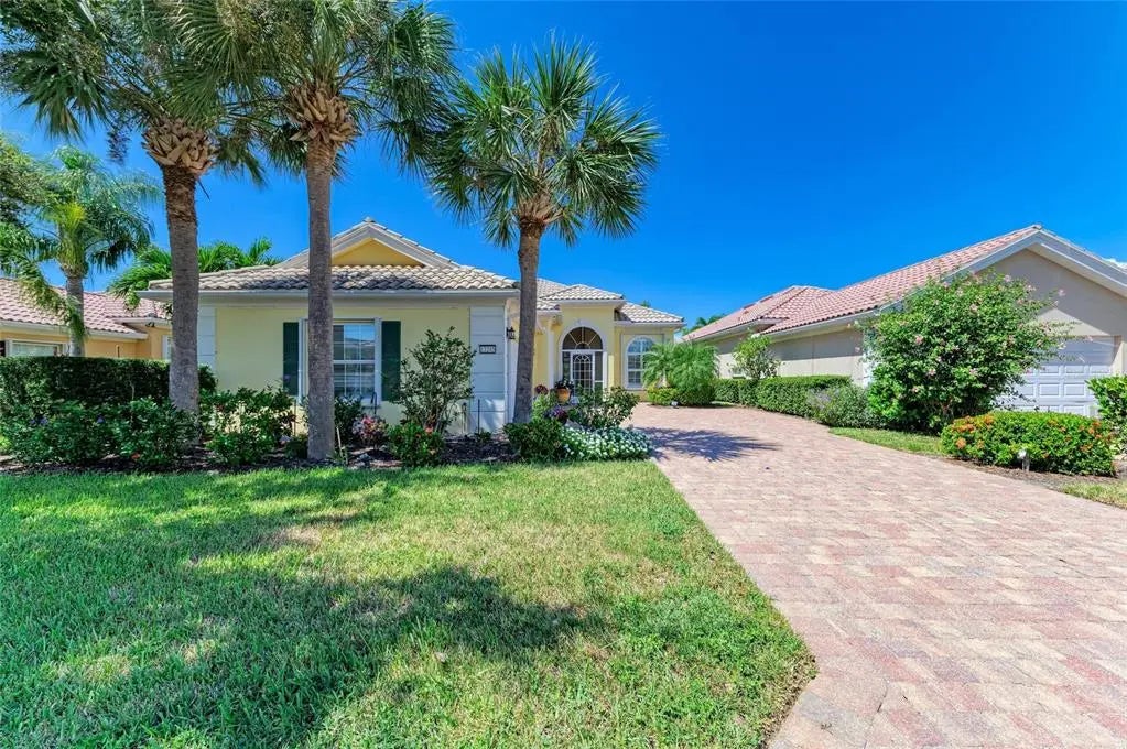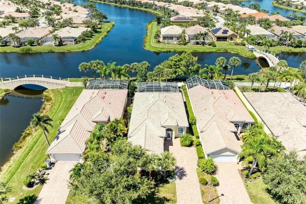 SELLERS ARE MOTIVATED- Reduced $25k! BEST VIEW IN ISLANDWALK! PRIVATE & BEAUTIFUL. Perfectly situated on the sought-after “hammerhead” lot, this home offers breathtaking LONG WATER VIEWS along with sightlines of both bridges. Homes like this don’t last long! This true split floor plan features 3 BEDROOMS PLUS DEN, 3 BATHROOMS and SOARING ceilings throughout. Bright and welcoming, the UPDATED kitchen boasts granite countertops, newer stainless-steel appliances, and a custom built-in pantry. The spacious living and dining areas provide plenty of room for entertaining family and friends. The master suite enjoys tranquil lake views with glass sliders that open to the backyard. The en suite has been thoughtfully remodeled with a large walk-in shower, multiple closets, and dual bathrooms—his and hers! On the opposite side of the home, the guest bedrooms share a full bath, giving visitors comfort and privacy. Additional highlights include crown molding throughout, WHOLE HOUSE ACCORDIAN SHUTTERS and STORM SMART SHUTTERS on the lanai for easy storm prep, and tile flooring in every room. This stunning home combines elegance, function, and one of the best views you’ll find! IslandWalk is one of VENICE'S most social communities with a FULL TIME ACTIVITIES DIRECTOR, countless events and clubs and activities, TWO community clubhouses, an EVENT center, TWO resort style pools, a LAP pool, 12 PICKLE BALL Courts, 8 Har Tru Tennis Courts, DOG PARK, Playground, Basketball Court, Community Garden- the list goes on! The entire community is surrounded by miles and miles of golf cart trails, walking and biking trails, VENETIAN bridges and water! The Atlanta Braves Stadium is a short bike ride away- enjoy year- round events and activities. The new marketplace features PUBLIX, restaurants, shopping, gas station, etc! Downtown Wellen Park features an 80-acre lake, retail shops, restaurant waterfront dining and rooftop decks, pedestrian-friendly streets, a splash pad, a playground and a public town hall gathering place that hosts live theater and music events. Coming soon to downtown Wellen Park- a hammock grove and a permanent food truck area. This immaculate, move-in-ready property makes it easy to start living your best Florida lifestyle right away! LOW HOA that includes WIFI, CABLE, GROUNDS MAINTENANCE, 24 HOUR GUARD GATE, and AMENITIES!!!! LOW CDD, NO FLOOD REQ at this time.