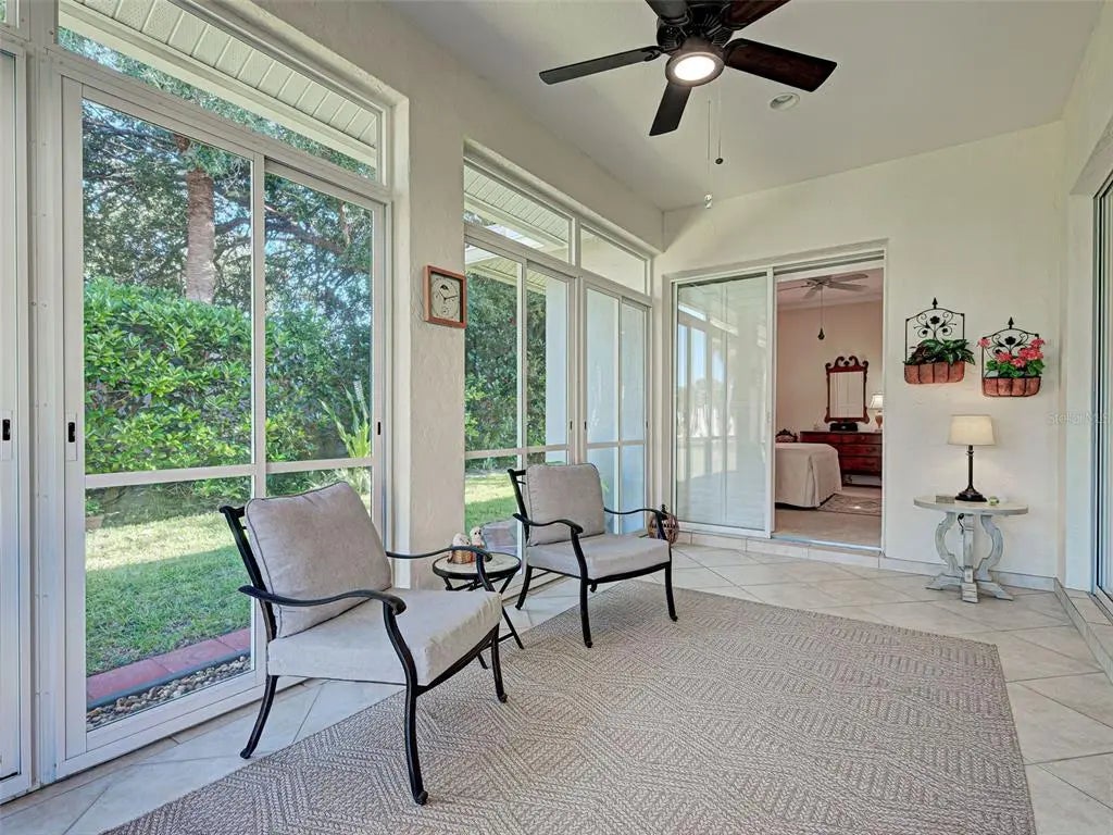 Welcome to Hidden Lakes Club, one of Venice’s most desirable gated communities, where comfort, style, and Florida living come together effortlessly. This 2-bedroom, 2-bath home PLUS a den/office is bright, open, and filled with natural light. From the moment you step through the screened front porch, you’ll feel the spacious flow, ceramic tile floors, and crown molding throughout that give this home a touch of refined elegance. Enjoy peace of mind with a TILE ROOF (2023) and AC (2020) - you can move right in and start living the good life. The kitchen offers generous counter space, plenty of cabinets, and a sunny eat-in nook, while the dining area transitions easily from intimate dinners to entertaining friends. The primary suite is your private retreat with two walk-in closets, an en suite bath, and direct access to the lanai - the perfect spot for morning coffee overlooking the serene pond view. The second bedroom features crown molding and luxury vinyl flooring, while the flexible den/office invites your imagination: a quiet workspace, cozy reading nook, creative studio, or cheerful playroom - the possibilities are endless! Relax or entertain year-round in the extended lanai with sliding windows, seamlessly blending indoor and outdoor living. The side patio with pavers is perfect for grilling, lounging, or enjoying your own outdoor garden oasis. Surrounded by beautiful landscaping, this home is just a short stroll to the clubhouse, resort-style pool, hot tub, fitness center, and tennis court. You’ll love the location - close to the new Sarasota Memorial Hospital in Venice, with easy access to I-75 for quick travel to SRQ, TPA, or RSW airports. And of course, you’re minutes from white-sand beaches, boating, fishing, golf courses, spring training baseball, boutique shopping, and Venice’s amazing restaurants. From sunset walks on the beach to dinner on the island, every day here feels like vacation. Move-in ready, meticulously maintained, and filled with upgrades - this home truly has it all. Schedule your private showing today and make Hidden Lakes Club your next chapter in Florida living!