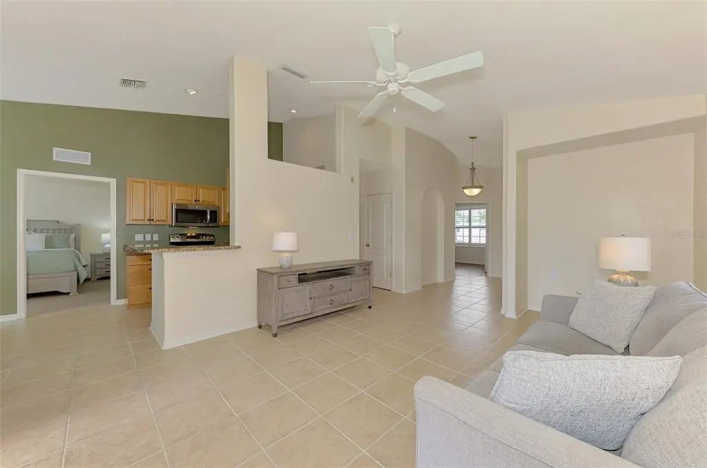 - Interior FeaturesCeiling Fan(s), Eating Space In Kitchen, High Ceilings, Kitchen/Family Room Combo, Living Room/Dining Room Combo, Solid Surface Counters, Split Bedroom, Thermostat, Vaulted Ceiling(s), Walk-In Closet(s), Window Treatments