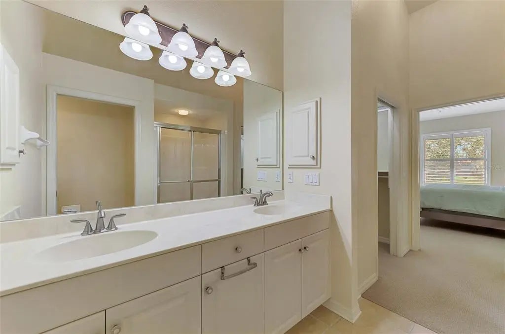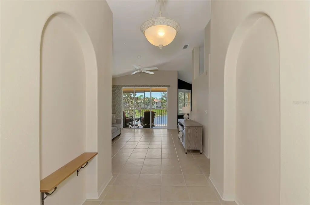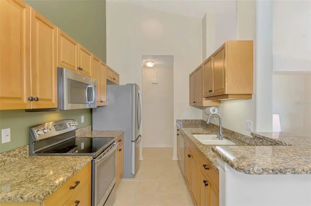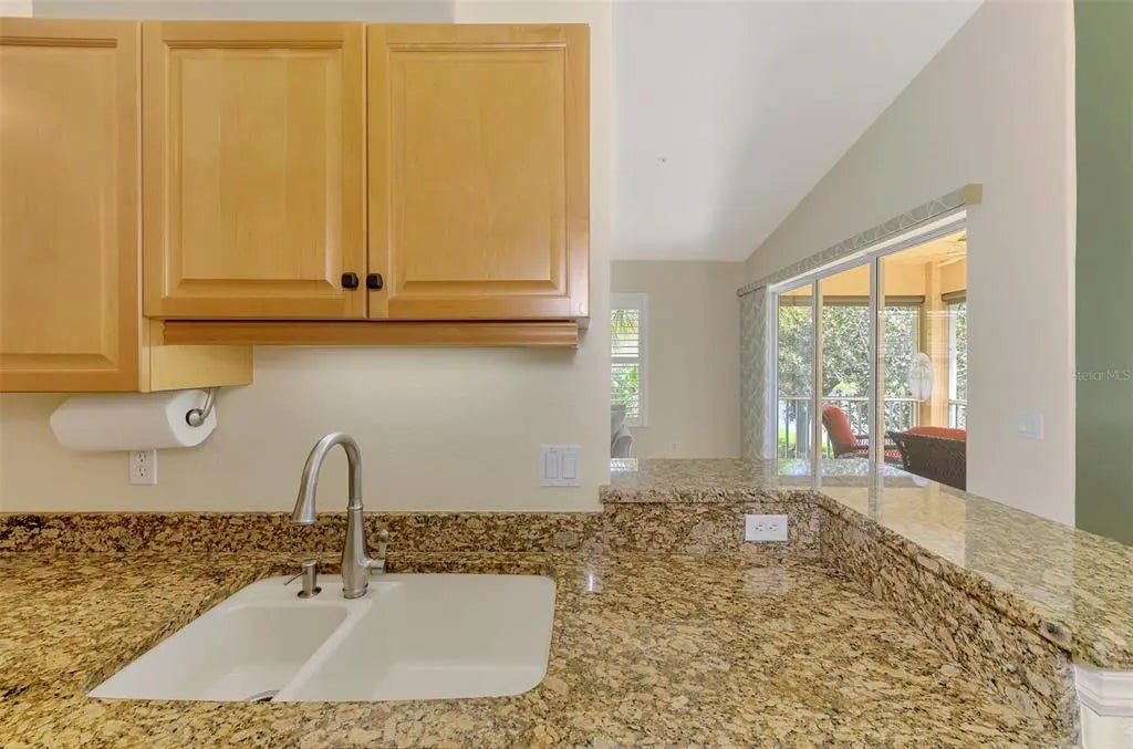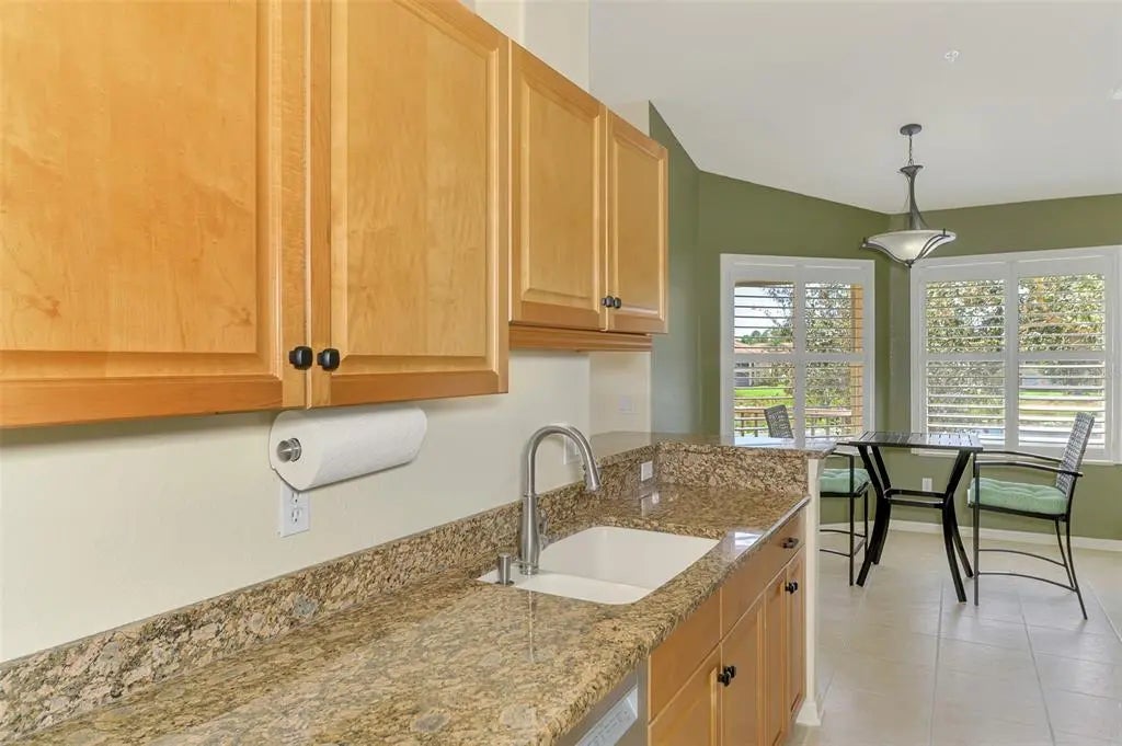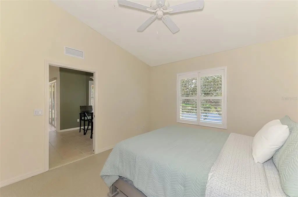 Now is your opportunity to own this Top Floor End Unit condo is Casa di Amici located in the highly sought after gated community of Venetia. This condo is flooded with tons of natural light and boasts 3 bedrooms, 2 bathrooms, a 1 car detached garage and a beautiful South facing water view. There is a large front porch with upgraded storm door that allows you to keep the front door open and enjoy the cross breeze through the unit throughout the day. Being sold partially furnished, this condo enjoys tile in all of the main living areas, plantation shutters on the windows throughout the unit, luxury vinyl plank flooring in the 2 guest bedrooms, and tons of storage. The unit features high ceilings and a kitchen with sparkling granite countertops and stainless steel appliances, including a Bosch dishwasher. The primary suite features two closets with built-in closet systems, a walk-in shower, dual sink vanity, and a separate water closet for privacy. The second bedroom is on the front of the unit and enjoys total privacy located in its own hallway, with a second full bathroom for convenience. The third bedroom is just off the foyer and can easily be used as a home office or den. There is an in-unit laundry room with utility sink and a Brand New Hot Water Heater that was just replaced in June 2025. The screened lanai has custom fit sunshades, and the view will bring you hours of peace and enjoyment as you overlook the largest pond in the community. With a prime location, you will find yourself close to area shopping, several local beaches, and just a short drive to both Historic downtown Venice and the new town center of Wellen Park! Casa di Amici at Venetia is a private gated community with clubhouse, pool, fitness center, tennis courts, and so much more! If you have been dreaming of owning a piece of Florida's paradise, this is the condo for you!