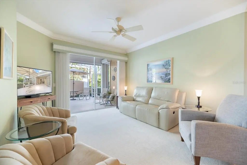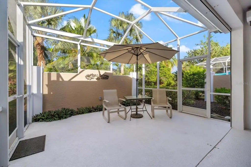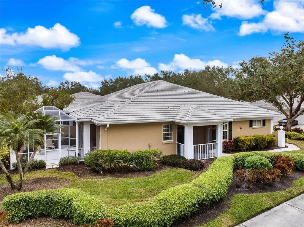 This bright and spacious 3-bedroom, 2-bathroom villa in the sought-after Terrace Villas of St. Andrews Park at the Plantation is the perfect blend of comfort and Florida charm. Nestled among live oak-lined streets and beautifully maintained landscaping, this home offers the ultimate Florida lifestyle. Step inside to find high ceilings and an abundance of natural light, creating an open and airy atmosphere. The kitchen features BRAND NEW Stainless Steel Appliances. The primary suite features a luxurious walk-in Roman shower, while the guest suite offers an en-suite bathroom, perfect for hosting visitors. The extra-deep caged lanai is ideal for entertaining or enjoying peaceful sunsets, with hurricane shutters on the west-facing windows for added security. Additional conveniences include a screened front porch, in-unit laundry room, and a two-car garage. For added value, the tile roof was replaced in 2022. St. Andrews Park is more than a neighborhood—it’s a lifestyle. Residents enjoy access to three community pools and a clubhouse. Situated within the Plantation Golf and Country Club, membership is optional but available, offering tennis, pickleball, golf, and a range of social activities. This villa provides easy living in a picturesque setting, making it the perfect to enjoy all that Florida’s Gulf Coast has to offer. All information is deemed reliable, buyer and buyer's agent to verify all measurements, information, and dimensions.