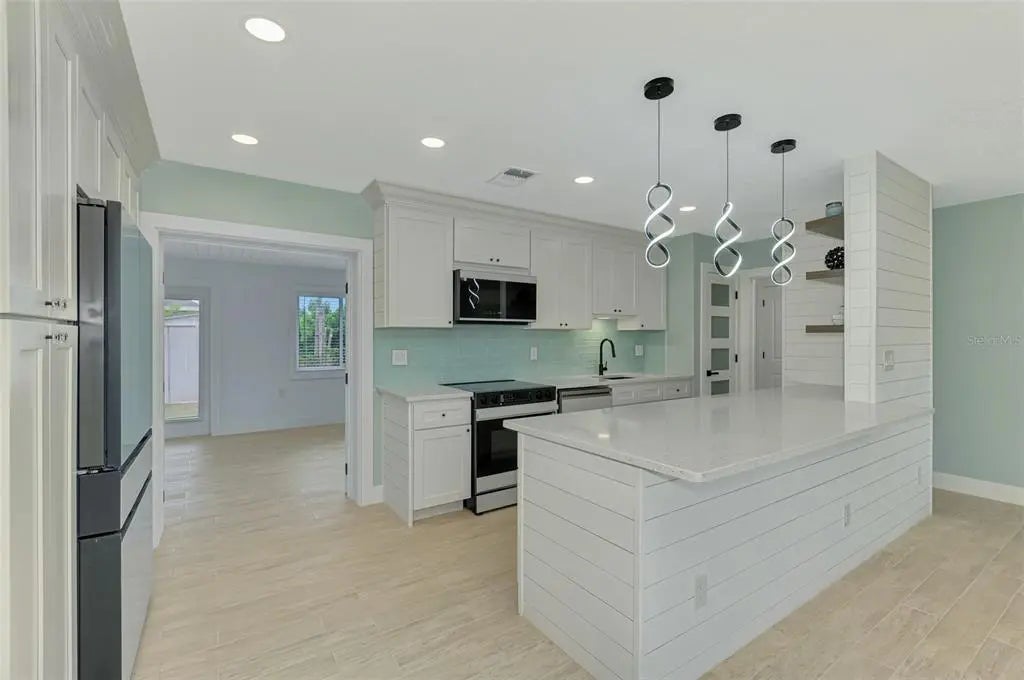 THIS IS THE HOME YOU HAVE BEEN LOOKING FOR!!! METICULOUSLY UPDATED 3 BED/2 BATH 1839 SQ. FT ON 3 LOTS. Welcome to your dream home where modern elegance meets comfortable living in this stunning residence. Step inside to discover a thoughtfully designed split floor plan. The open kitchen serves as the heart of the home, showcasing white shaker cabinetry that provides both timeless appeal and abundant storage. Samsung glass-front smart appliances elevate your culinary experience, making meal preparation both efficient and enjoyable. The sparkling white quartz countertops create a bright, welcoming workspace that flows seamlessly into the living areas, while plank tile flooring throughout ensures both durability and sophisticated style. All three bedrooms feature the same elegant breezeway color pallet with multi-function remote fans featuring raw hardwood blades. Pamper yourself in the beautifully designed bathrooms featuring back-lit, anti-fog mirrors and built-in Bluetooth speakers that bring a spa-like atmosphere to your daily routine. There is ample storage space throughout the house. The property also includes two separate living spaces, allowing for formal entertainment and casual family time. The family room off the kitchen has a double-door glass entrance. There is a striking fireplace television feature wall with a remote-controlled electric color changing fireplace featuring a natural wood mantle that creates an impressive focal point for gathering and relaxation. The generous outdoor space on this oversized lot presents endless possibilities for creating your personal oasis. Whether you envision lush landscaping, a swimming pool, outdoor kitchen, or simply expansive lawn areas for family activities, the spacious grounds provide the canvas for your outdoor dreams. This exceptional home represents more than just a place to live – it offers a lifestyle upgrade with its thoughtful design, premium finishes, and prime location. The combination of luxury features, practical amenities, and generous outdoor space creates an opportunity that discerning buyers will find difficult to resist. YOU MUST SEE THIS PROPERTY TO TRULY APPRECIATE ALL IT HAS TO OFFER. SCHEDULE A SHOWING TODAY!