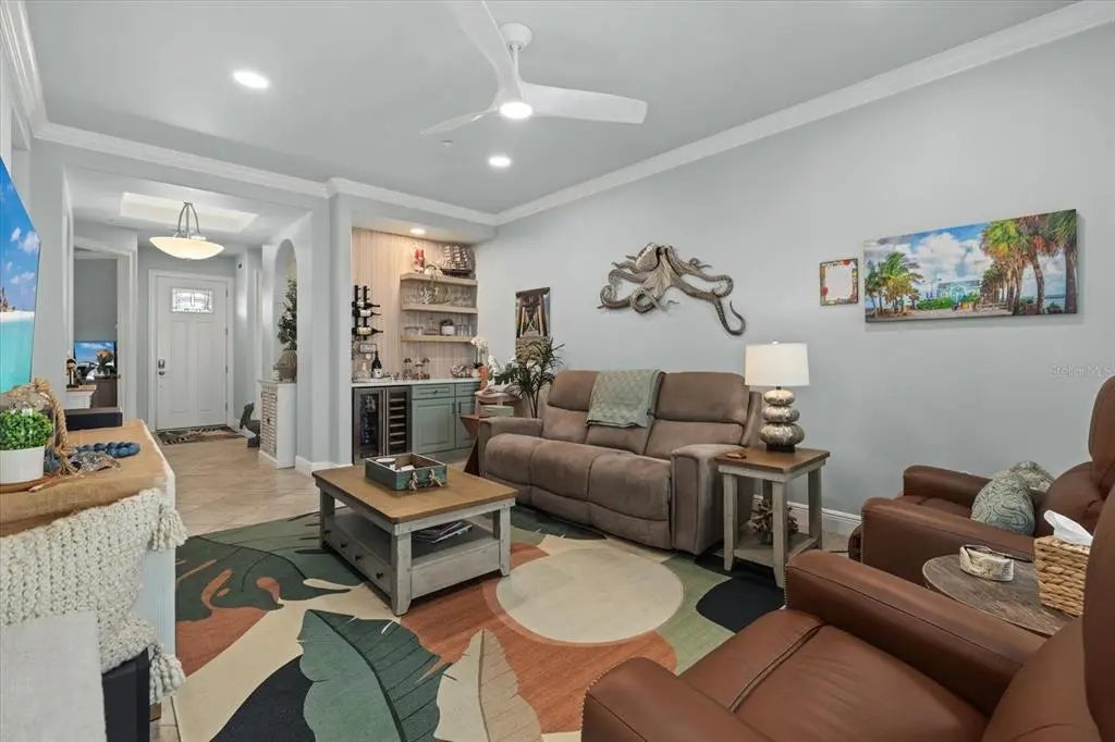 Welcome to Che Vista on Venice Island - a 2018 premier mid-rise luxury condominium just steps from the sparkling Gulf and Venice Beach. Experience the finest in Florida coastal living in this spacious and beautifully appointed residence within one of Venice Island’s most sought-after communities. From your private balcony, take in breathtaking beach views and magnificent Gulf sunsets - the perfect backdrop for morning coffee or evening relaxation. Inside, you’ll be greeted by an abundance of natural light that fills the open-concept great room, kitchen, and dining area, creating a warm and inviting atmosphere ideal for both entertaining and everyday living. This spacious and flexible floor plan features two bedrooms, two baths, and an additional room currently set up as a den or extra living space - easily adaptable as a home office or guest room. At the front of the unit, a practical mudroom offers convenient storage for sandy shoes, beach toys, and biking gear - perfect after a day of island adventures. Elegant design elements and thoughtful upgrades are found throughout, including crown molding, deep baseboards, tile laid on the diagonal, stunning countertops, and two custom-designed primary walk-in closets. A stylish dry bar with a wine cooler adds a perfect touch for entertaining. The residence also includes an assigned parking space and a rare private garage - a highly sought-after feature not available in many nearby condos, offering secure storage and added peace of mind. Che Vista, one of the newer developments on Venice Island, is ideally located just across from public beach access, perfect for leisurely seaside walks. The community offers a large, resort-style private pool - the ideal spot for soaking up the sun or socializing with neighbors. All of this is just a short bike ride from historic downtown Venice, where you'll discover world-class dining, boutique shopping, vibrant arts and culture, public tennis and pickleball courts, and premier golf facilities. This rarely available gem combines luxury, location, and lifestyle - the ideal Venice Island experience. Don’t let this opportunity slip away.