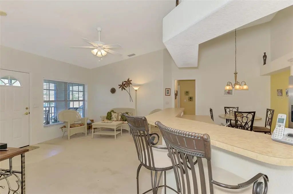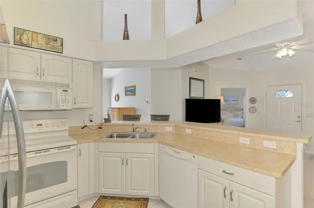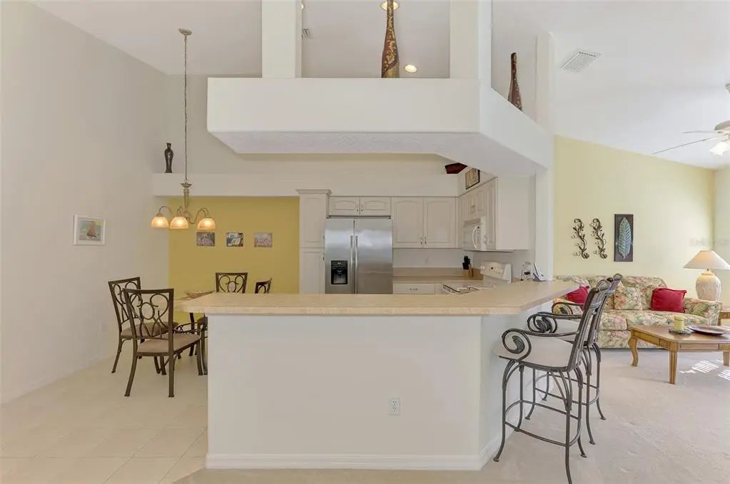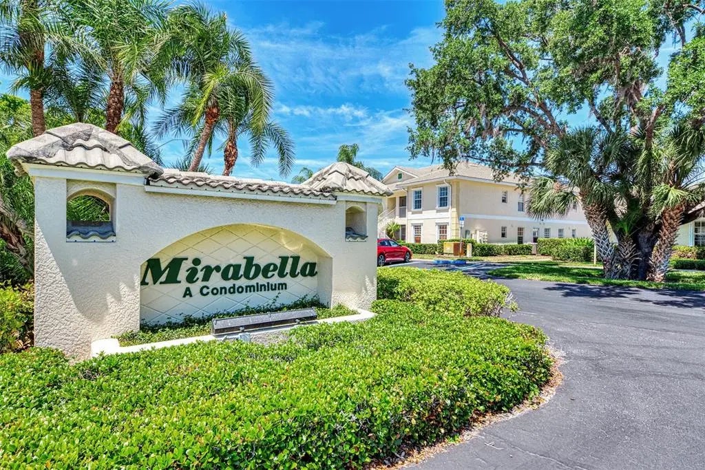 Appealing two bedroom, two bath, second floor condo, in the small, private complex of Mirabella. Your condo features a great open floor plan with split bedrooms. The kitchen has a breakfast bar and eating area. Both the master bedroom and second bedroom have walk-in closets. The hallway to the second bedroom has a pocket door that gives your guests their own private suite. The laundry closet is in that hallway too. There is a living room and also a family room or flex room upon entry. A one-car garage is included in the sale. The AC system was replaced in 2020 and the water heater was replaced in 2018. The condo is being sold turn-key furnished, has been well taken care of and move-in ready! The community offers a heated pool and clubhouse. This is a great central location just off of Venice Ave. and within four miles to beautiful downtown Venice and the Gulf of America. Come see this great buy today!