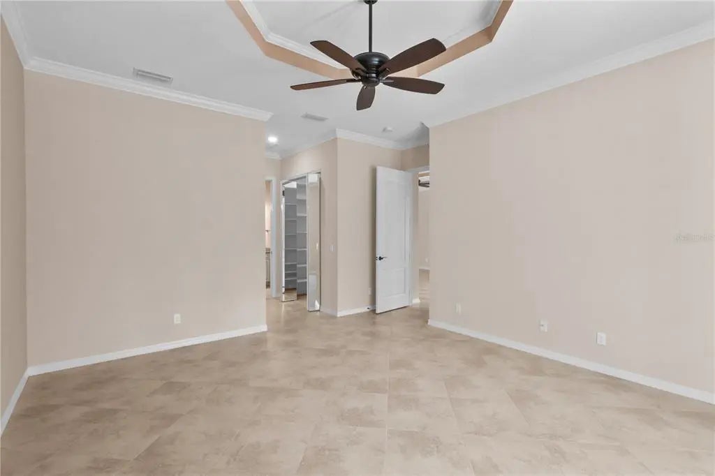 - Interior FeaturesBuilt-in Features, Ceiling Fan(s), Crown Molding, Eating Space In Kitchen, High Ceilings, Living Room/Dining Room Combo, Primary Bedroom Main Floor, Solid Surface Counters, Split Bedroom, Stone Counters, Thermostat, Walk-In Closet(s), Window Treatments