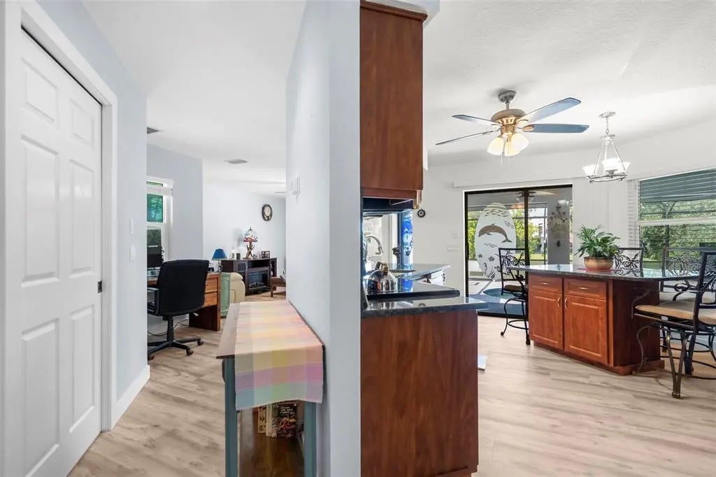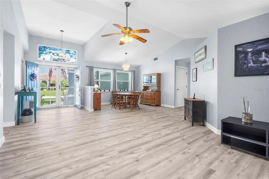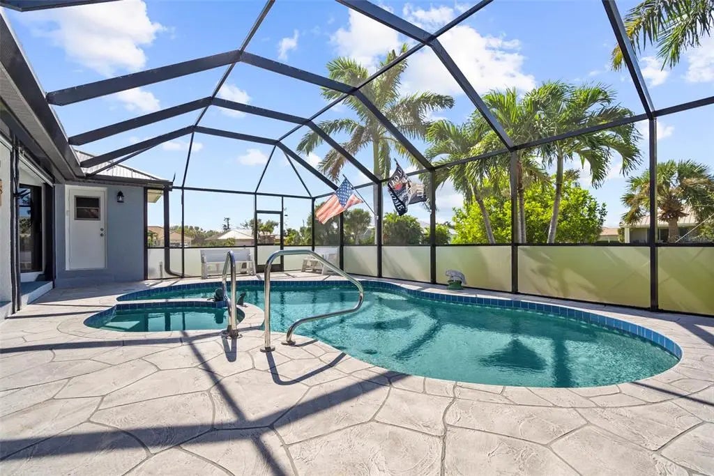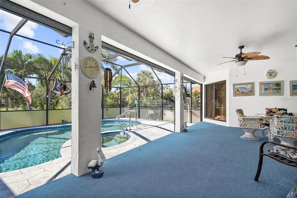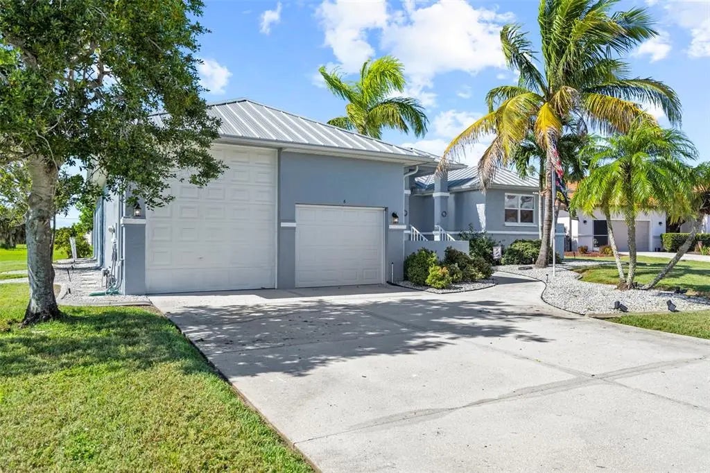 Stunning Renovated Pool Home with Oversized Garage & Modern Upgrades This beautifully updated 2-bedroom, 3-bathroom pool home perfectly blends modern design with everyday comfort—beginning with its rare oversized garage. Measuring 31 feet deep, 11 feet tall, and 9’11” wide, this impressive space is ideal for large vehicles, RVs, boats, or all your recreational toys. Step inside and you’re immediately welcomed by an open-concept layout, abundant natural light, and thoughtful finishes throughout. The chef’s kitchen is a highlight, featuring stainless steel appliances, sleek granite countertops, and contemporary cabinetry—making it the perfect hub for both entertaining and daily living. The spacious primary suite offers a generous walk-in closet and a spa-like bathroom with dual vanity sinks and a rainfall shower. The guest bedroom is equally inviting, with convenient access to the third full bath located near the living area and pool—ensuring comfort and privacy for visitors. Your private outdoor retreat awaits with a sparkling pool, resurfaced deck, and plenty of room to relax or entertain. Host friends on your personal shuffleboard court, fire up the grill for summer barbecues, or simply lounge in the Florida sunshine. This home has been extensively renovated with over $150,000 in upgrades, offering both style and peace of mind. Notable improvements include: All-new flooring throughout A new metal roof Upgraded electrical panel New HVAC system Hurricane shutters And much more! With its oversized garage, modern finishes, and incredible outdoor living space, this home is the perfect example of Florida living at its best.