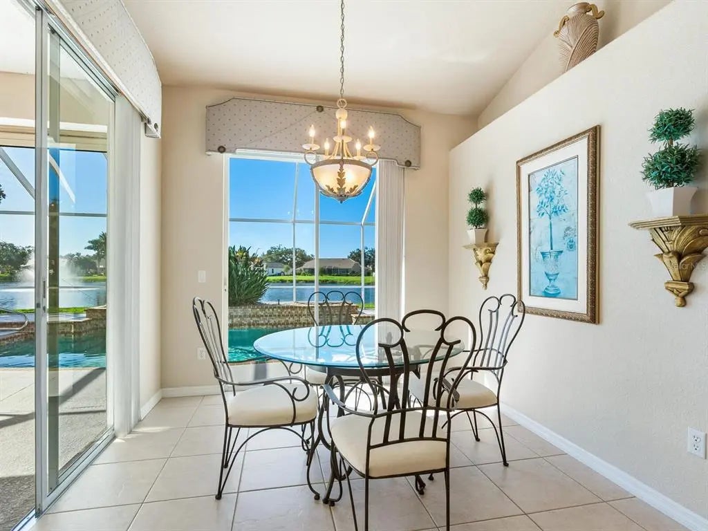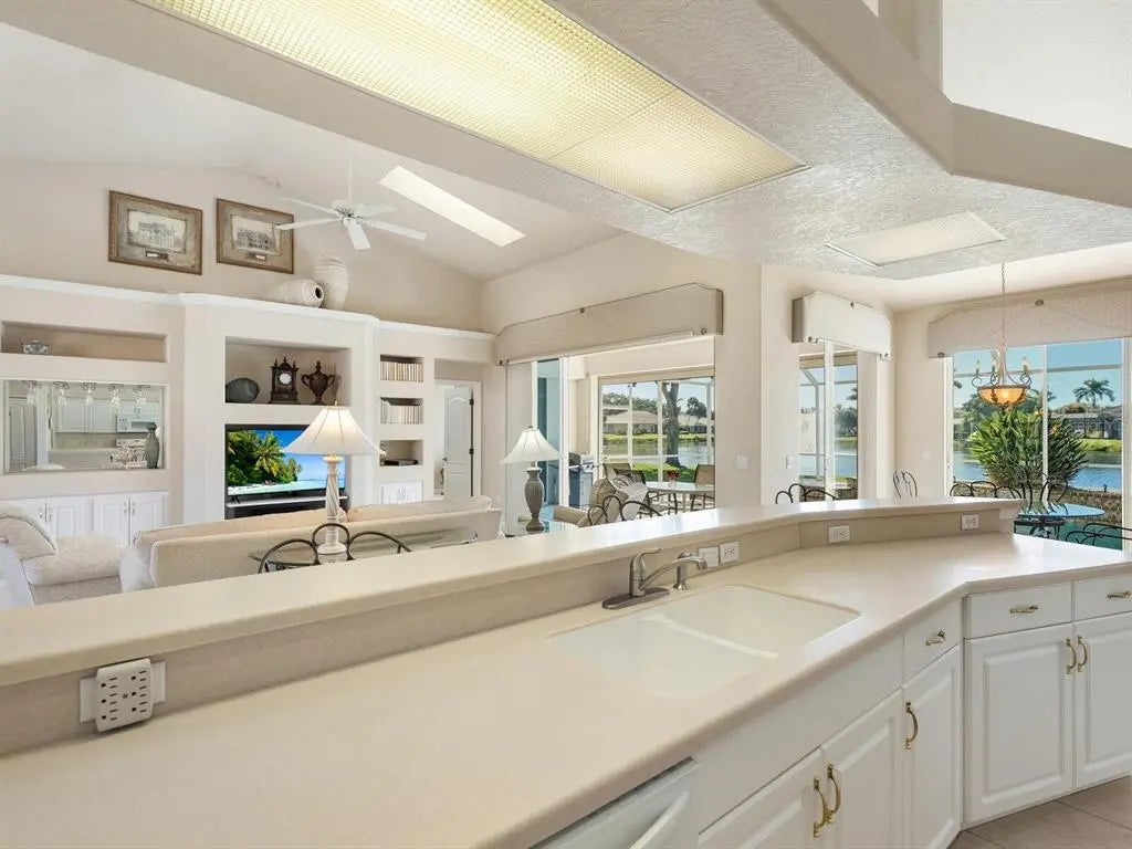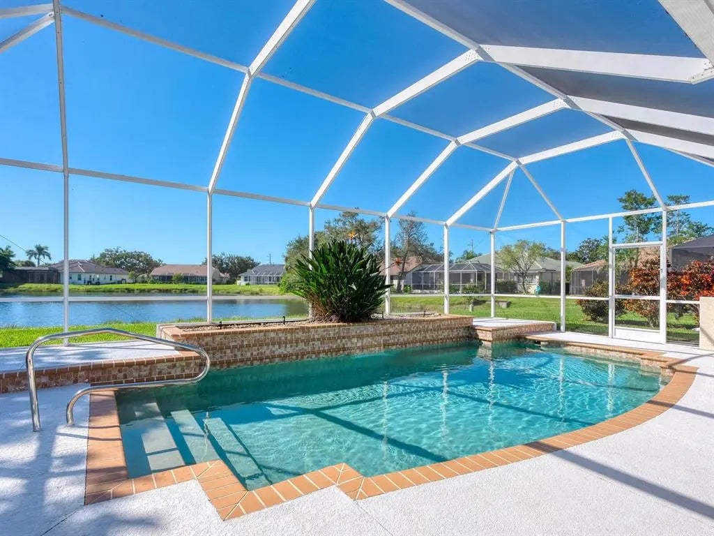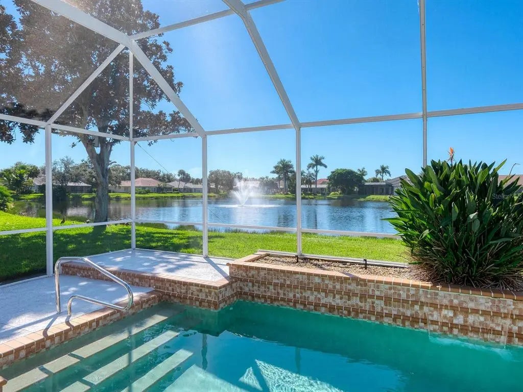 Under contract-accepting backup offers. Enjoy sparkling lake views from this spacious 3-bedroom home in the desirable Hidden Lakes Club! This open split-floor plan features vaulted ceilings, skylights, large windows, and pocket sliders that fill the home with natural light. Relax on the expansive lanai or in the heated pool overlooking the lake and fountain. For peace of mind, storm protection includes clear panels, accordion shutters, and a remote-controlled roll-down screen for the lanai. The primary suite offers a luxurious retreat with a sitting alcove and lake views, soaking tub and large shower, private water closet, and dual vanities with a make-up area. Guests will love the two bedrooms and bathroom, which opens directly to the pool area. Additional highlights include abundant closet space, an oversized laundry room with sink, and a large 2-car garage with separate storage room. Hidden Lakes Club residents enjoy a clubhouse with kitchen, library, billiards, and work out area. Outdoor amenities include community pool and spa, and courts for tennis, pickleball, basketball, shuffleboard, and bocce. Conveniently located near shopping, restaurants, I-75, and just minutes to charming and historic downtown Venice and its pristine Gulf beaches.