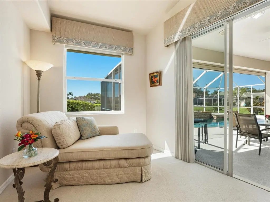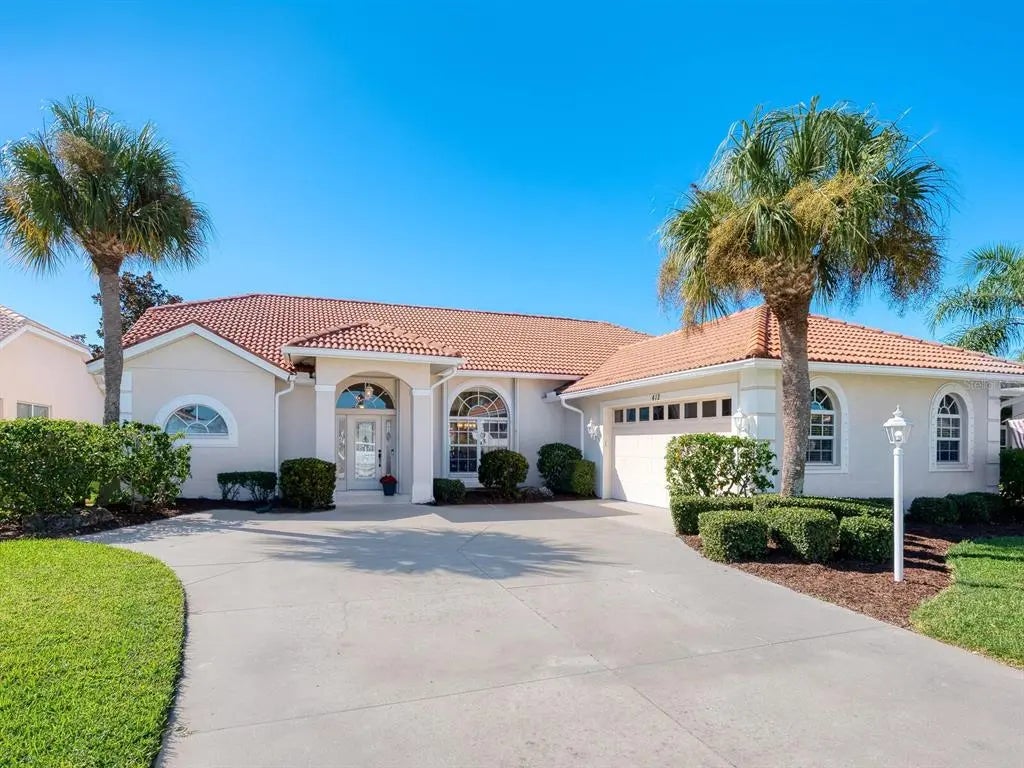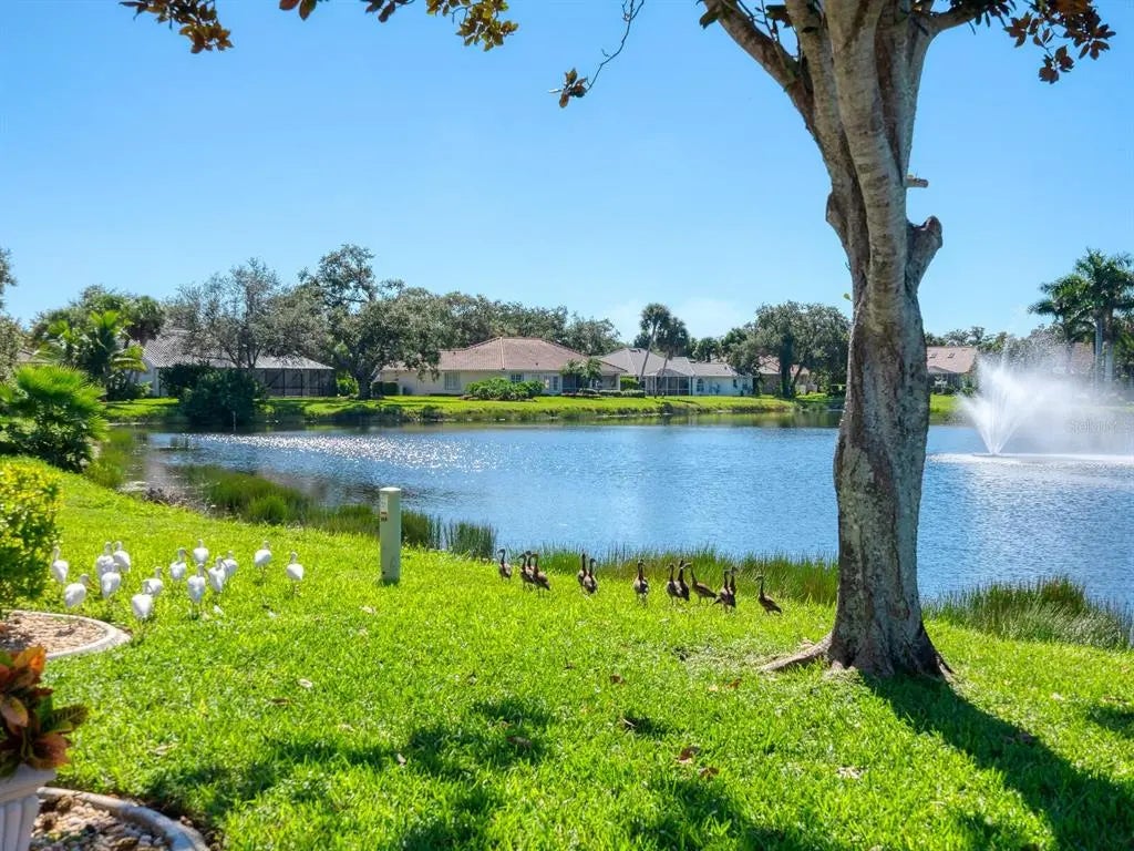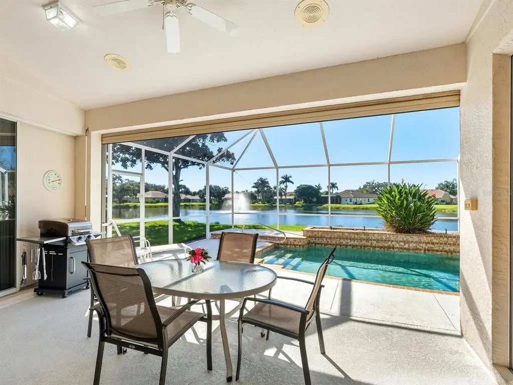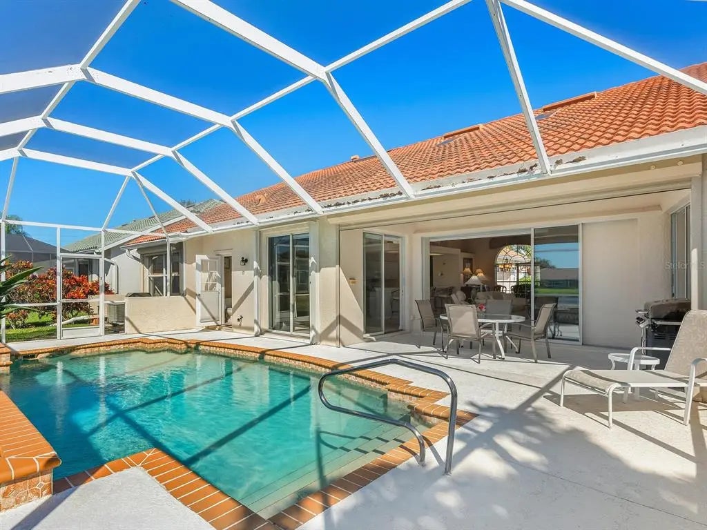 Under contract-accepting backup offers. Enjoy sparkling lake views from this spacious 3-bedroom home in the desirable Hidden Lakes Club! This open split-floor plan features vaulted ceilings, skylights, large windows, and pocket sliders that fill the home with natural light. Relax on the expansive lanai or in the heated pool overlooking the lake and fountain. For peace of mind, storm protection includes clear panels, accordion shutters, and a remote-controlled roll-down screen for the lanai. The primary suite offers a luxurious retreat with a sitting alcove and lake views, soaking tub and large shower, private water closet, and dual vanities with a make-up area. Guests will love the two bedrooms and bathroom, which opens directly to the pool area. Additional highlights include abundant closet space, an oversized laundry room with sink, and a large 2-car garage with separate storage room. Hidden Lakes Club residents enjoy a clubhouse with kitchen, library, billiards, and work out area. Outdoor amenities include community pool and spa, and courts for tennis, pickleball, basketball, shuffleboard, and bocce. Conveniently located near shopping, restaurants, I-75, and just minutes to charming and historic downtown Venice and its pristine Gulf beaches.