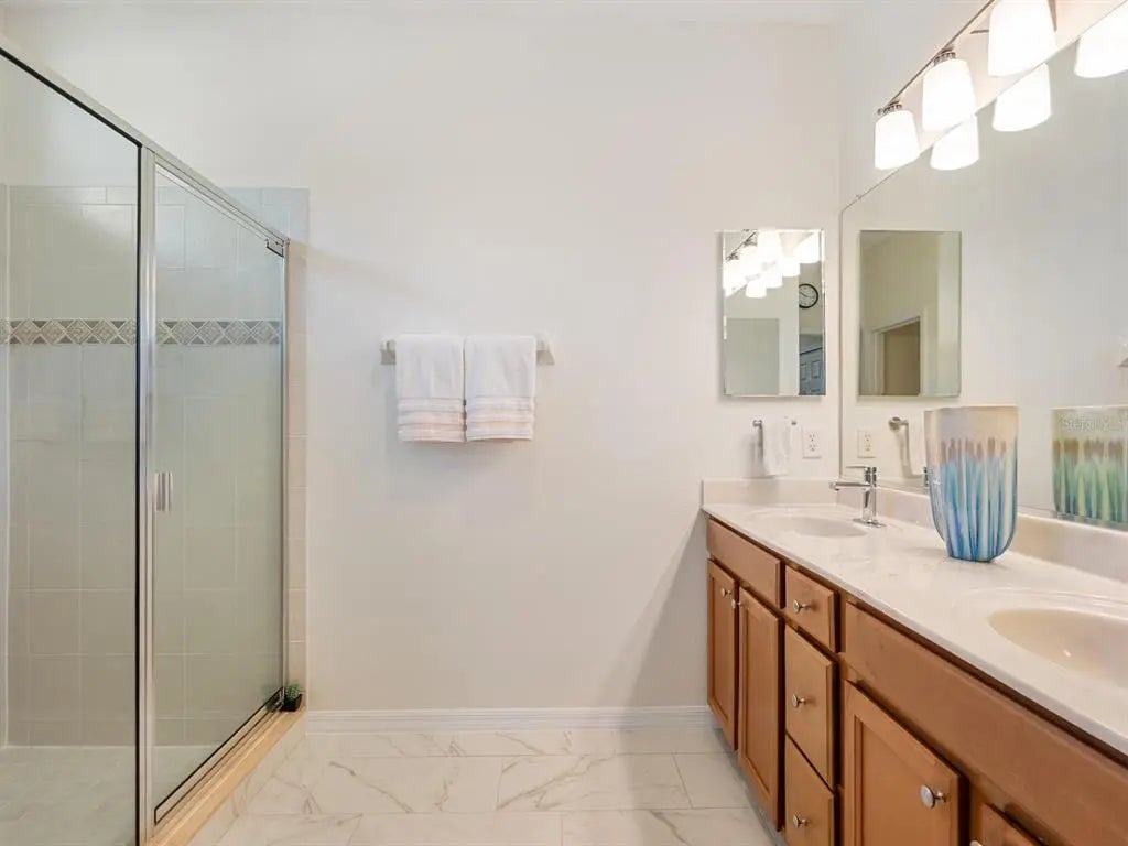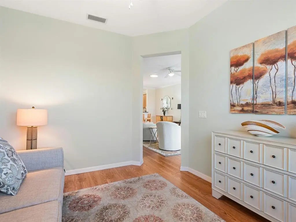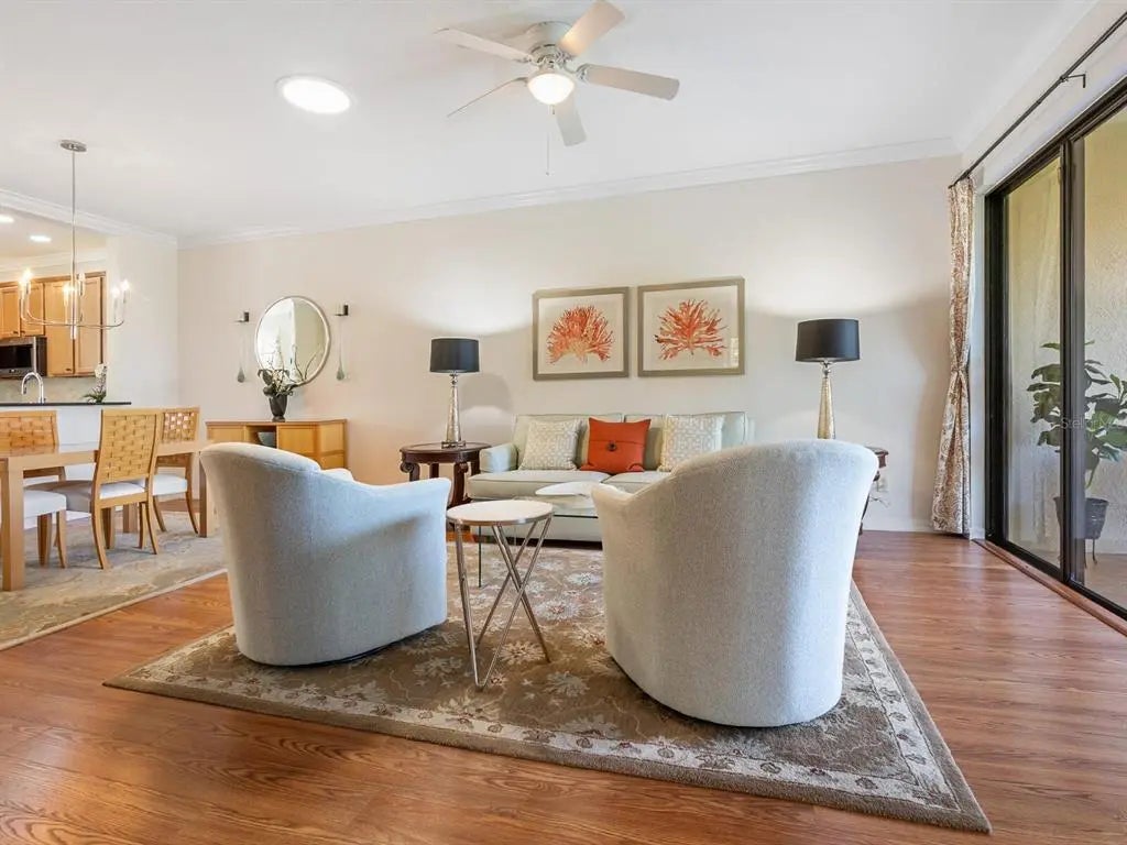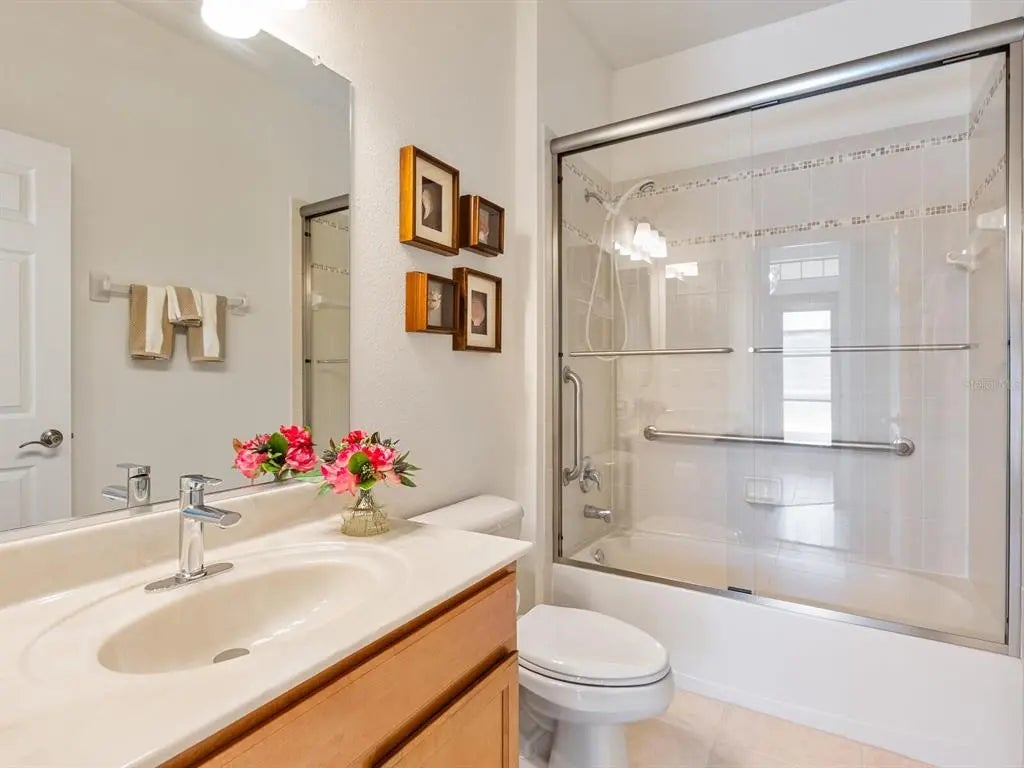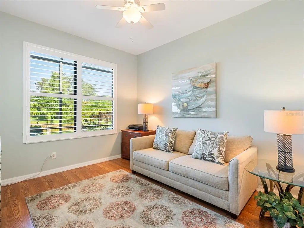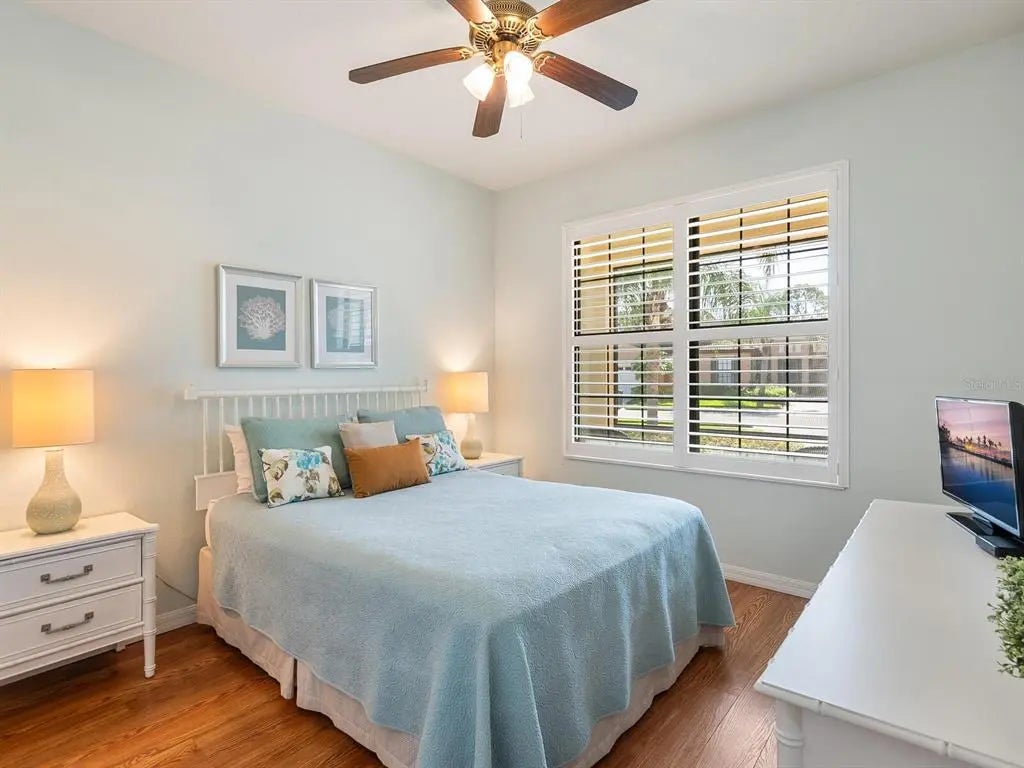 Under contract-accepting backup offers. Experience resort-style living at Venetian Falls in this immaculate Botticelli paired-villa! Located in an active, gated, 55+ community, this home offers peace of mind with impact windows and front door, reinforced garage door, and storm shield for the lanai—all providing extra protection and energy efficiency. Enjoy relaxing or dining outdoors on your lanai overlooking the serene, long lake views. Inside, the kitchen offers a bright, open layout with stainless steel appliances, granite countertops, 42” wood cabinets, skylight, dinette, and pantry. Further features include a screened front entry and sitting area, updated primary suite, crown molding, plantation shutters, skylight in the living room, and wood laminate floors in the main living areas, den, and guest bedroom. The oversized 2-car garage has a durable polyaspartic garage floor finish adding a clean look and ease of maintenance. Meticulously maintained and boasting excellent curb appeal, this villa is truly move-in ready. Venetian Falls offers resort-style amenities including a clubhouse with full-time activity director, heated lap pool, heated resistance pool, fitness center, billiards, bocce, on-site management, and so much more! The HOA fee covers lawn care and front shrub trimming, irrigation, roof cleaning, exterior paint, internet, and basic cable. Don't miss out on this beautiful, worry-free home in a gated community just minutes from Venice beaches, dining, and shopping!