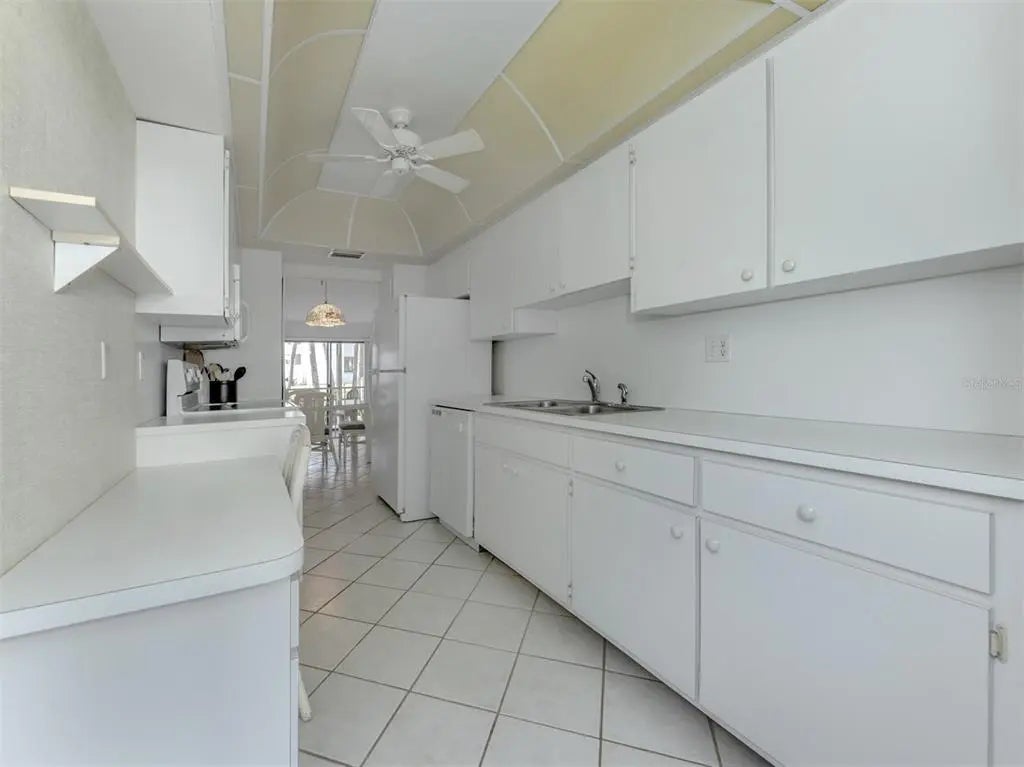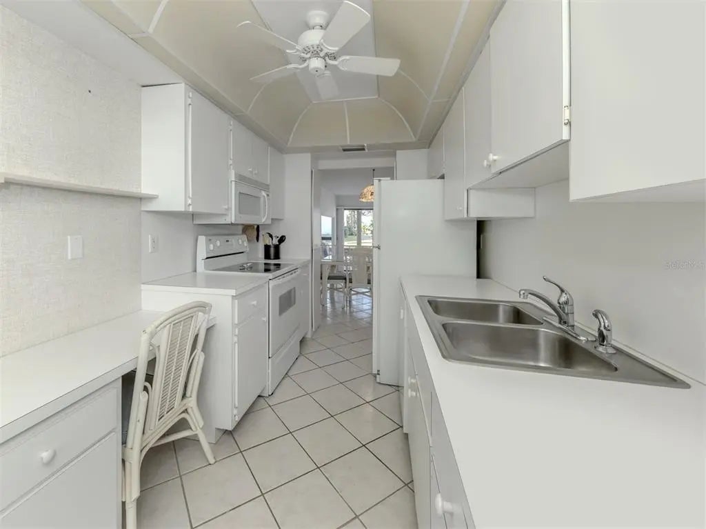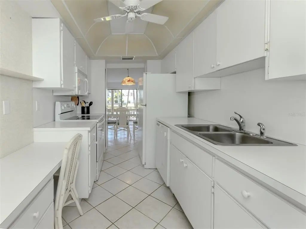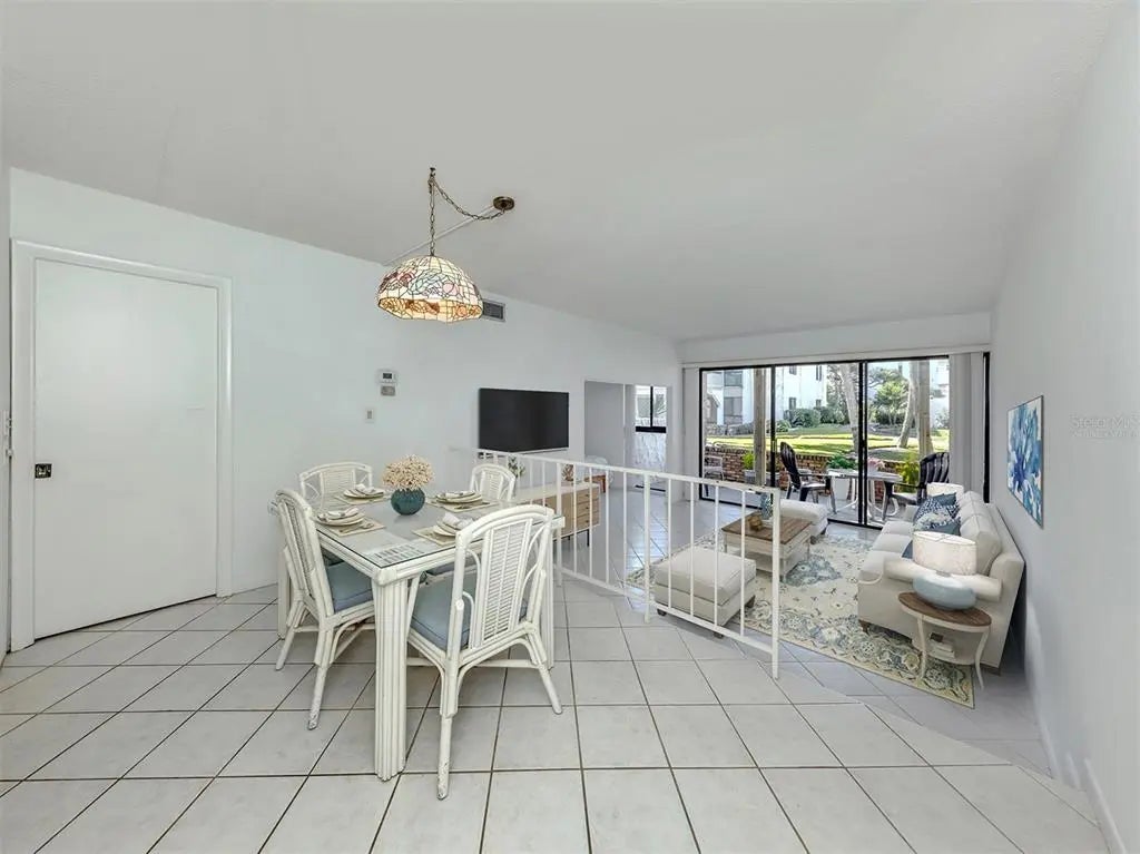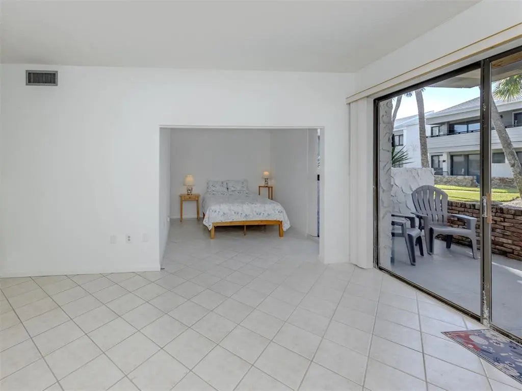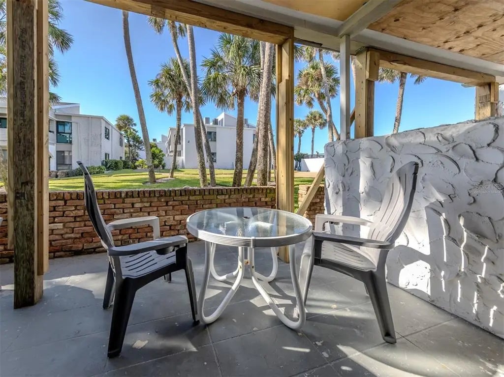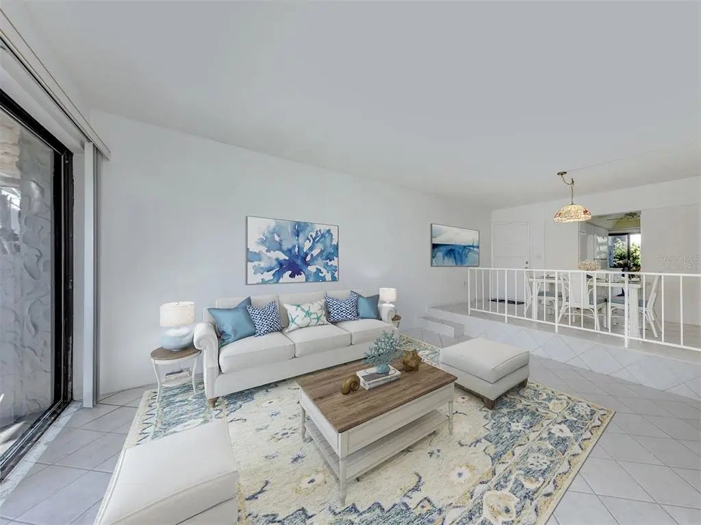 One or more photo(s) has been virtually staged. Experience coastal living at Bahia Vista Gulf, a sought-after condominium community on Venice Island along the Gulf. This two-bedroom, two-bath residence offers 934 square feet of thoughtfully designed living space with an open floor plan ideal for relaxed entertaining. The great room features sliding doors that open to a private front patio, while the dining area off the kitchen is just a short distance above, adding architectural interest and functionality. The kitchen extends to a patio for outdoor dining, and the primary suite includes a spacious walk-in closet. Ceramic tile floors flow throughout and both baths have been updated. Two lanais provide seamless access to the resort-style community pool and beach. Multiple decks offer areas to lounge, dine or gather with neighbors amid lush garden surroundings. Bahia Vista Gulf is just a short distance to the South Jetty and the Crow's Nest restaurant. Residents enjoy proximity to historic downtown Venice, known for its boutique shopping, dining, theatre and entertainment venues. Bahia Vista Gulf is a great rental complex as well, with a one-month minimum, 12 times a year.