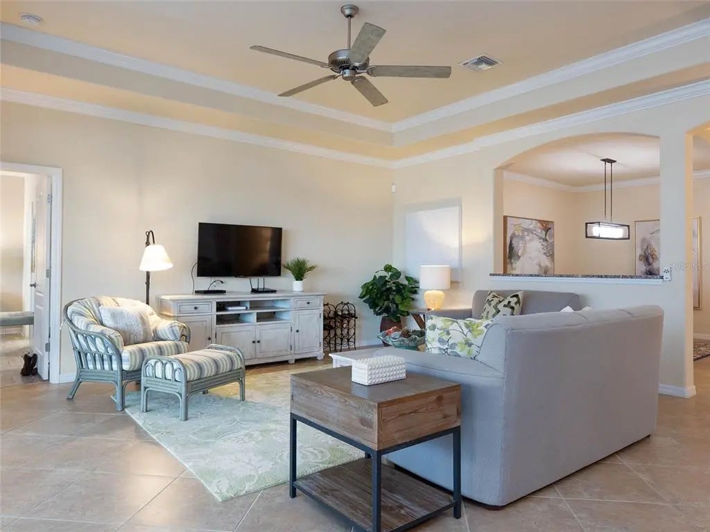 - Interior FeaturesCathedral Ceiling(s), Ceiling Fan(s), Kitchen/Family Room Combo
