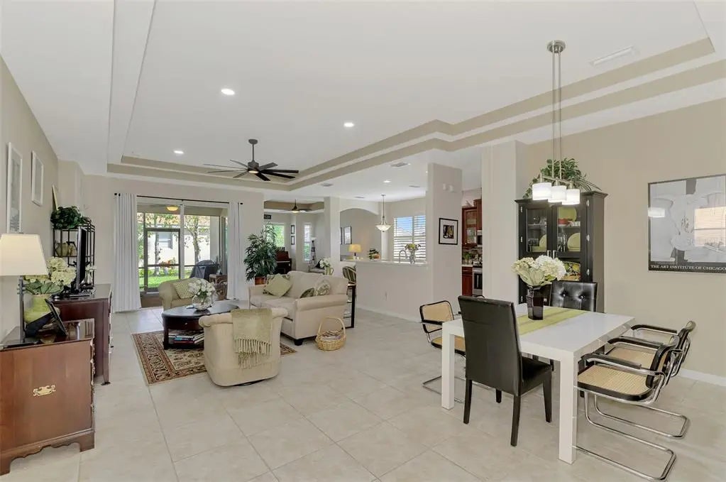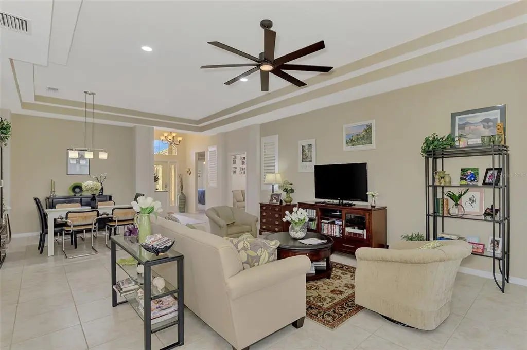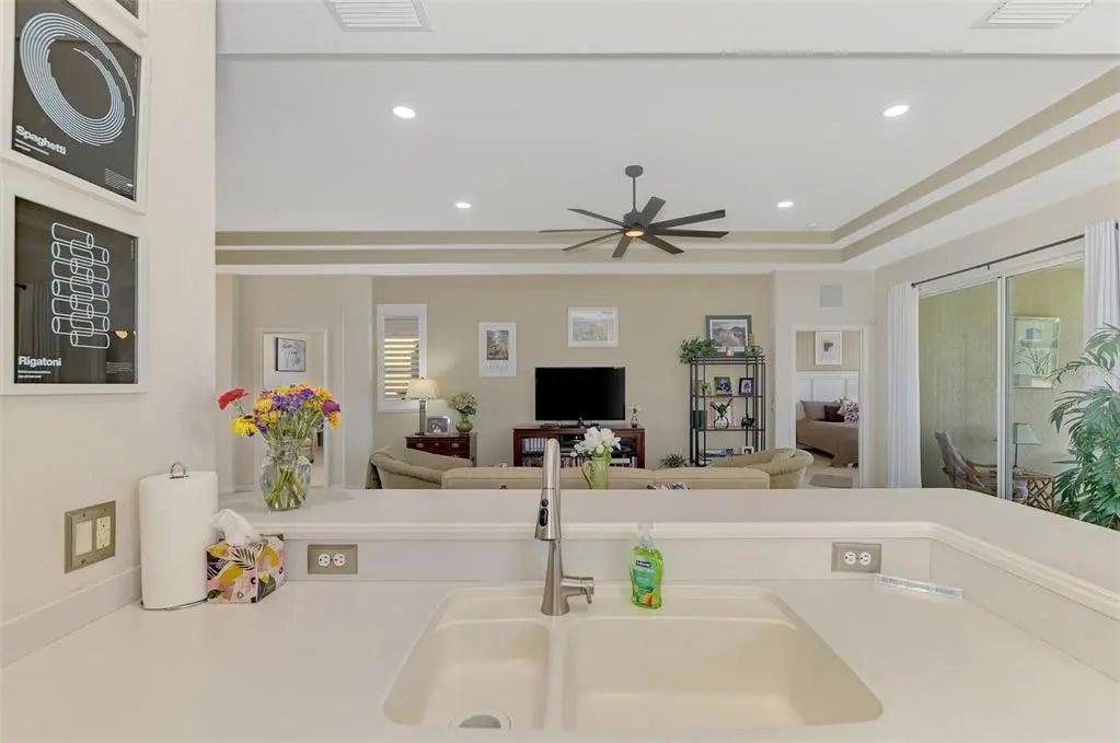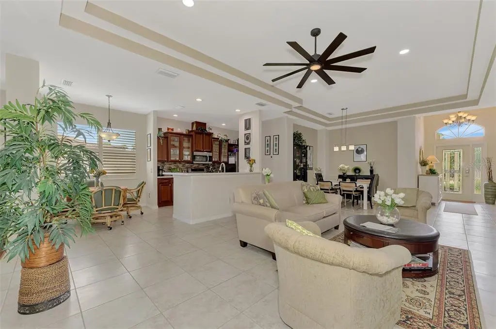 - Interior FeaturesCathedral Ceiling(s), Ceiling Fan(s), Coffered Ceiling(s), High Ceilings, Open Floorplan, Primary Bedroom Main Floor, Solid Surface Counters, Split Bedroom, Thermostat, Tray Ceiling(s), Walk-In Closet(s), Window Treatments