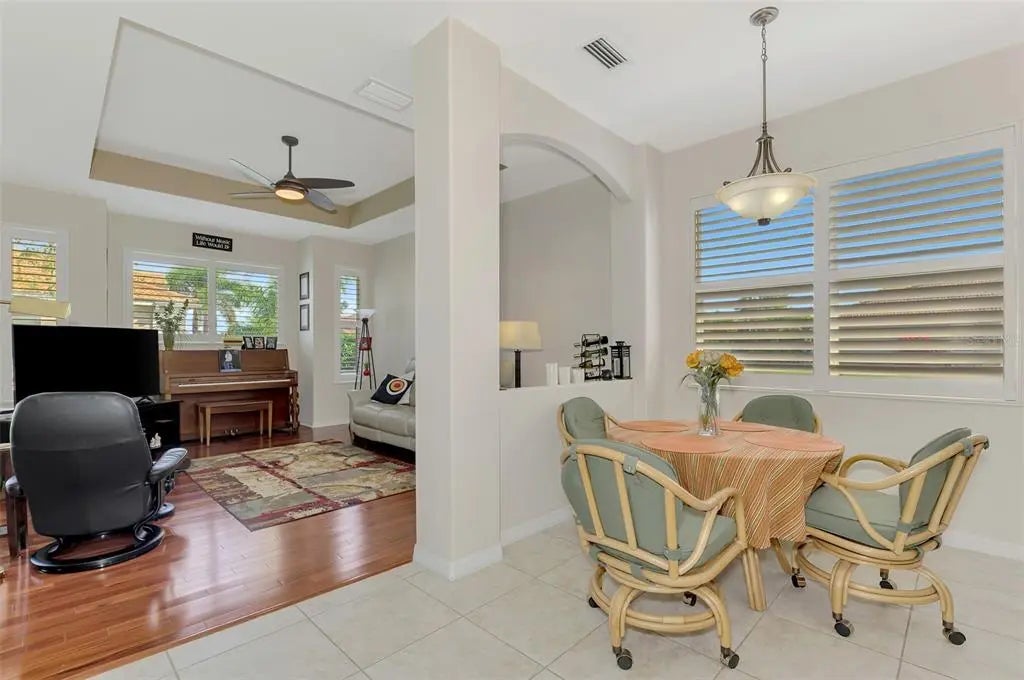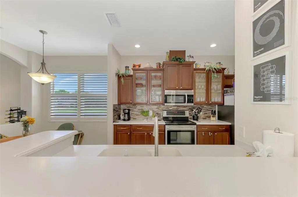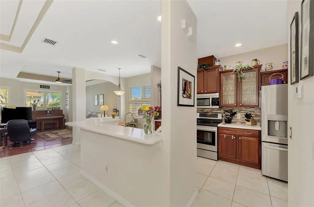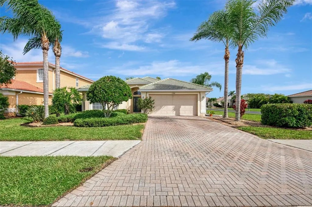 Under contract-accepting backup offers. Check out this CORNER HOMESITE and this lovely 3 bedroom, 2 bathroom with den and open floor plan with large great room! Kitchen has been updated with Glass Inserts along with Glass Title back splash, Newer Stainless Steel Appliances and Hood Vent that circulates outside. Seller loves the open kitchen great room and eat-in-kook area. This home has been perfect for all there entertaining needs and wishes the new home owner the same! Primary Bedroom is spacious and offers his and hers closets. Primary Bathroom, offers his and hers sinks with walk in shower and soaking tub and is very light and bright...love the windows in the primary bathroom too! Guest Bedrooms are light and spacious, seller shows 3rd bedroom as den. Inside Laundry room, offers newer LG Washer and Dryer with utility sink. Newer A/C and Hot Water Tank! 4-point Home Inspection has been completed! Good to go for Home Insurance! All countertops are solid surface "Corian", ceramic tile in main living areas, carpets in bedrooms. Engineered Hardwood Flooring in Family Room/Den, Plantation Shutters through out the home and Hurricane Shutters for all exterior windows and doors. Home has Lovely back yard, plenty of room for your enjoyment! StoneyBrook At Venice, offers community heated pool, fitness center, clubhouse that is very active, community is very social, tennis courts, sand volleyball courts, walking trails, bike trails, playground areas! This community is minutes from Venice Beach, Wellen Park, Atlanta Braves Training camp- Cool-It-Park and so so much more, minutes from shopping, dinning, medical, US-41 and I-75! Make this home yours today! Did I mention that this home offers Circuit breaker to accommodate generator.