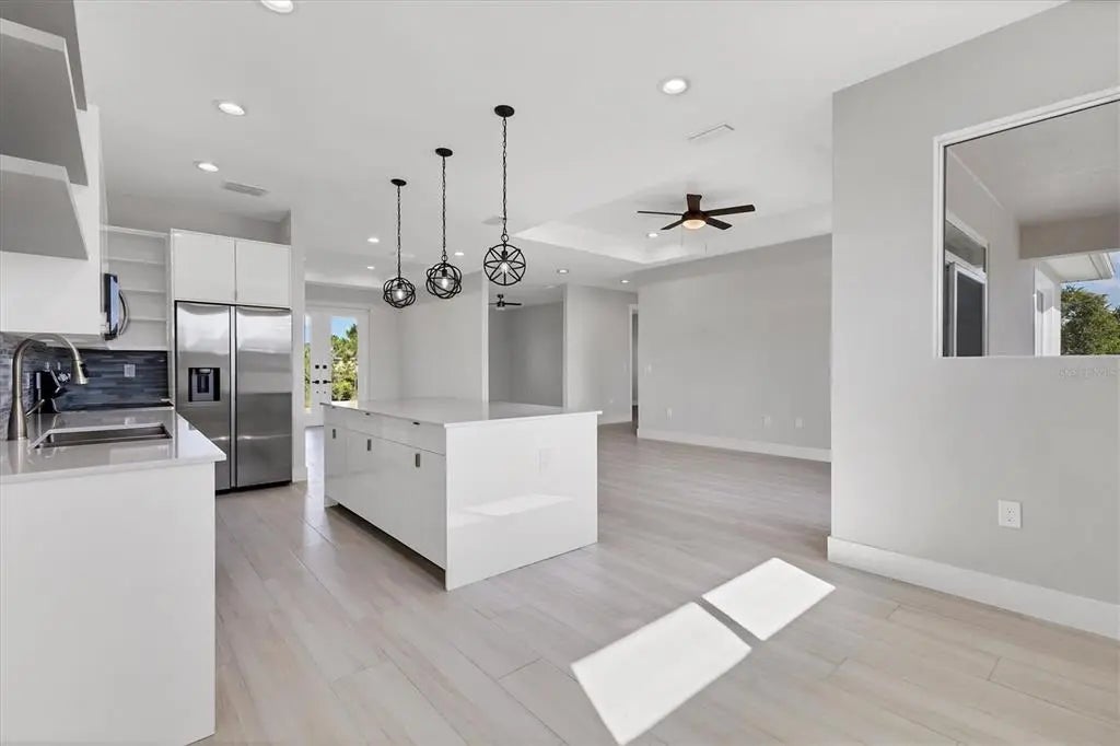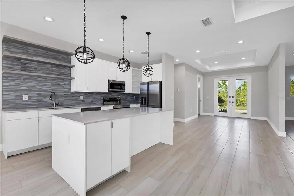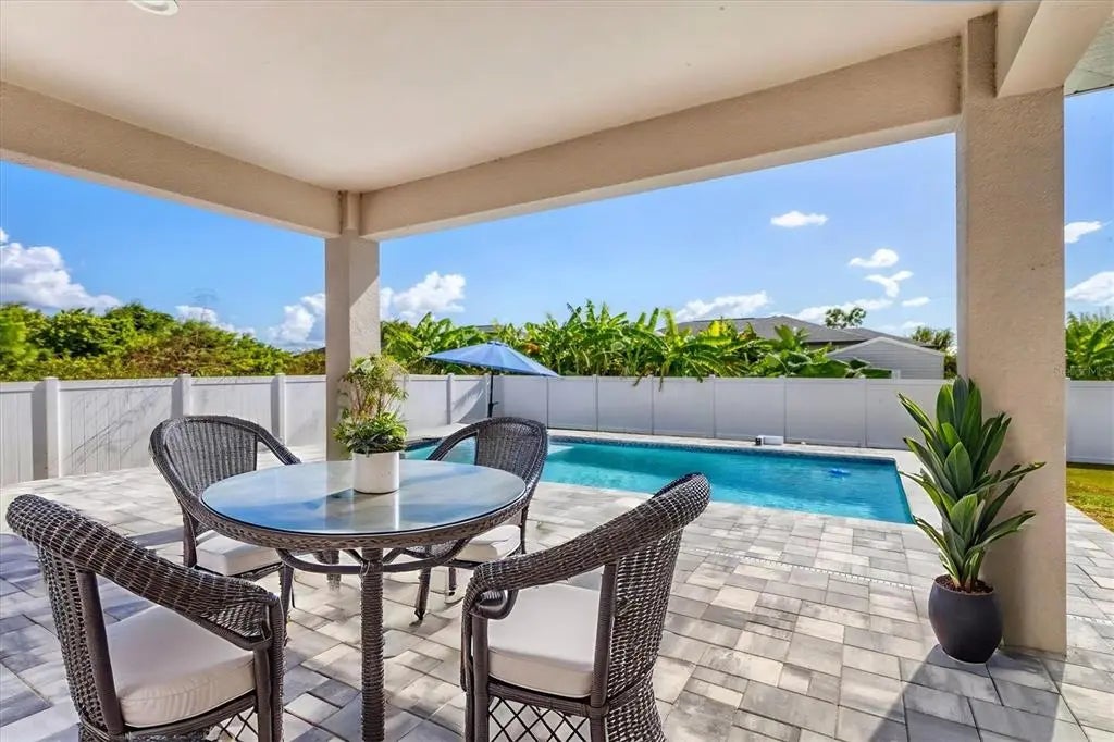 NEW CONSTRUCTION 2024!!! With a POOL AND FENCED in HIGHLY DESIRABLE SOUTH GULF COVE WATERFRONT Community!! Step inside this stunning 3-bedroom, 2.5 bath modern oasis where open-concept living meets effortless entertaining. Imagine relaxing in the sun-drenched patio with a 12'x24' pool with a privacy fence, or whipping up meals in the gourmet kitchen featuring quartz countertops and stainless steel appliances. The den/office space is ideal as an office, library, game room, or guest area. Plenty of storage, spacious 2-car garage and security from storms with impact windows and doors. South Gulf Cove is a boaters PARADISE with a PUBLIC BOAT RAMP, with over 50 miles of canals leading out to Myakka River, Charlotte Harbor and the Gulf of America. South Gulf Cove residents can join the ASSOCIATION WITH CLUBHOUSE voluntarily (POGC Membership is necessary to use the park property and playground). Discover excellent shopping, restaurants, world-class golf courses, Englewood, Manasota Key, Punta Gorda, Fishermen’s Village, and the Gulf beaches of Boca Grande, parks, playgrounds, and sidewalks for biking and walking. Golf courses, fine dining, nearby airports, and pristine beaches make this HOME your PARADISE! Schedule a viewing today!