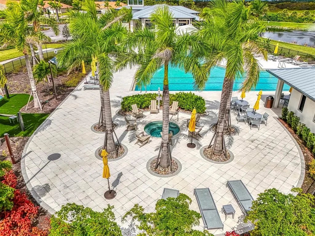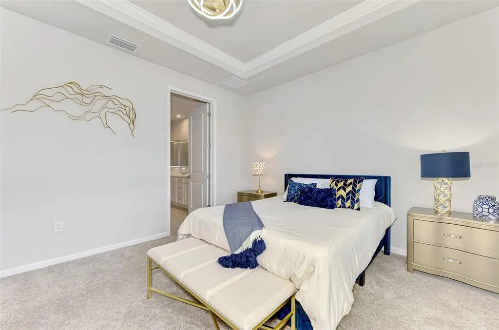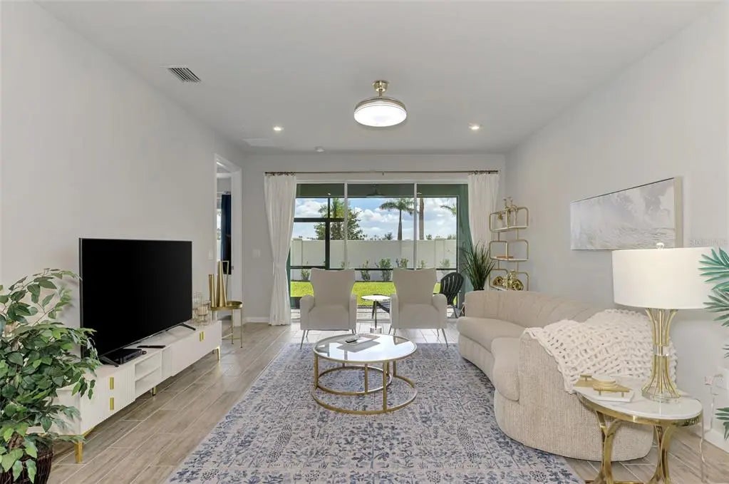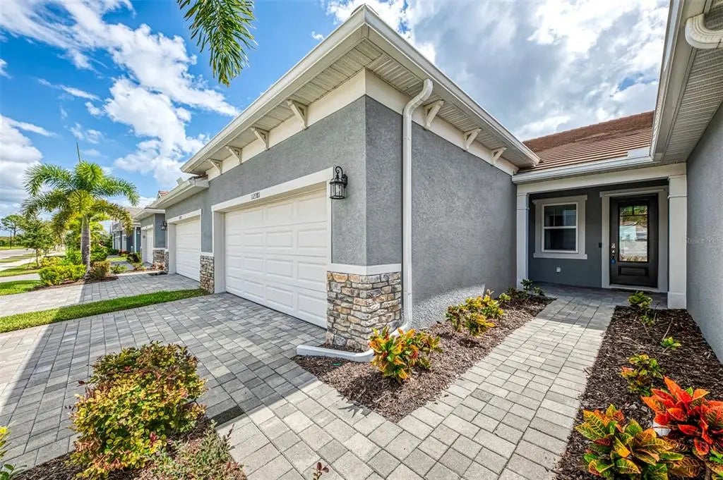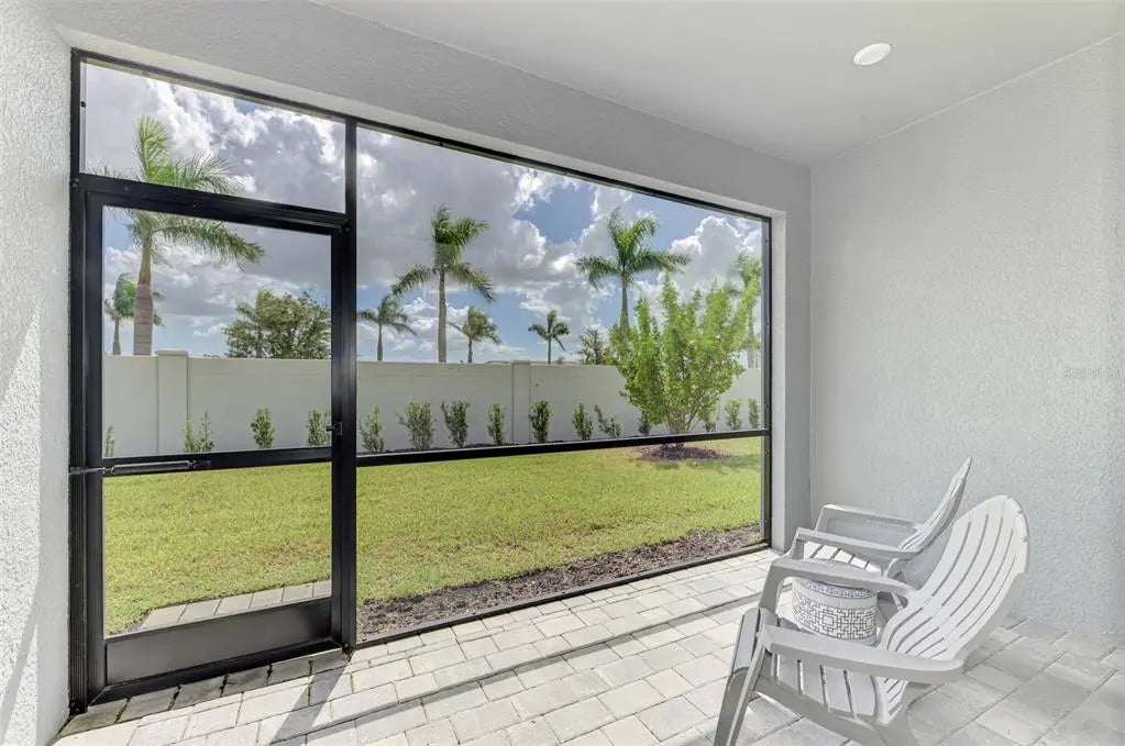 Better than new! This beautiful villa comes turn key, featuring 3 bedrooms, 2 baths, dedicated laundry room, and 2 car garage - plenty of space for entertaining family and guests. The front entry leads to an open-concept great room combining kitchen, dining and living room areas – all overlooking the screened lanai through expansive three-panel sliding doors that fill the space with light. Lofty 9’4” ceilings add to the homes bright, airy feel. Upgrades include tray ceiling in the primary bedroom, custom closets, lighting, refrigerator, washer and dryer, blinds and window treatments, EcoBee smart thermostat, ring doorbell and keyless entry. Your HOA covers lawn care, irrigation, roof maintenance, exterior painting, cable and internet, leaving you plenty of free time to walk a block to the new Amenity Center. There you will experience resort style living including a beach-entry pool with lap lanes, spa, fitness center, club house, pickleball and bocce courts, fire pit, grilling station, event lawn, playground and dog park. For more added entertainment you are around the corner from Atlanta Braves Cool Today Stadium, Wellen Park, with its 80 – acre lake, scenic walking paths, dining, shopping, golf, entertainment and of course stunning Gulf Coast beaches are a short drive away. Schedule your private tour today—your Florida lifestyle starts here!