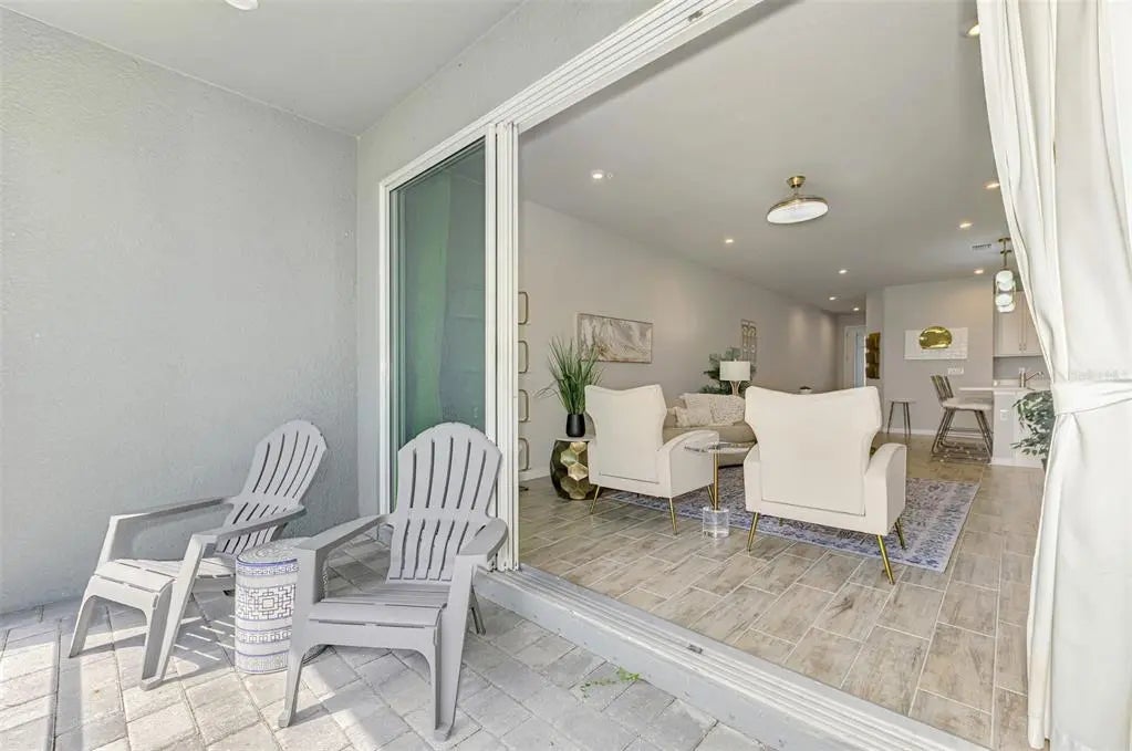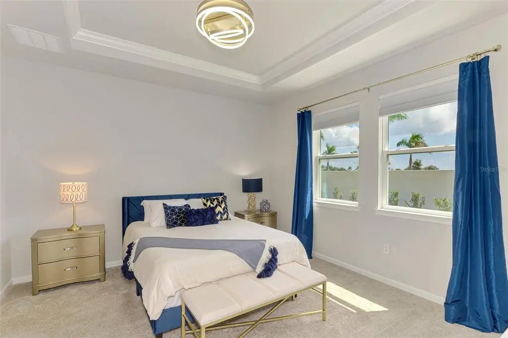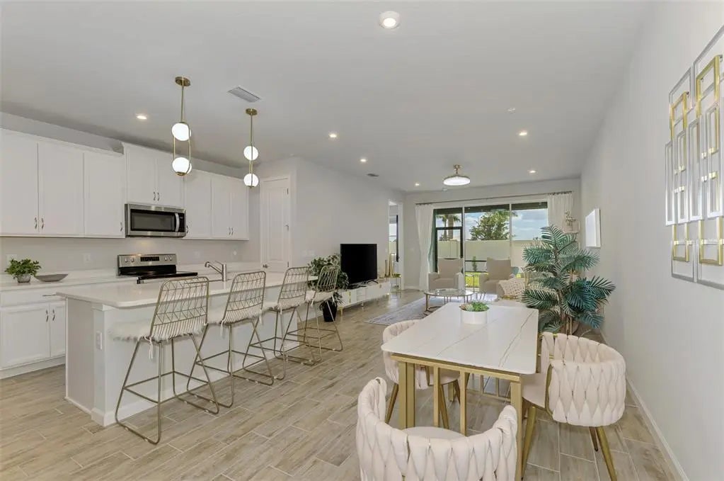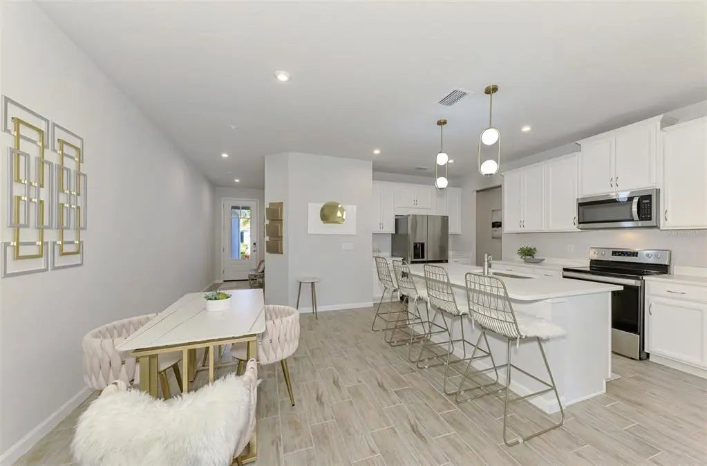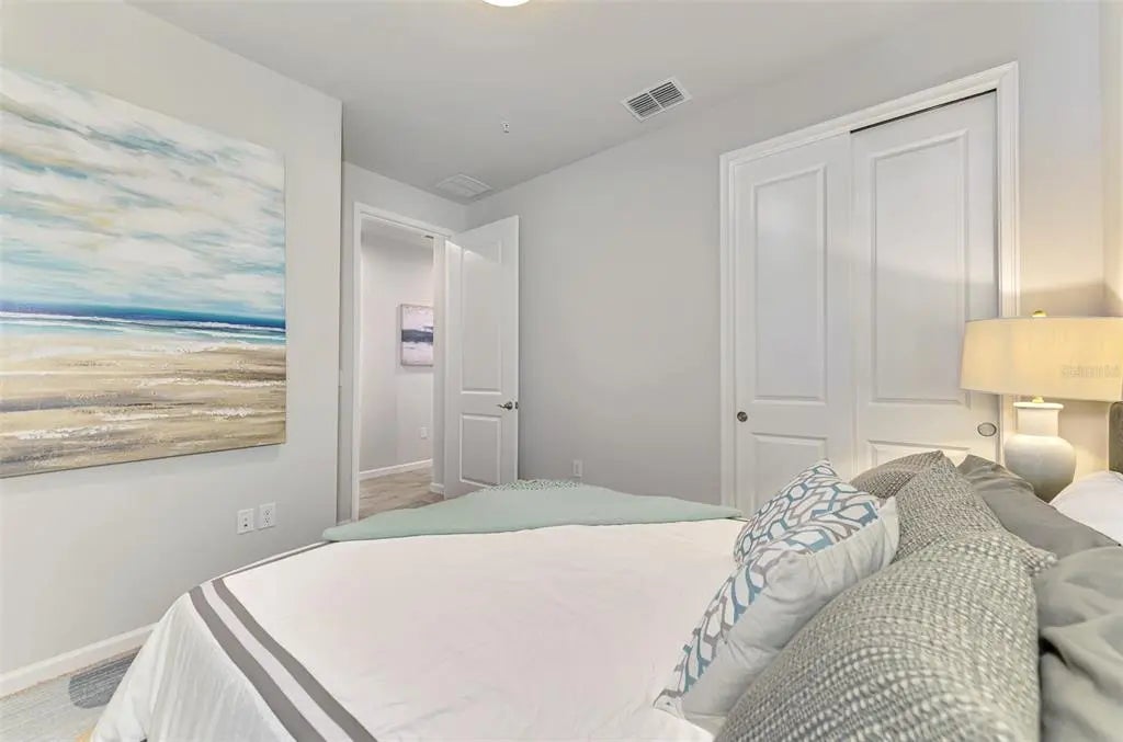 Better than new! This beautiful villa comes turn key, featuring 3 bedrooms, 2 baths, dedicated laundry room, and 2 car garage - plenty of space for entertaining family and guests. The front entry leads to an open-concept great room combining kitchen, dining and living room areas – all overlooking the screened lanai through expansive three-panel sliding doors that fill the space with light. Lofty 9’4” ceilings add to the homes bright, airy feel. Upgrades include tray ceiling in the primary bedroom, custom closets, lighting, refrigerator, washer and dryer, blinds and window treatments, EcoBee smart thermostat, ring doorbell and keyless entry. Your HOA covers lawn care, irrigation, roof maintenance, exterior painting, cable and internet, leaving you plenty of free time to walk a block to the new Amenity Center. There you will experience resort style living including a beach-entry pool with lap lanes, spa, fitness center, club house, pickleball and bocce courts, fire pit, grilling station, event lawn, playground and dog park. For more added entertainment you are around the corner from Atlanta Braves Cool Today Stadium, Wellen Park, with its 80 – acre lake, scenic walking paths, dining, shopping, golf, entertainment and of course stunning Gulf Coast beaches are a short drive away. Schedule your private tour today—your Florida lifestyle starts here!