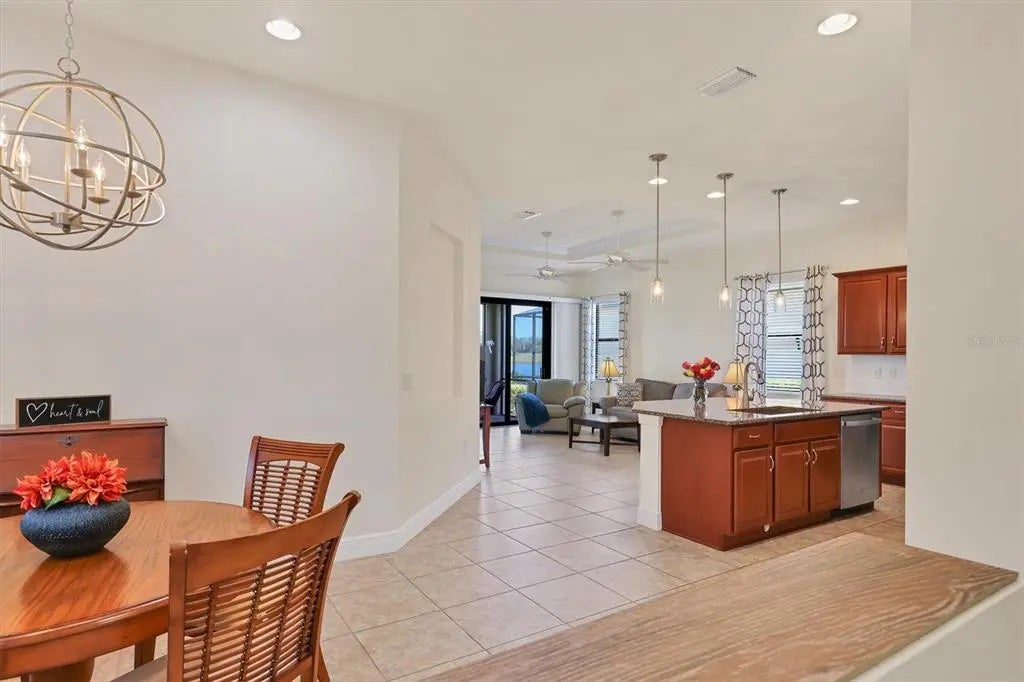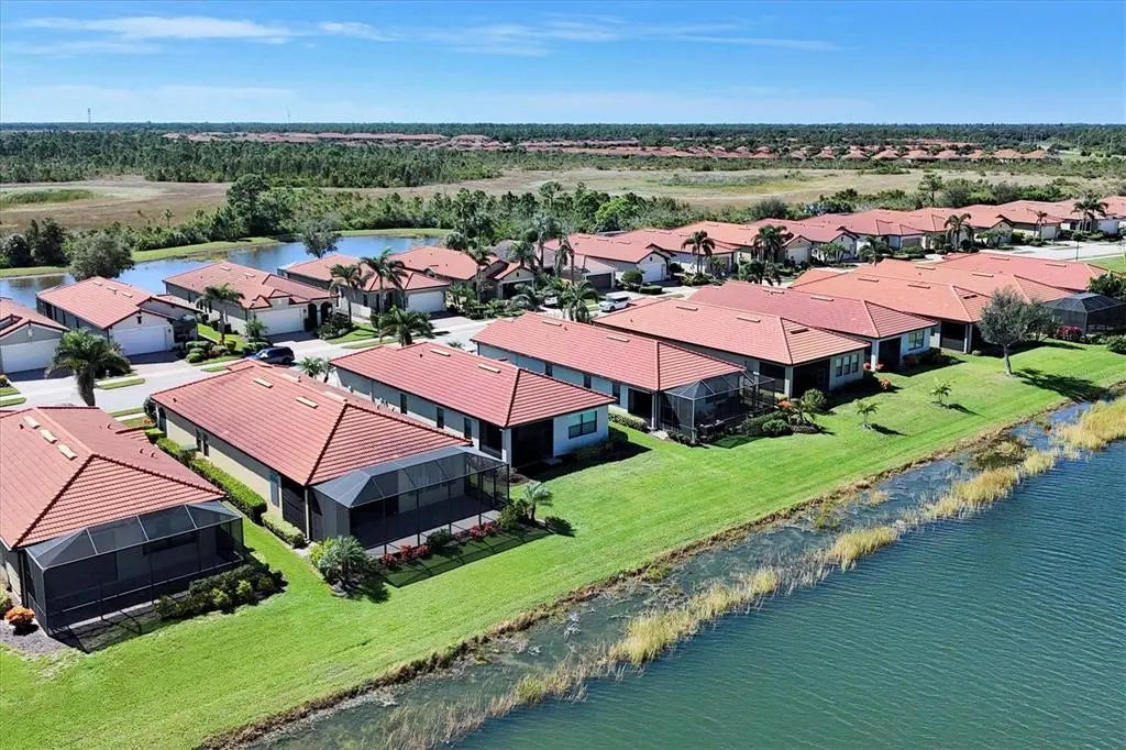 Discover the Charm of the “Medina” Model in Sarasota National. Welcome to this move-in-ready, maintenance-free LAKEFRONT home in the sought-after Sarasota National community. Built in 2016, this beautifully appointed 2-bedroom, 2-bath plus den residence offers a light-filled, open-concept floor plan perfect for both everyday living and entertaining. Step into the heart of the home — a modern kitchen featuring elegant cabinetry, granite countertops, Stainless Steel appliances, and a spacious center island ideal for gathering. Hurricane-resistant doors and windows invite in serene waterfront views while ensuring peace of mind. The cozy den offers the flexibility to create a private office, reading nook, or guest space. Located within an Audubon International Certified Signature Sanctuary, Sarasota National is a nature lover’s paradise with preserved native wetlands and wildlife, including deer, bobcats, a variety of birds, and even the occasional panther or alligator. Enjoy resort-style living with access to premier amenities: Tennis & pickleball courts, Fitness center, Dragonflies Day Spa, Beach-entry resort-style pool with lap lanes and spa, Bocce ball, bike trails & dog park. Enjoy The Palm Club restaurant, bar & lounge to meet new friends, enjoy your family or just take a break from cooking! Whether you're seeking comfort, community, or a connection to nature, this luxury retreat in Sarasota National offers it all. In addition, you are in Wellen Park with a myriad of amenities (restaurants, clothing stores, nail salon, etc.). A little further drive will take you to Venice Beach or Downtown with fabulous restaurants and gorgeous sunsets over the Gulf of Mexico. This is one you will not want to miss! Schedule your showing today before it's too late to live in Paradise!