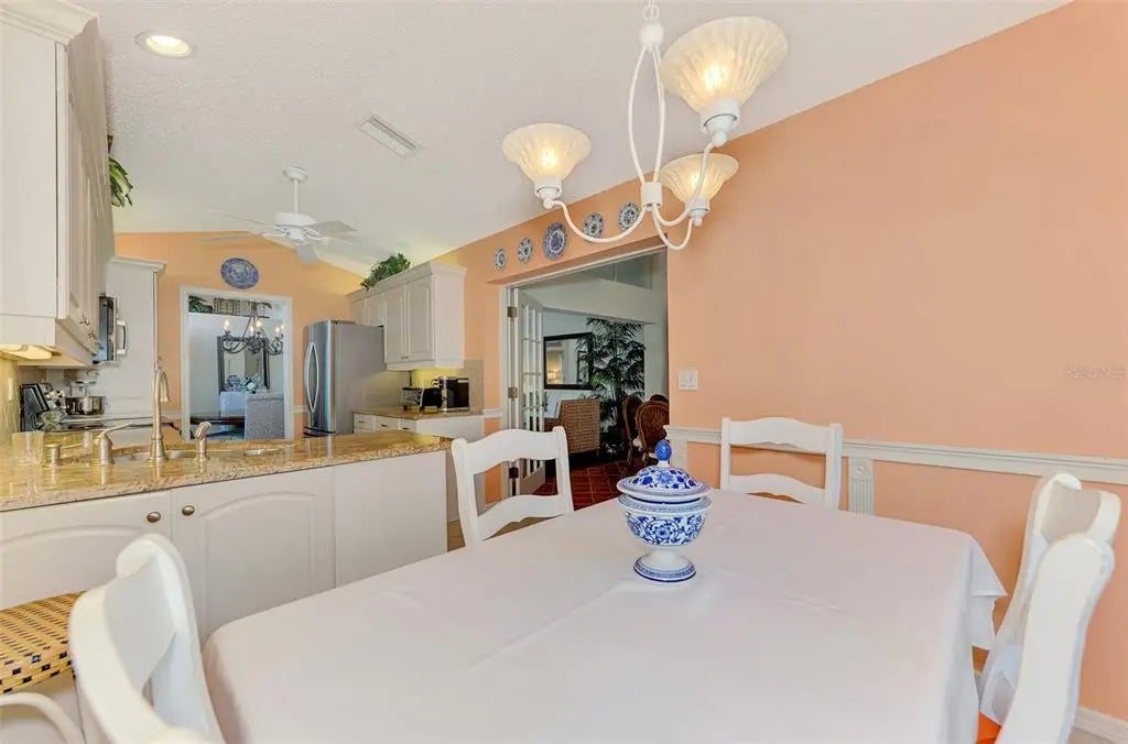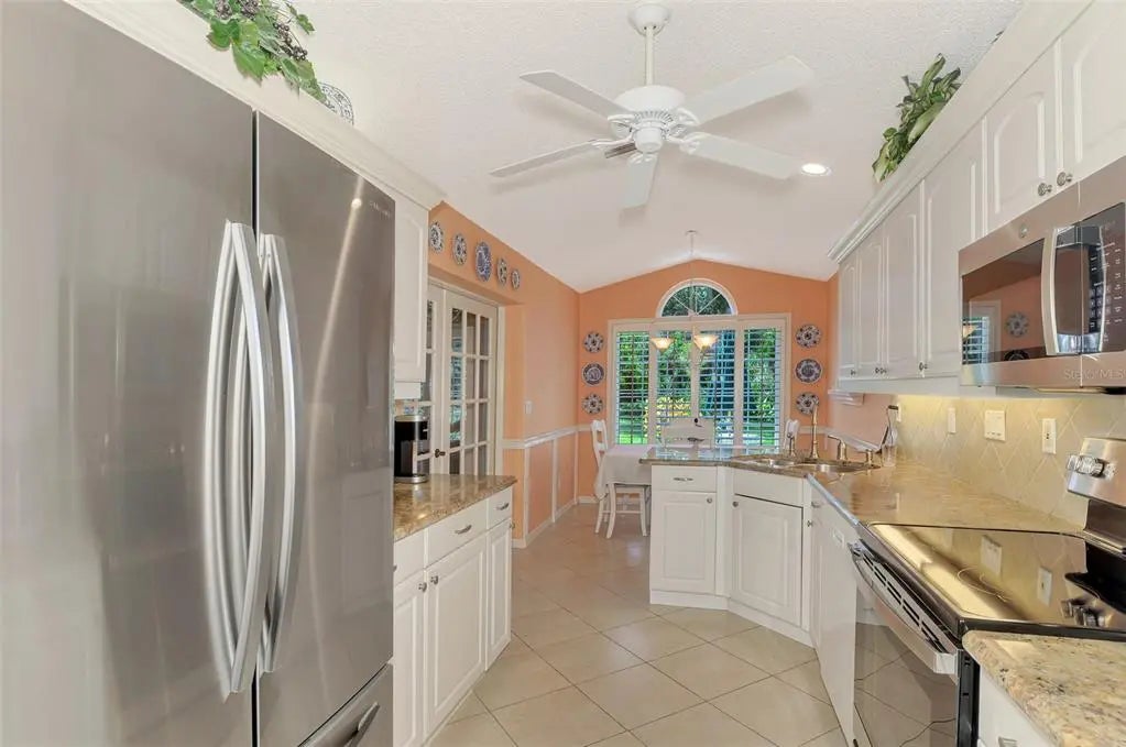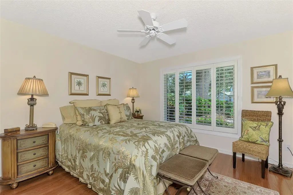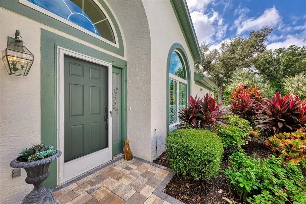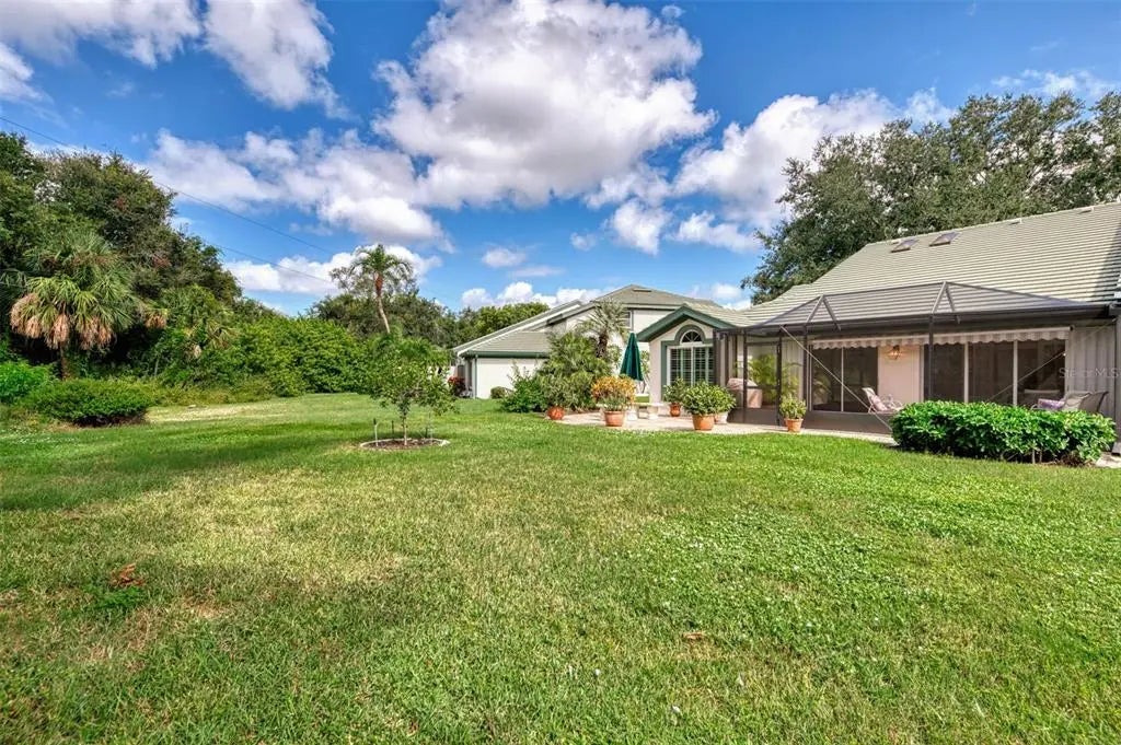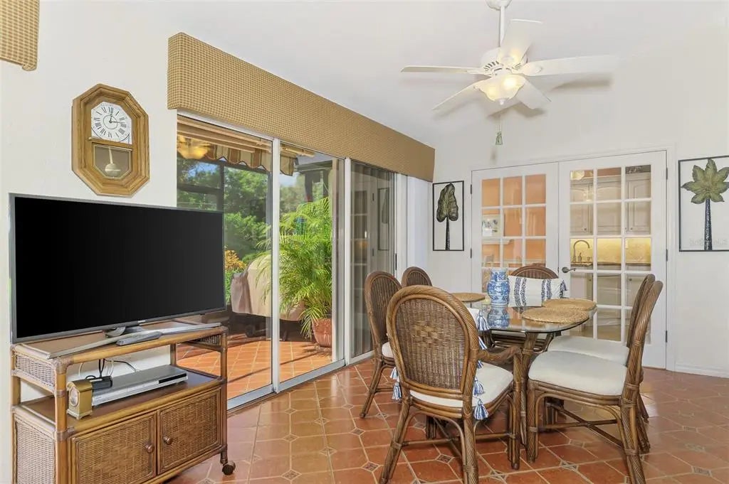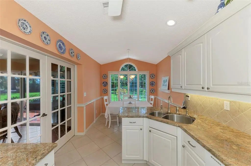 Attractive two bedroom, plus den, two bath, paired villa, in the much sought after Bridle Oaks Community, just off of Capri Isles Blvd. The villa features an open floor plan with cathedral ceilings with skylights in your living room, giving it an even more open and airy feel. Large Florida Room off of the living room with vaulted ceilings.(25X11) Sliders from the Florida Room to the newer caged back porch with an awning, looking out onto the water, golf course and woods. You have an open back porch as well. Kitchen has granite counters, stainless appliances and a breakfast nook. The master bedroom is on the back of the home and features two large California-type, walk-in closets. The home has been well-taken care of and move-in ready. It is being offered partially furnished. The windows were replaced with impact resistant, storm rated type. A brick-paver driveway was completed in 2024, along with a new garage door and water heater. The AC system was replaced in 2023. The tile roof was replaced in 2009. This gated, maintenance free community of 60 homes, offers a heated pool and spa, with clubhouse. This community is tucked beautifully off of Capri Isles Blvd. and Wellfield Park and a great central location and within 4 miles to beautiful downtown Venice and the beaches of the Gulf of America. Come see this great buy today!