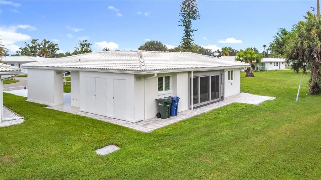 Welcome to your new home, this exquisite three bedroom detached Villa has been tastefully remodeled throughout, remodeled kitchen with new cabinets, stainless steel appliances and quarts countertops, new bathroom vanities with quartz countertops, with ceramic/marble backsplash, luxury vinyl flooring in Lanai and bedrooms, laundry with new cabinets. Resurfaced and sealed (matt finish) Bella wood flooring in living room, dining room and hallway, recent Impact resistant windows throughout including sliders 2022, window coverings, newer roof 2020, new electric panel, tankless hot water heater 2025, popcorn removed throughout with new textured finish throughout, light switches and outlets replaced, washer, dryer, two exterior storage units (300 sq ft), attractive paver patio in rear with view of old growth tree line, walk around sidewalk from patio to carport and driveway newly sealed, raised flower beds, mature plantings, all downspouts are now underground providing little to no maintenance. It can take up to two weeks for buyer approval from the board. This home qualifies for reduced insurance rates with a four point mitigation inspection report. Located in active community with many activities to join in, two pools, jacuzzi, club house, library, fitness room, game room, horseshoes, shuffleboard, easy access to area beaches, Manasota beach is five minutes away and Casperson and Venice beaches are fifteen minutes away. Beautiful Downtown Venice has entertainment, dining, theater's & shopping. Move right in and start enjoying the Florida lifestyle you deserve.