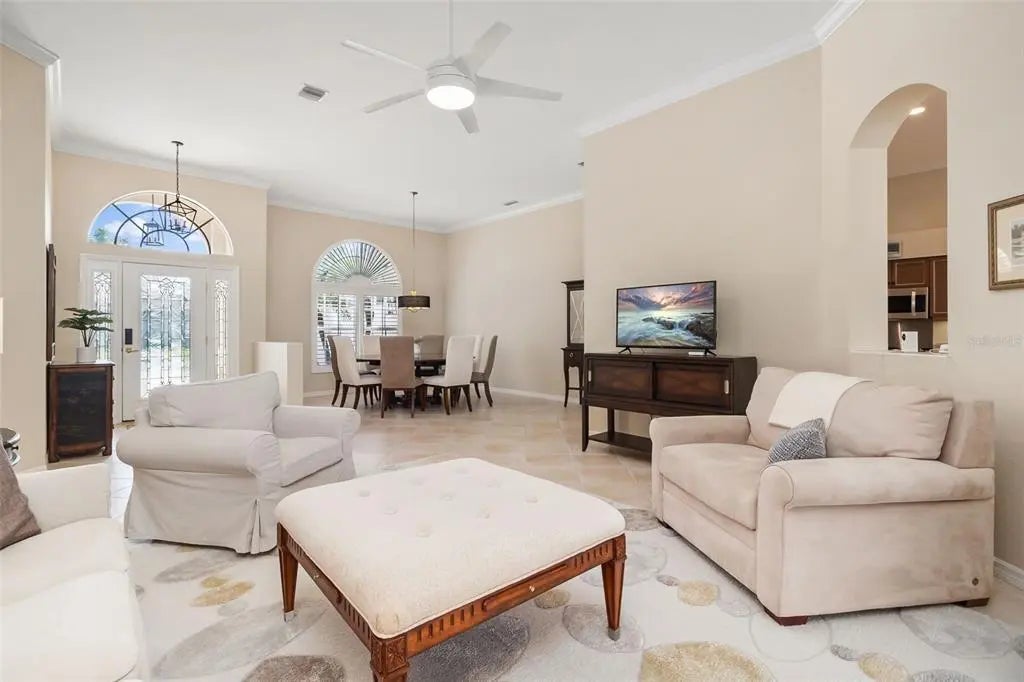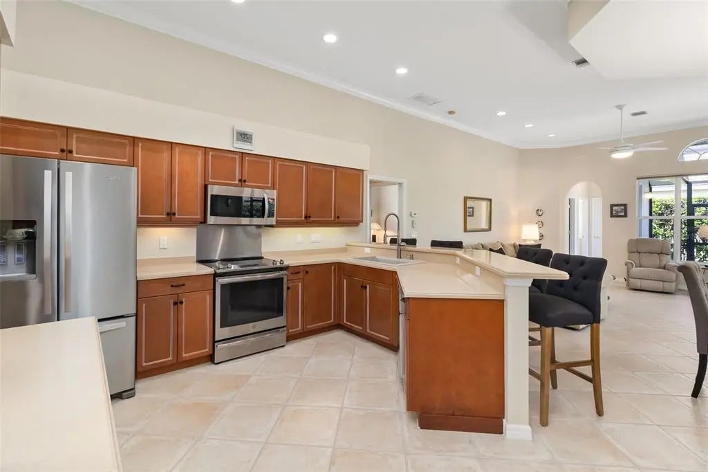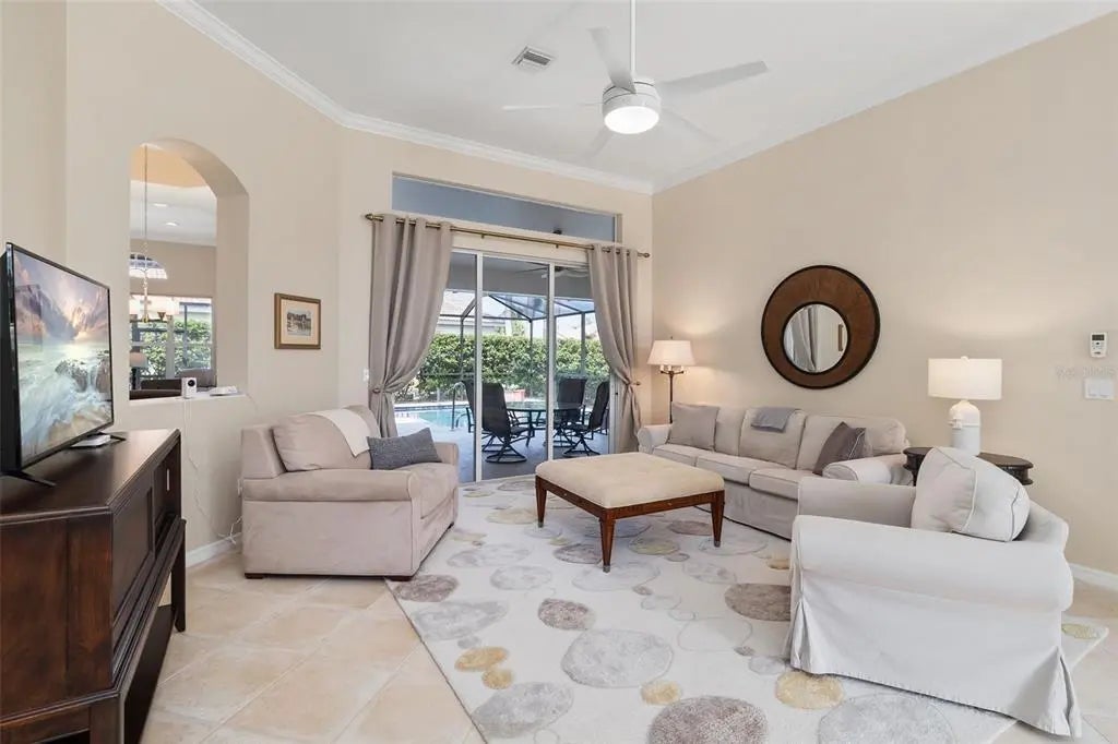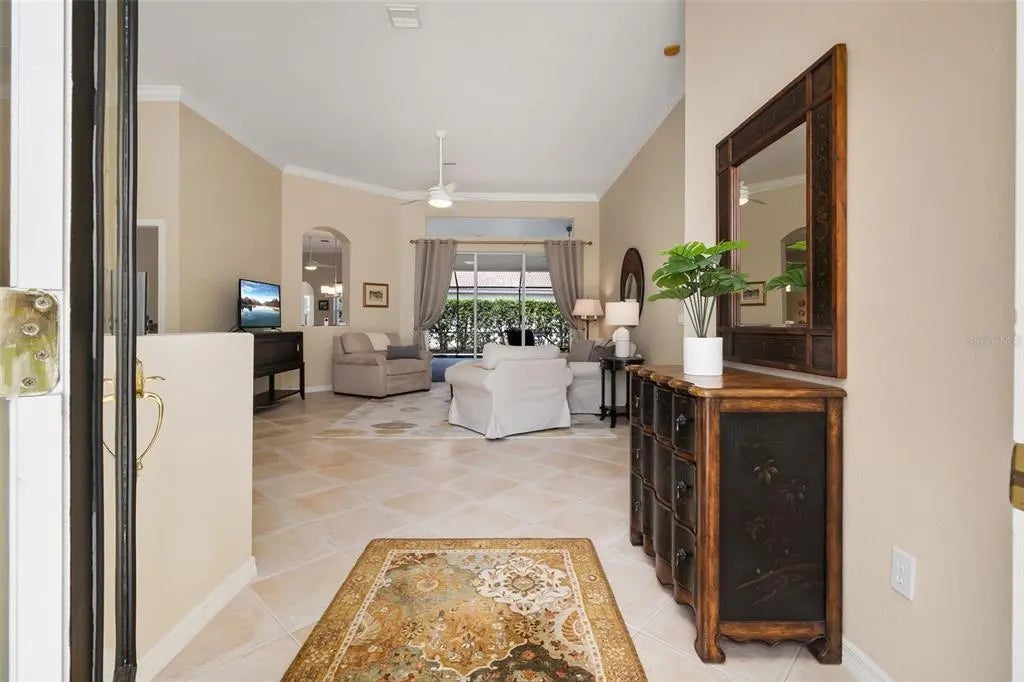 Welcome to 4641 Gaeta Dr, a TURNKEY residence located in the gated community of Venetia in Venice, Florida. Set on a beautifully landscaped corner lot, this spacious home offers over 2,600 square feet of living space with 3 bedrooms, 3 full bathrooms, and a versatile den that can easily be converted into a 4th bedroom—perfect for guests, a home office, or flex space. The 2023 tile roof replacement provides long-term protection, lower insurance risk, and peace of mind for years to come. From the moment you arrive, you'll appreciate the circular driveway, oversized garage, and mature landscaping that enhance the home's curb appeal and functionality. Inside, enjoy high ceilings, crown molding, dual living areas, new lighting fixtures, and a light-filled open layout. Offered furnished, this home is truly move-in ready—ideal for either seasonal or full-time living. The kitchen and living spaces flow seamlessly to the outdoors, where a private pool with a tranquil water feature invites you to relax, entertain, and enjoy the Florida lifestyle. The spacious primary suite features a soaking tub, walk-in shower, and generous closet space. Location is everything, and this home delivers—just under 5 miles to Wellen Park, home of the Atlanta Braves’ spring training stadium, restaurants, shopping, live music, and Florida’s #1-rated farmer’s market. You're also only 6 miles to Historic Downtown Venice, filled with charming boutiques, cultural attractions, and coastal dining. When it’s time for the beach, Venice Beach is just 6.5 miles away. With its original-owner care, extensive upgrades, flexible layout, and furnished convenience, this home is a rare opportunity in one of Venice’s most desirable communities.