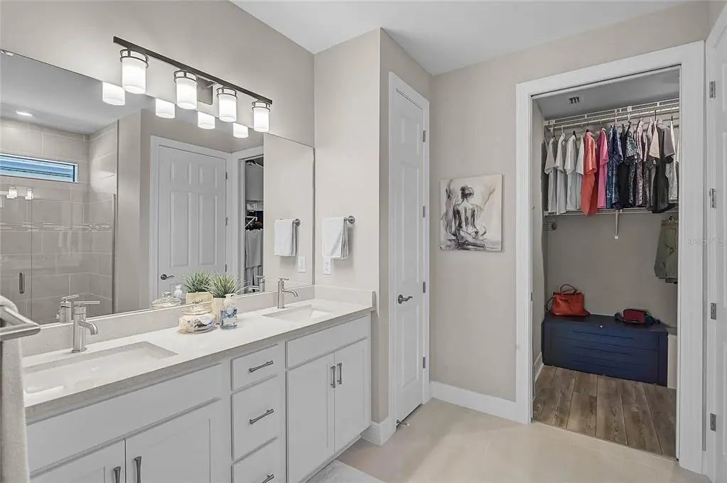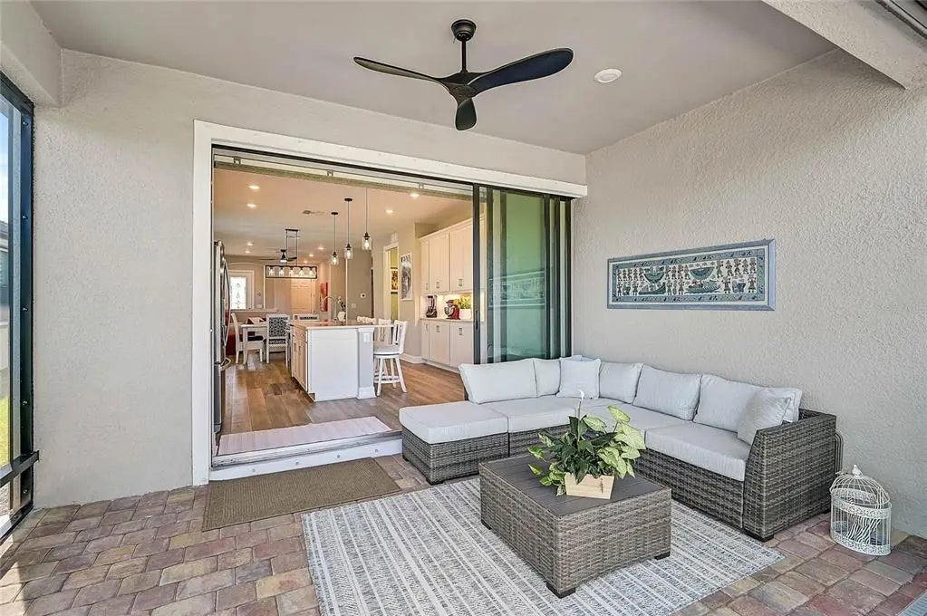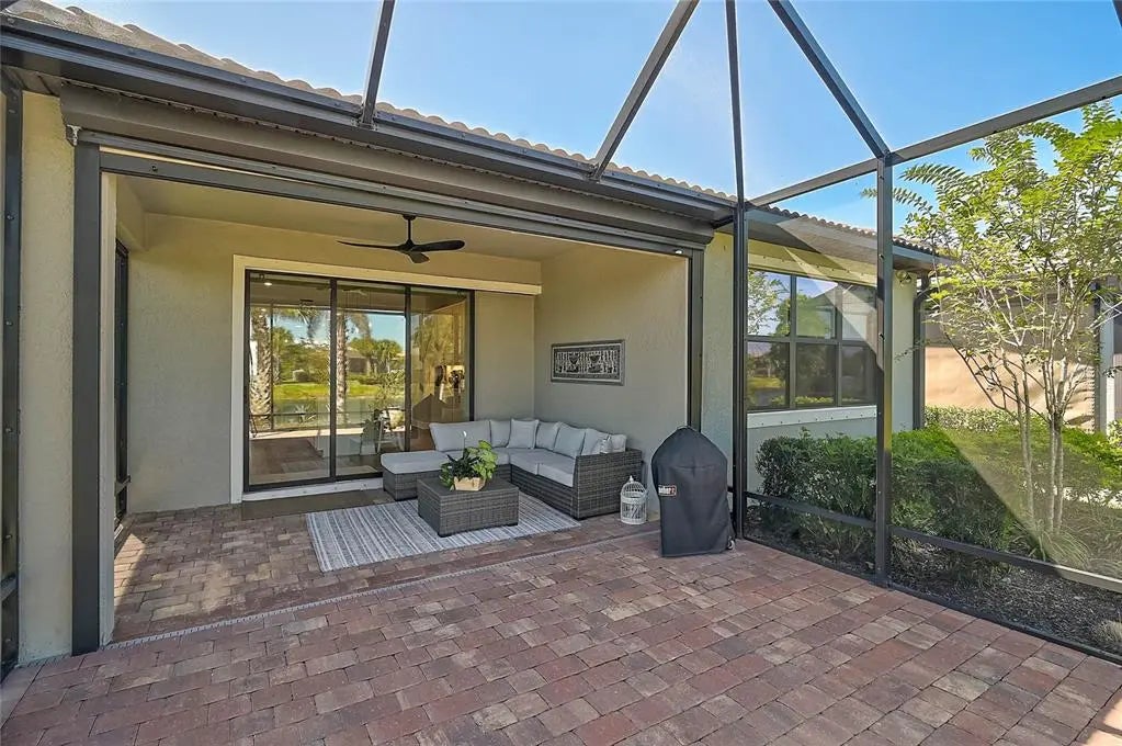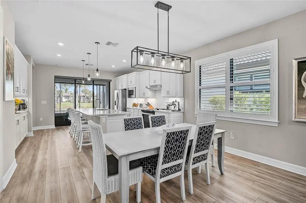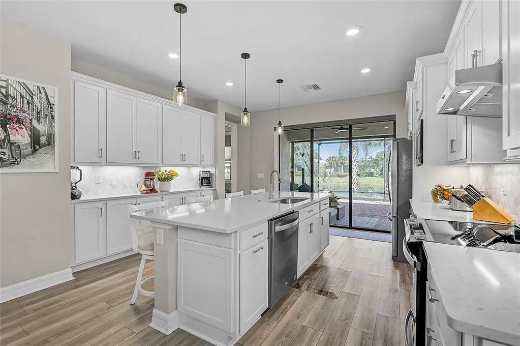 Under contract-accepting backup offers. Welcome to this beautifully appointed 2022 Divosta-built Crestview model in the highly sought-after, resort-style community of IslandWalk at the West Villages. This elevated 3-bedroom, 2-bath home, with one room that easily doubles as a study or flex space, offers timeless style and thoughtful upgrades throughout. At the heart of the home, the chef’s kitchen combines elegance and practicality with stunning quartz countertops, upgraded soft-close cabinetry, pull-out drawers, under-cabinet lighting, and a spacious island perfect for entertaining. The kitchen’s sliding doors feature an automatic roller shade, giving you effortless control of light and privacy with the touch of a button. Step outside to the extended, paved lanai overlooking a peaceful pond, complete with Storm Smart weather protection curtains which is perfect for year-round Florida living. Inside, you’ll find plantation shutters, rain shower heads in both baths, two linen closets, and a whole-house generator and water purification system for added comfort and peace of mind. The extended two-car garage features an epoxy finished floor and utility sink, providing both practicality and extra space for storage or projects. IslandWalk offers an unmatched resort-style lifestyle with 24-hour staffed gated entry, sparkling resort and lap pools, tennis, pickleball, bocce, fitness centers, and a full calendar of social events. Scenic lakes, picturesque bridges, and endless walking and biking trails set the backdrop for daily adventures. Just beyond the gates, you’ll find Downtown Wellen Park, home to waterfront dining, boutique shops, live music, the CoolToday Park (Atlanta Braves Spring Training), and year-round community events. Gulf Coast beaches, shopping, and dining are only minutes away. This is more than a home. It’s a lifestyle waiting for you in the heart of Wellen Park. ¤ Please see 3D Tour and Video ¤