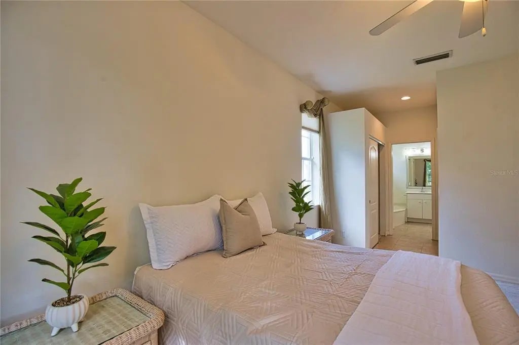 Motivated seller! Welcome to this beautifully maintained 2-bedroom, 2-bath villa with den (optional 3rd bedroom) in the highly desired St. Andrews Park of Plantation Golf & Country Club. Perfectly located on a quiet cul-de-sac, this spacious home offers serene surroundings and convenient access to the community pool directly across the street. Enjoy tranquil views of your own tropical garden and the 13th hole of the Bobcat Course, providing a peaceful and private retreat. The open floor plan features cathedral ceilings, an extended living room, split bedrooms, and a versatile bonus area off the kitchen for storage or hobbies. The large primary suite includes dual closets, southern exposure, and an en-suite bath with soaking tub, separate shower, and private commode. This partially furnished home is move-in ready with a new tile roof (2023), new water heater (2023), and AC (2018). The HOA covers exterior maintenance, roof care, lawn service, pest control, water/sewer, basic cable, and annual vent cleaning for true maintenance-free living. Enjoy multiple community pools, one just steps away, plus optional membership to Plantation Golf & Country Club offering golf, tennis, pickleball, bocce, fitness, dining, and social activities. Conveniently located near Center Road, just minutes from Wellen Park, Downtown Venice, shopping, dining, beaches, and Sarasota Memorial Hospital. Experience the best of relaxed Florida living in this inviting Venice villa!