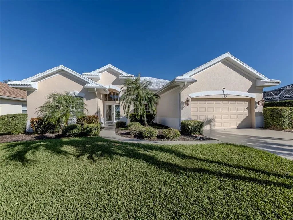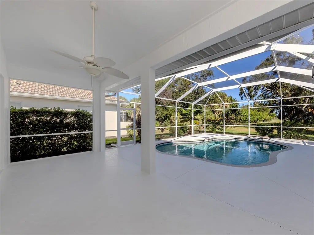 One or more photo(s) has been virtually staged. GOLF COURSE LIVING WITH POOLSIDE COMFORT. Set at one of the most desirable locations in the community, this beautifully refreshed home offers a rare position overlooking the “T” of the 9th hole—providing long, scenic fairway views and a wonderful sense of space. The setting combines the tranquility of golf course living with the privacy of a thoughtfully designed outdoor retreat, complete with a sparkling pool and newly refinished deck. The home has been completely repainted inside, creating a bright, welcoming atmosphere that feels both fresh and timeless. Soft neutral tones complement the natural light that fills the living areas, and every space is ready for your personal style. The layout is open and functional, blending comfortable living with easy entertaining. Inviting Interior and Flexible Layout From the moment you step inside, you’ll notice the generous sightlines and open design that make this home feel larger than expected. The living room is the centerpiece—offering a spacious area for relaxing or entertaining guests—with sliding glass doors that frame the pool and golf course beyond. The connection between indoors and outdoors is seamless, encouraging you to enjoy the Florida sunshine year-round. The kitchen is positioned to keep the cook engaged in the activity around them. There’s plenty of counter space for meal prep, an efficient layout for everyday use, and a direct view of the living area and lanai—ideal for casual gatherings or quiet evenings at home. Each bedroom is well-sized and comfortable, with ample closet space and large windows that invite in light. The primary suite is especially private, featuring direct access to the pool deck. Wake up to soft morning light, take a swim before breakfast, or unwind in the evening while watching the sun fade over the fairway. The outdoor area is a highlight of this home. The freshly painted pool deck feels crisp and new, surrounding a clear, inviting pool that takes full advantage of the home’s orientation on the course. The covered lanai offers room for dining, lounging, or entertaining—protected from the sun while still open to the breeze. With its complete interior repainting and renewed pool deck, this home presents itself in excellent condition—clean, neutral, and ready for immediate enjoyment. The hard work has been done, so you can move right in and focus on the details that make a house feel like home. The color palette and finishes are versatile, making it easy to pair with your existing furniture or introduce new design touches. Throughout the home, thoughtful details enhance both comfort and functionality. Large windows maximize the natural light, ceiling fans keep the air moving, and the floorplan balances openness with privacy. Whether used as a full-time residence or a seasonal retreat, the design adapts easily to a variety of lifestyles. HOA fees of only $171.92 monthly and NO CDD fees! Sawgrass offers amenities galore with a community pool, clubhouse, fitness center, tennis and pickleball courts, and more. Beyond the gates, everything you love about Venice is within easy reach—charming downtown streets, beaches, parks, restaurants, and cultural attractions. Discover the ideal balance of leisure, style, and easy maintenance in this freshly renewed golf course home—a place designed for both relaxation and everyday living.