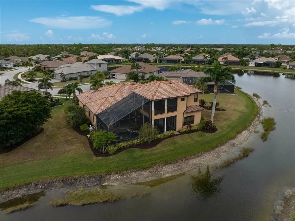 Discover refined Florida living in this custom-designed, one-of-a-kind Sam Rogers estate home, perfectly placed at the end of a quiet cul-de-sac in the gated, resort-style community of Gran Paradiso. Framed by serene pond and preserve views, this exceptional residence blends timeless architectural elegance with modern comfort and everyday livability. Inside, Mediterranean-inspired design unfolds with graceful arches, upgraded crown molding, hardwood flooring, special stucco wall finishes, and soaring tray ceilings that invite natural light throughout. The gourmet kitchen is a true centerpiece with rich cherry cabinetry, granite countertops, gas range, R/O water system (located at the laundry room sink), and thoughtful details designed for both cooking and gathering. The open-concept living space flows seamlessly through French doors to the lanai, creating an effortless indoor-outdoor lifestyle. Designed for relaxation and connection, the outdoor sanctuary features a recently rescreened lanai, sparkling saltwater pool, custom spillover spa, and a decorative water bowl fountain offering a tranquil ambiance from sunrise to sunset. A private spiral staircase leads to a covered balcony overlooking peaceful preserve and pond views to give you an elevated retreat for morning coffee, evening cocktails, or quiet moments with nature. With 4 bedrooms plus versatile living spaces, this home offers comfort for hosting and everyday life. The spacious primary suite features custom wood closet systems and luxurious finishes. Additional highlights include newly replaced A/C units (2021 & 2023), hurricane-impact glass, abundant storage, and thoughtful upgrades throughout that delivers peace of mind and refined living in every detail. Life in Gran Paradiso means access to true resort-style amenities: a grand Tuscan-inspired clubhouse, sparkling zero-entry community pool, fitness center, tennis & pickleball courts, sauna, playground, miles of walking and biking paths, and a full calendar of social activities and community events. Residents enjoy gated security, beautifully manicured grounds, and a lifestyle designed for connection, wellness, and ease. Just moments away, Downtown Wellen Park offers vibrant dining, boutique shopping, live music, outdoor recreation, and year-round community events set around an 80-acre lake. Enjoy lakefront restaurants, rooftop bars, scenic kayak & paddle board launches, and miles of trails. Cheer on the Atlanta Braves at CoolToday Park, explore farmers markets, bike to town events, or spend the day basking on award-winning Gulf beaches. Now is a rare opportunity to own a custom-crafted home where elegance, privacy, nature, and resort amenities meet all while being just minutes from Venice’s beaches, charming downtown, golf, dining, and the heart of Wellen Park living. Welcome home to everyday luxury on Campanile Court. ¤ Please see 3D Tour and Video ¤