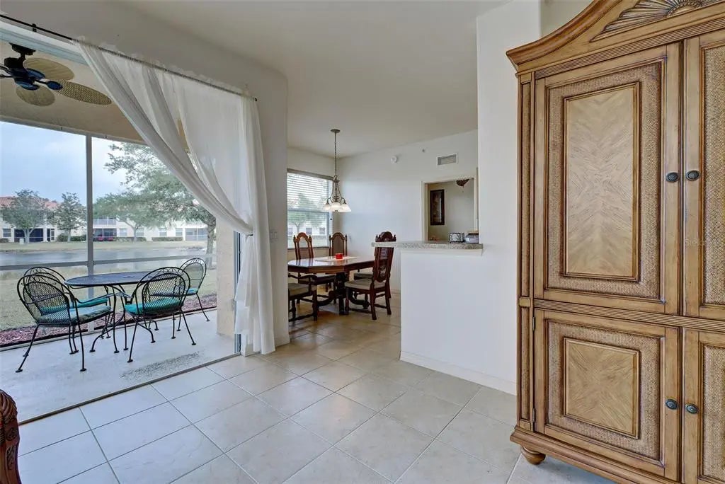 FIRST FLOOR with NO STAIRS and 9.5 ft ceilings! Discover the perfect blend of comfort and convenience in this well-maintained corner unit condo. Nestled in the secure, gated community of Venetia, this inviting home features a spacious open concept floor plan that includes 3 bedrooms and 2 bathrooms, creating an ideal environment for both relaxation and entertainment. Tall ceilings enhance the sense of space and openness, complemented by ample natural light throughout. Step outside to the private lanai, where picturesque views of the community pond and birds provide a serene backdrop whether you are savoring your morning coffee or relaxing with evening cocktails. This outdoor space offers a peaceful retreat from the hustle and bustle of daily life. Back inside, the kitchen opens seamlessly to the dining and living areas, ensuring that you’re never far from the conversation. Each bedroom offers a peaceful retreat to maximize privacy and comfort, with the primary suite boasting it's own ensuite bathroom for added convenience. Additional highlights of this exceptional condo include a one-car garage, providing ample storage space for bicycles, golf clubs, etc. But the true allure of this community lies in its unparalleled amenities and social opportunities. As a resident, you'll have exclusive access to a wealth of recreational opportunities within the clubhouse. Take advantage of the well-maintained pickleball, tennis, basketball and bocce courts for a friendly game with neighbors, or unwind in the hot tub after a refreshing dip in the pool. But the amenities don't stop there. The clubhouse is a hub of activity, hosting a variety of social events and daily activities for residents to enjoy. From card games to special interest groups, there's always something exciting happening just steps from your front door. Safety and community go hand in hand in this welcoming neighborhood, with well-lit sidewalks inviting residents to take leisurely strolls day or evening. Whether you're seeking relaxation, recreation, or social connection, this condo offers the perfect blend of lifestyle and convenience for discerning buyers.