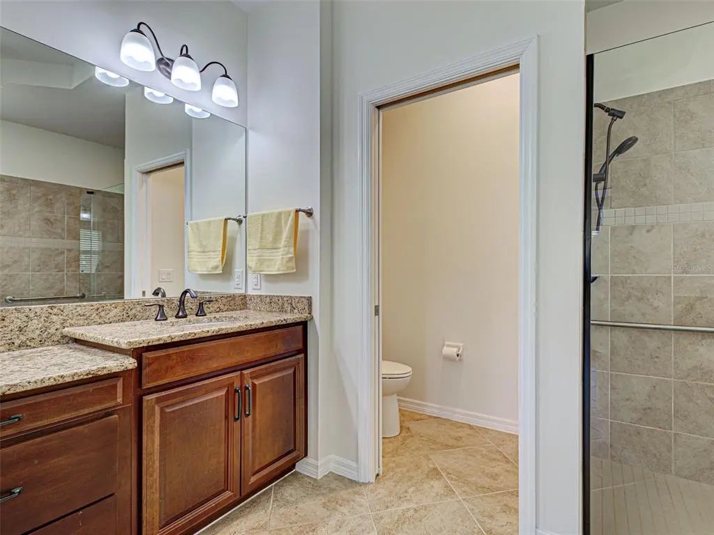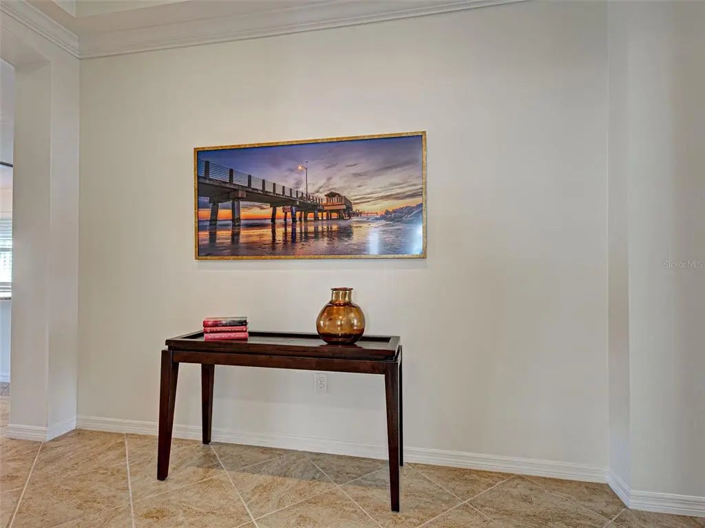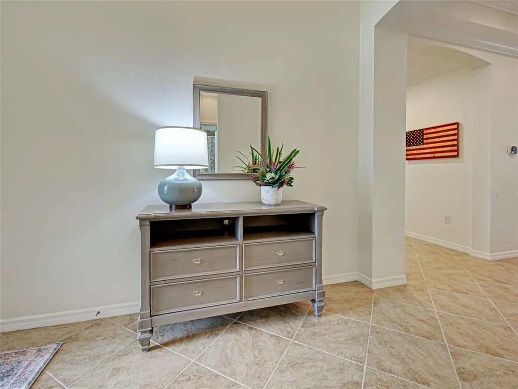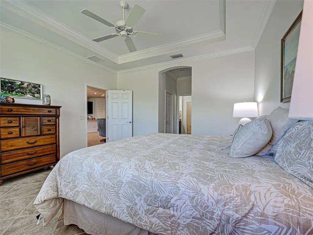 Experience the essence of refined living in this pristine home with a WATER AND PRESERVE VIEW! Embrace the warm welcome, serene surroundings and captivatin views that define this beautiful residence and community. The open-concept design draws you into the heart of the home, where panoramic waterfrount views take center stage. Designed for both style and functionality, this home space flows effortlessly with tile flooring throughout, coffered ceilings and crown molding , plantation shutters and much more. The gourment kitchen showcases premium applicances, granite countertops,large center island, wood cabinetry with custom drawers and a spacious walk-in pantry. The adjoining great room presents the ideal entertaining space with coffered ceilings and crown molding. Sliding doors create a seamless transition to the outdoor lanai, where the lake and wooded views set the perfect backdrop for your entertaining enjoyment. Retreat to the primary ensuite for a spa like feeling of relaxationwhile enjoying the large soaking tub, dual vanities, walk -in-shower, granite countertops. The primary bedroom is a tranquil retreat and is complemented by oversized walk in closets ,plantation shutters,tile flooring for ultimate comfort. The 2 guest bedrooms have a shared full bathroom with a separate linen closet. The split floor plan ensures privacey for all your guest to enjoy. The office / den features double doors for added privacy to enjoy your private space. A large laundry room with sink and custom cabinets making laundry day "loads of fun". A 2 car garage with epoxy flooring with lots of space for storage. Caribbean Village community offers a community pool, gym, gathering area , gated, low HOA and no CDD fees, close proxmity to pristine beaches, historic downtown Venice, fine dining, shopping ,golf courses ,entertainment and minutes to Wellen Park, Braves Stadiium, Costco and hosptials . Schedule a private showing today and make this home YOURS !