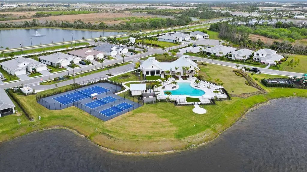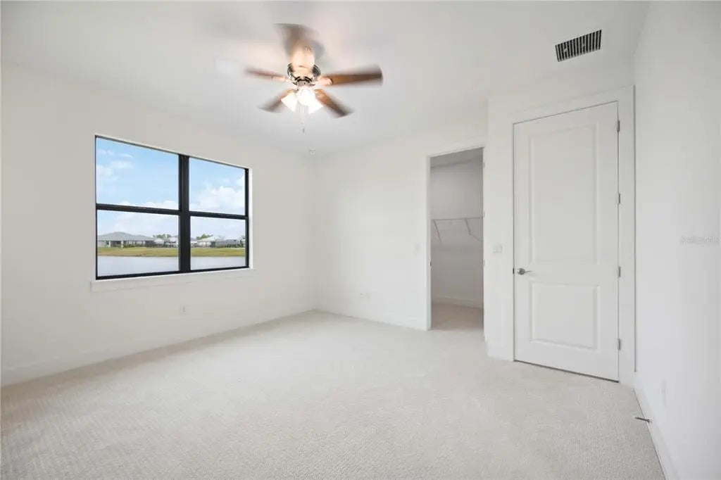 Discover luxury lakefront living in this beautifully crafted Toll Brothers home, ideally located in the sought-after Solstice community of Wellen Park. Perfectly positioned on one of the largest lakes in the neighborhood, this residence offers serene water views and unmatched tranquility. With waterfront lots now completely sold out, this is a rare opportunity to own one of Solstice's premier homesites. Enjoy peaceful mornings and sunsets from your covered lanai overlooking the lake and fountain, just steps from the clubhouse and dog park. This 4-bedroom, 3-bath home spans 2,134 sq ft and showcases more than $126,000 in premium upgrades, including a $75,000 lakefront lot premium. The spacious yard easily accommodates a future pool or extended lanai, ideal for creating your private outdoor oasis. Built to the highest standards with hurricane-impact windows and doors, this home provides peace of mind and lower insurance costs. Located outside the flood zone with low HOA fees, Solstice offers both value and lifestyle. Inside, you'll find elegant neutral tile flooring throughout the main living areas, 8-foot doors, oversized baseboards and casing, and tray ceilings that enhance the sense of space. Each bedroom includes ceiling fans with light kits, while plush carpeting and upgraded padding add comfort underfoot. The chef's kitchen is a standout, featuring dovetail, soft-close cabinetry, granite countertops, and a premium stainless-steel appliance package with upgraded range and dual electric and gas hookups--giving you the choice for how you love to cook. The open-concept living and dining areas are filled with natural light and highlight panoramic water views through oversized sliding glass doors. The primary suite offers a peaceful lake view, an expansive walk-in closet, and a spa-inspired en suite bath with upgraded cabinetry, stone countertops, and a frameless glass walk-in shower. At the front of the home, two bright guest bedrooms share a stylish hall bath, while the fourth bedroom features a private en suite bath and walk-in closet--perfect for visiting family or guests seeking extra privacy. Additional highlights include a separate laundry room and a two-car garage with upgraded epoxy flooring. Residents of Solstice at Wellen Park enjoy resort-style amenities, including a clubhouse, resort-style pool, fitness center, pickleball and tennis courts, dog park, and playground. Located just minutes from CoolToday Park, Downtown Wellen Park, and a short drive to Venice's pristine beaches and historic downtown, this home combines luxury, convenience, and community. Don't miss your chance to own this exceptional lakefront retreat in one of Southwest Florida's most desirable new communities.