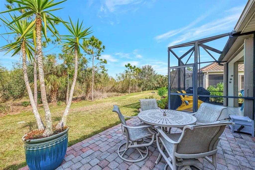 One or more photo(s) has been virtually staged. Why wait to build or go through Warranty when this updated Villa is ready to move in with countless upgrades! Nestled in the sought-after Grand Palm community, this meticulously kept Villa has 2 BDRM, 2 BA with Study/Den that can also be used for additional guests that adds comfort and functionality in a serene resort-style setting! Inside you will find modern upgrades including a new shower and vanity countertops in the guest bathroom, improved shower design in the primary bathroom, custom privacy accordion shades for both the guest and primary bathroom suites, Rev-A-Shelf cabinet organizers in the kitchen and primary bathroom, custom kitchen pantry, upgraded kitchen appliances, vented microwave range hood, enlarged kitchen island with new countertop, plantation shutters, new A/C in 2018, new water heater in 2024, hurricane shutters for the entire villa, custom privacy accordion lanai shade and so much more! Enjoy your quiet peaceful evenings on the extended lanai with an added paver patio while enjoying the tranquil backyard with a preserve setting on a larger lot. This section of Grand Palm has their own community pool, hot tub and outdoor BBQ grill available only to residents living within. Grand Palm is an amenity-rich community with an abundance of activities to keep you busy with 26+ miles of walking/biking paths, tennis, pickleball, a fitness center, three additional community pools, splash pad, dog parks and a full-time Activity Coordinator. Just a short drive to beautiful Gulf Beaches, Historic Downtown Venice, vibrant Wellen Park, the Atlanta Braves Stadium and easy access to I-75. Living the life you have earned can be more than just a dream, so schedule your private showing today!