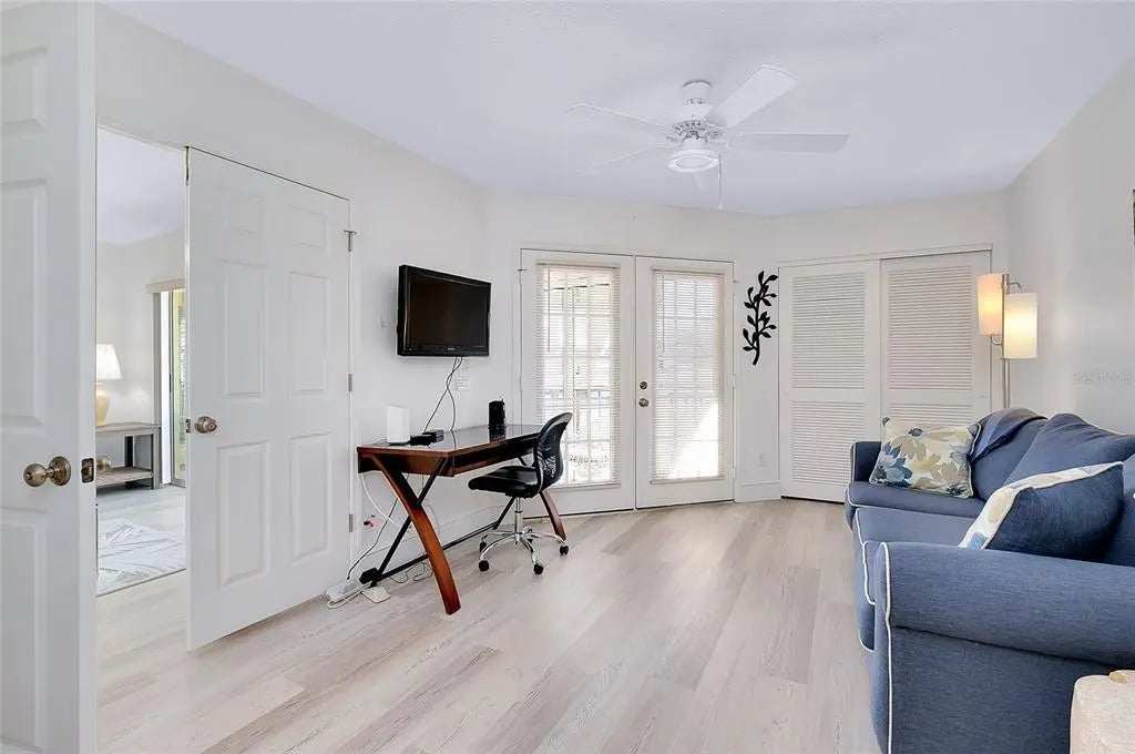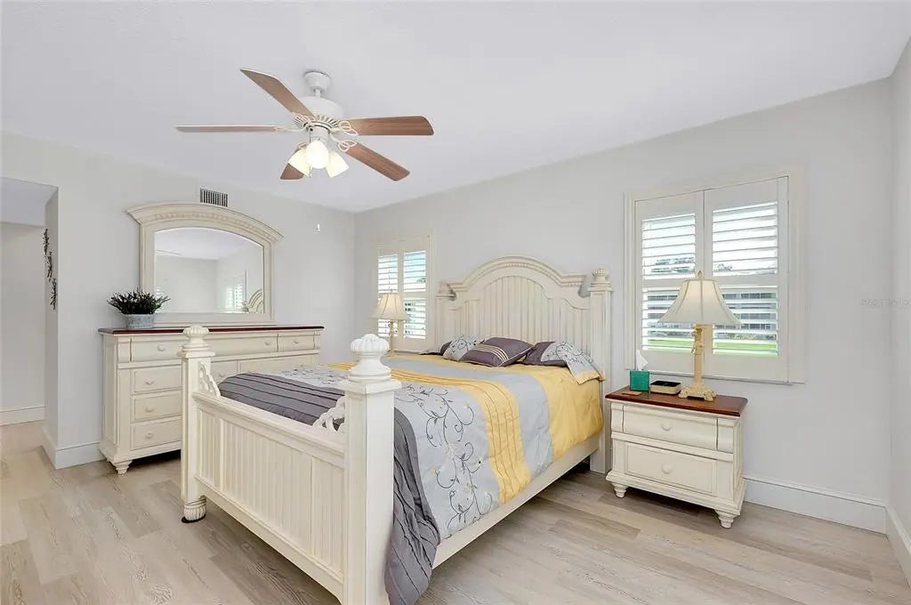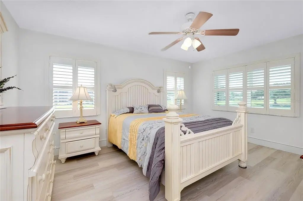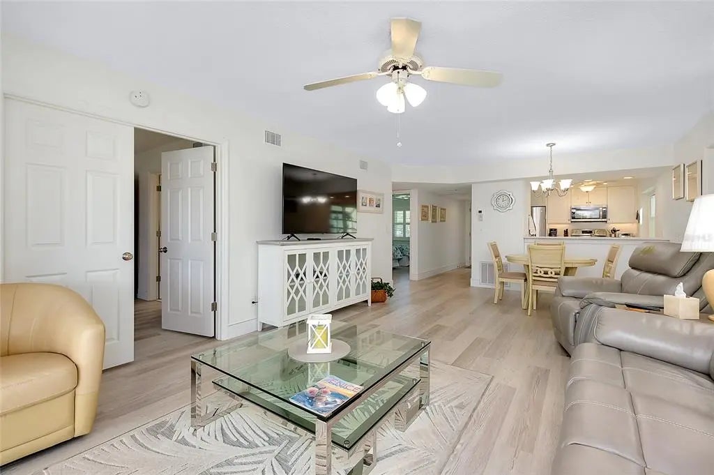 Don’t let this one slip by! This exceptionally renovated, tastefully furnished, and true turnkey residence delivers the Florida lifestyle you’ve been dreaming about. One of the largest floor plans in the community, this 3-bedroom beauty checks every box: in-unit laundry, abundant closet space, and spectacular lake and Bobcat Trail golf course views right from home. Step into the stunning 2022 kitchen remodel — complete with stainless steel appliances, soft-close cabinetry, quartz countertops, a charming garden window, and even hidden toe-kick storage drawers (yes, they’re as cool as they sound). Hosting is a breeze with the open dining-to-living layout designed for seamless entertaining. Both bathrooms received a top-to-bottom upgrade in 2023, featuring premium cabinetry and quartz finishes to match the kitchen. Flooring has been smartly updated as well: ceramic tile in the kitchen and baths and luxury vinyl in living areas — all highlighted by sleek 6” modern baseboards. Impact-resistant windows installed in 2024 provide peace of mind and are dressed with timeless plantation shutters. Outdoor living? Absolutely covered — literally. The spacious lanai features a 2023 Storm Smart hurricane screen, turning the space into your favorite year-round retreat, rain or shine. Major systems are already handled for future comfort: Hot water heater (2020), • A/C (2023), Building exterior painted (2022), Metal tile roof replaced in 2024. Your designated carport includes an attached exterior storage shed — perfect for beach gear, golf clubs, tools and toys — and yes, the shed’s refrigerator stays, so grab a cold drink on your way to the pool. Bottom line? This is a beautifully updated, worry-free, live-in-style home in a prime Florida setting. Just unpack… and start loving life.