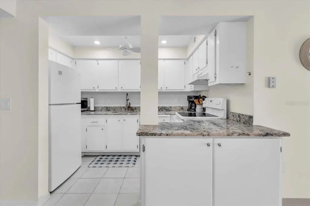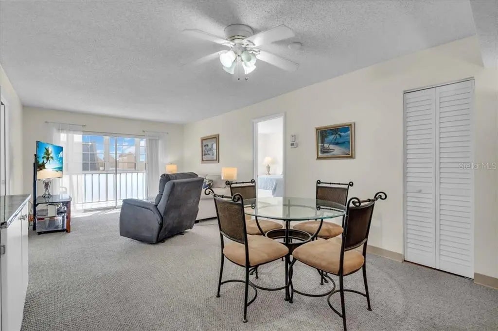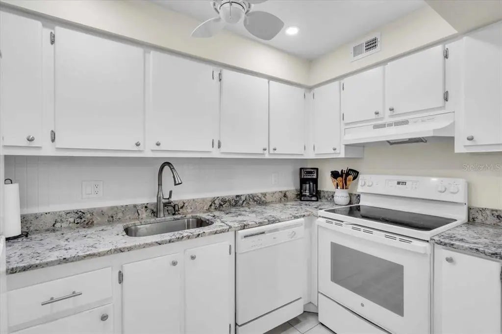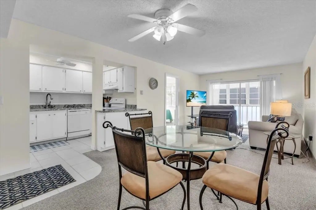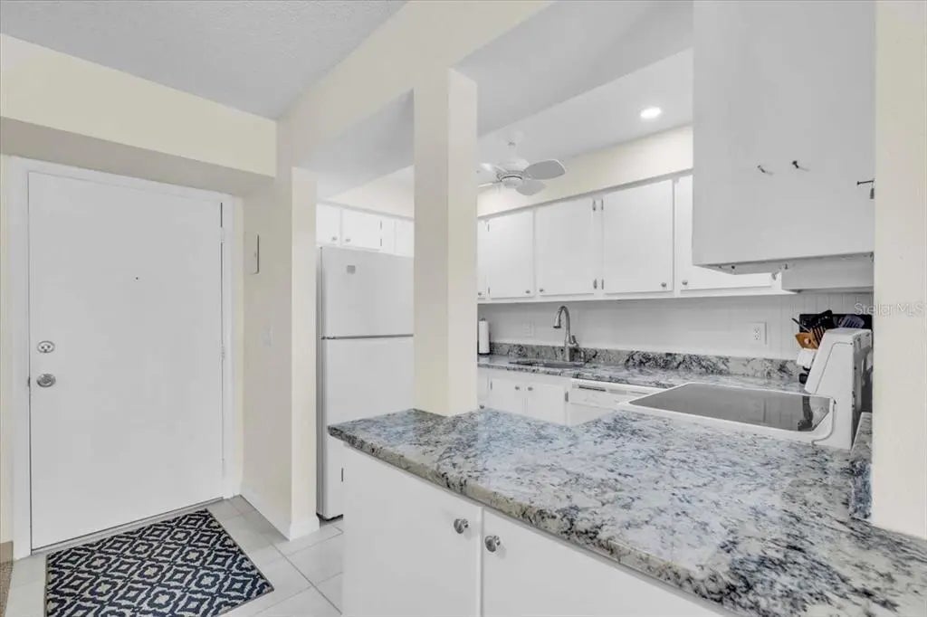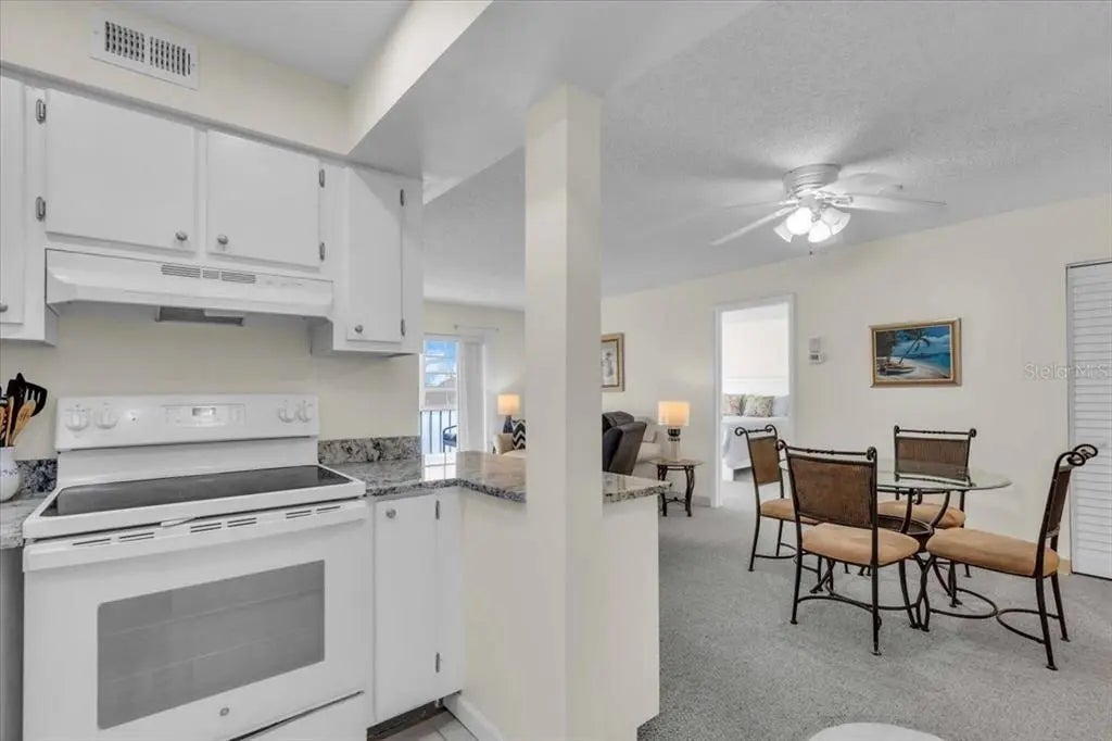 Welcome to this bright and cheerful furnished two-bedroom, two-bath corner condo, perfectly situated in a desirable 55+ community in Venice! As an end unit on the third floor, this condo enjoys abundant natural light and an open, airy feel throughout. Step inside to a spacious living area with carpeting, while the kitchen and both bathrooms feature stylish tile flooring. The kitchen opens to the dining room and boasts lovely granite counter tops, a dishwasher, oven, and refrigerator. You’ll love the large walk-in pantry, offering plenty of space for food storage or additional needs. The primary suite is a true retreat with a walk-in closet and an en suite bath adorned with stone-look tile floors, a tub/shower combo, and a linen closet. The bedroom has a queen-sized bed, but could easily accommodate a king. The guest bedroom is equally inviting, offering generous closet space and its en suite bath with a walk-in shower, stone-look tile floors, and linen closets. Enjoy relaxing or entertaining on the enclosed lanai, perfect for year-round enjoyment. While the washer and dryer are not in the unit, a laundry room is available in the building, which also features an elevator for easy access. This vibrant community offers excellent amenities, including a swimming pool and clubhouse, and is ideally located close to shopping, gyms, restaurants, the new Sarasota Memorial Hospital, and just minutes from the island of Venice. Whether you’re seeking a seasonal retreat or a year-round residence, this condo is the perfect place to call home. Schedule your private showing today and discover the best of Venice living!