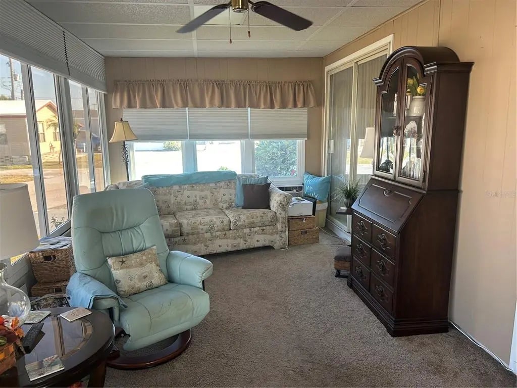 You will get the "WOW" factor when you enter into the kitchen, which features granite countertops, pull out shelves in lower cabinets, for easy access, a lazy susan, and Pergo flooring. Check out the recently updated bathroom. This home is beautifully furnished, and the enclosed front room makes you want to sit down and just enjoy your surroundings. This 2 bedroom, 2 bath home is close to the entrance of the park. This home has lots of light, especially that front room where you will be spending most of your time. For your convenience, all lower kitchen cabinets have pull out shelves and a lazy susan. Enjoy the outdoors and the beautiful landscaping. Check out that barn door and extra refrigerator. AND, this property offers a premium home warranty that will last until 7/31/26 and is transferable to buyer. These warranties are great. They cover most major items, AC, hot water heater, electrical, plumbing and normal appliances. Walk, ride your bike or golf cart to Publix, the pool, clubhouse or waterway. Furnished with a few exceptions. The front room will be the most used room in the house. Resort Style Living! This beautiful community is located on Venice Island. Enjoy the heated pool with water aerobics and exercise classes. Country Club Estates has two clubhouses, both with kitchens. One clubhouse has a stage for bands and performances, the other overlooks the waterway with rented boat slips for the residents. From the boat club to the book club, you will probably find it here. Pickleball, shuffleboard, cornhole, billiards, ping pong, library, fitness center, most card games, karaoke, events planned for the holiday, local bands and DJ's for dances, neighborhood parades and scavenger hunts. Too many to list everything. Come and see for yourself.