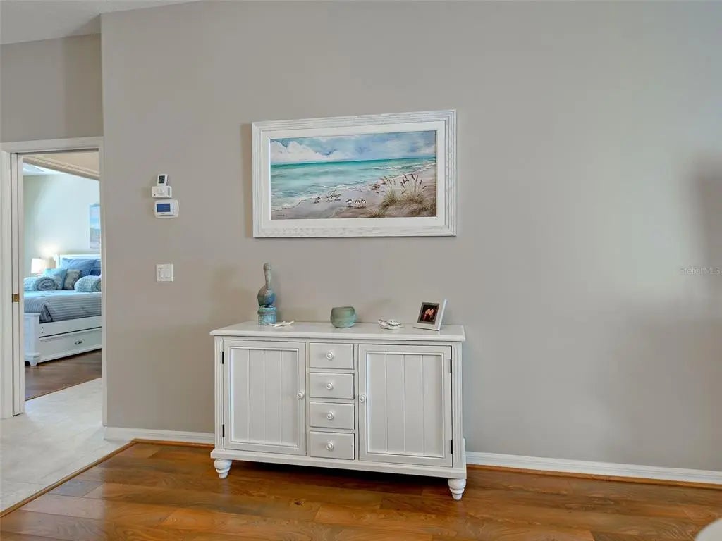 THIS IS THE ONE YOU’VE BEEN WAITING FOR! Step into this TURNKEY FURNISHED 2 Bedroom 2 Bathroom 2 Car Garage villa located in the highly sought-after Pelican Pointe Golf & Country Club, a premier gated golf community (Golf membership is optional) in Venice, Florida. From the moment you enter, you’ll appreciate the attention to detail, thoughtful updates, and immaculate care that make this home truly special. The spacious foyer opens into a bright, open-concept living area where the kitchen, dining, and living spaces flow seamlessly together—perfect for both entertaining and relaxing. The modern, coastal-inspired color palette creates a chic, beachy vibe that reminds you daily that you’re living in paradise on Florida’s Gulf Coast. The light and airy kitchen features ample cabinetry, solid surface countertops, and a reverse osmosis system (2019) for convenient, great tasting water. The cozy sitting room, currently set up as a charming coffee bar, offers a peaceful nook where you’ll enjoy your morning brew or favorite book, all while soaking up the natural sunlight streaming in. The split bedroom floor plan ensures privacy for you and your guests. The spacious primary suite includes sliding doors to the lanai, a walk-in closet with built-in shelving, and a large ensuite bathroom with dual vanities and a walk-in shower. The guest bedroom also features a walk-in closet with built-in shelving, providing additional storage, and a convenient pocket door offers added privacy for visitors. And notice how there’s even enough room to set up the closet as a baby’s sleep space, with more than enough room for a Pack-N-Play crib, mobile, and still plenty of storage. Both bathrooms include comfort-height toilets, and there’s no carpet, just easy-care laminate and tile flooring throughout. Step outside to the extended screened lanai, where you’ll enjoy tranquil views of the 11th tee box of the Preserve Course, and stunning Florida sunsets each evening. The exterior of the villa has been freshly painted, with a new roof (2023), easy-to-close accordion storm shutters, and a new whisper-quiet belt-driven garage door for added comfort and peace of mind. Living in Pelican Pointe means resort-style amenities are at your fingertips—a clubhouse with bar & grill, card room, library, banquet facilities, heated pool with lap lanes, fitness center, tennis and pickleball courts, plus 27 holes of championship golf (membership optional). With its maintenance-free lifestyle, newer mechanicals, and unbeatable location just minutes from Venice’s gorgeous beaches, shopping, dining, I-75, and historic downtown—you’ll be perfectly positioned to enjoy everything the Gulf Coast has to offer. **A/C 2019, Water Heater 2018, Washer & Dryer 2021, Dishwasher 2023, Refrigerator 2019** Ask about the GOLF CART AVAILABLE under separate bill of sale! Move right in and start living the Florida lifestyle you’ve been dreaming of!