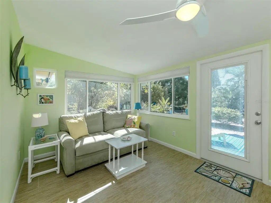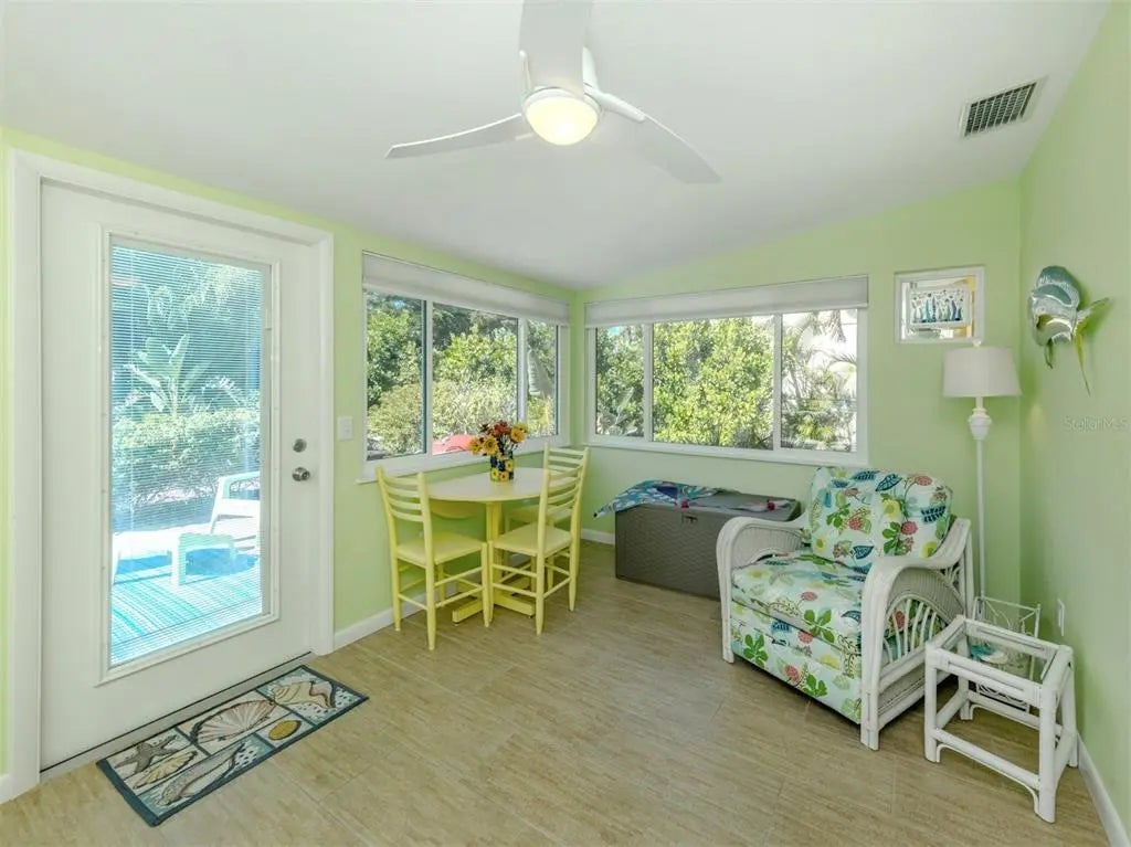 Great investment opportunity! Location, location, location. Discover your happy place in this delightful two-bedroom, two-bath home ideally in the heart of Venice Island. Just two blocks from historic downtown and five blocks from the Gulf beaches, this home offers a blend of charm, comfort and convenience. Enjoy morning walks or bike rides along the nearby Legacy Trail, visit the weekly farmers market, or dine at one of Venice’s many acclaimed restaurants. Festivals, art fairs and the local theater are all within easy reach, while a park right across the street provides a peaceful spot to unwind, enjoy a sunny afternoon and fly a kite. Inside, you’ll find a warm and inviting living and dining area ideal for entertaining. A cheerful bonus sunroom opens up to the large backyard and has long served as a third bedroom for guests, adding flexibility to the layout. The kitchen offers a lovely view of the spacious, private backyard, ideal for outdoor dining, gardening or relaxing with a good book. A second full bath and an oversized one-car garage complete the home’s thoughtful design. Whether you’re seeking a full-time residence or a Florida retreat, this property delivers simple joy in one of Venice Island’s most desirable neighborhoods. Schedule your private showing today and experience the best of coastal living where you can go to town or bike to the beach and make this charming home your own.
