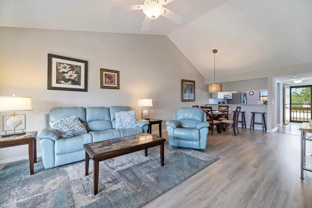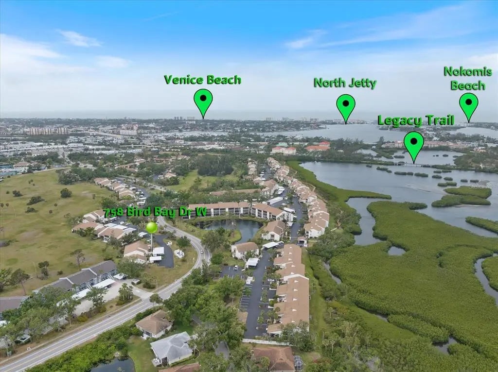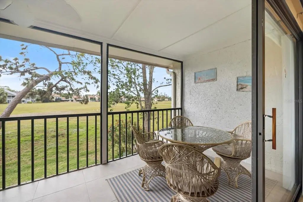 Welcome to your turnkey furnished Florida retreat, where every day feels like a vacation. This beautifully updated second-floor condo in Bird Bay Village offers an unobstructed view of the former Hawks Run Golf Course, creating a peaceful, green backdrop that sets the tone for relaxed, care-free living. Step inside and you’re greeted by vaulted ceilings and an open, airy floor plan that fills the space with natural light. The living and dining areas feature luxury vinyl plank flooring, while the kitchen is tiled and tastefully updated with crisp cabinetry, modern appliances, and a garbage disposal. Everything is designed for comfort, style, and ease of maintenance. The expansive screened lanai, finished in ceramic tile, is a true extension of your living space—perfect for morning coffee or evening breezes. The lanai also includes your own laundry area with a Maytag washer and dryer, along with generous storage space for all your beach gear and seasonal items. The primary bedroom is a serene retreat, offering a large window, ceiling fan, ample closet space, and a fully updated en-suite bath. The second bedroom, currently arranged as a den, features built-in shelving and a convenient Murphy bed—giving you flexible space for guests, a home office, or a cozy reading nook. A stylish guest bath has also been thoughtfully updated. This condo is offered turnkey furnished, so you can move right in and start living the Florida lifestyle without lifting a finger. Bird Bay Village is known for its resort-style amenities and vibrant coastal community. This condo is just a short stroll from the Phase II pool, where you’ll find an extended patio and grilling area—perfect for entertaining friends and connecting with neighbors. Right across the street, a new completed waterfront boardwalk invites you to take in stunning sunset views over Roberts Bay. The community also features a second Junior Olympic-sized pool for laps and leisure, well-maintained tennis and pickleball courts, and a fully equipped fitness center. The spacious clubhouse, complete with a full kitchen, is a hub for social events and gatherings. Location is everything, and here, you’re just minutes from the soft sands of Venice Beach and the charm of historic Downtown Venice, filled with boutique shopping, dining, and cultural attractions. Outdoor lovers will appreciate that the Legacy Trail is just steps from the entrance, offering miles of scenic walking and biking paths. This condo is move-in ready and offers the perfect blend of style, convenience, and laid-back Florida living. Whether you’re looking for a seasonal escape or a full-time home in the sun, this is your chance to own a piece of Paradise. Schedule your private showing today—it’s a great day in Paradise!