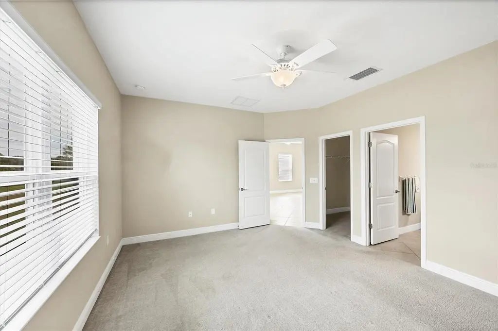 - Interior FeaturesCeiling Fan(s), Eating Space In Kitchen, High Ceilings, Kitchen/Family Room Combo, Open Floorplan, Solid Surface Counters, Split Bedroom, Tray Ceiling(s), Walk-In Closet(s), Window Treatments