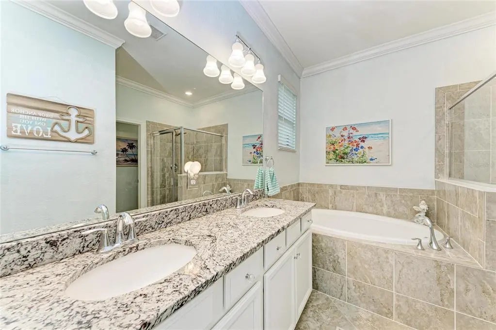 LOCATION LOCATION LOCATION Welcome to your private retreat in the resort-style community of Gran Paradiso at WELLEN PARK! Offered partially turn-key if desired, this beautifully maintained 3-bedroom, 2-bath home perfectly combines comfort, privacy, and outdoor living. Designed for relaxed Florida living, the single-story layout features an open-concept design where the great room, dining area, and kitchen flow seamlessly together — ideal for entertaining or everyday life. The primary suite offers a peaceful escape with dual vanities, a soaking tub, walk-in shower, and spacious closets, while two additional bedrooms provide flexibility for guests, a home office, or hobbies. Step outside to your own backyard oasis, complete with a HEATED SALTWATER POOL AND SPA, TRAVERTINE pavers, and a screened lanai surrounded by mature landscaping AND PRIVACY — the perfect setting for year-round enjoyment. Thoughtful UPGRADES include custom wood ceiling and wall trays, floor-to-ceiling mirrors in the dining area, a screened front entry, new luxury vinyl plank flooring in all bedrooms, custom window treatments, upgraded lighting, ceiling fans in every room, 50-amp EV charging in the newly insulated garage, a generator quick connector with generator included, and a new pool and cage (built in 2022) with remote controls for added convenience. Living in the golf cart friendly community of Gran Paradiso means enjoying world-class amenities such as a resort-style pool, clubhouse, state-of-the-art fitness center, library, billiards room, card rom, and aerobics/yoga room as well as basketball, tennis and pickleball courts, community activities and events, guard-gated entry, and scenic walking paths. Ideally located within Wellen Park, you’ll have easy access to downtown Wellen Park to enjoy shopping, dining, outdoor concerts and the newest phase of downtown Wellen Park set to open early 2026 for even more entertainment and enjoyment. Catch the Atlanta Braves Spring Training or various events at CoolToday Park in the Playmore District of Wellen Park. Just minutes from world-class Gulf beaches, including Manasota, Venice, Nokomis and Siesta Key, this home offers the perfect blend of resort living and coastal convenience — where every day can end with sand between your toes and a Gulf sunset on the horizon. Whether you’re seeking an active lifestyle or a peaceful escape, this home offers the best of both worlds — don't miss your chance to call this home!