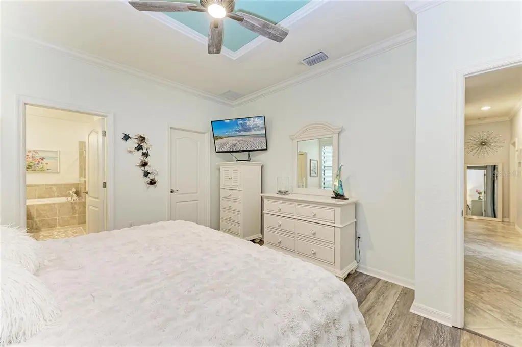- Interior FeaturesBuilt-in Features, Ceiling Fan(s), Crown Molding, Eating Space In Kitchen, High Ceilings, Living Room/Dining Room Combo, Open Floorplan, Solid Wood Cabinets, Split Bedroom, Stone Counters, Tray Ceiling(s), Walk-In Closet(s)
