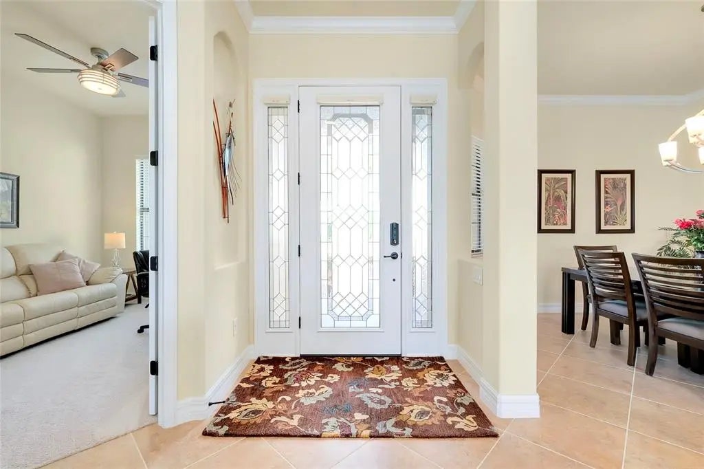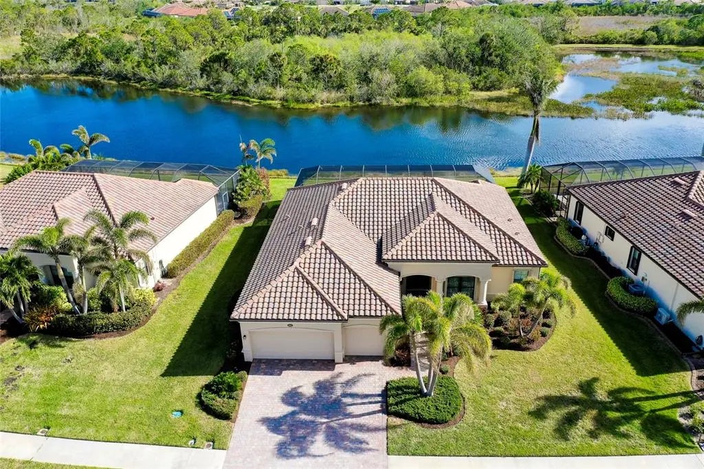 Built on a premium full lake view lot, this immaculate luxury home includes a custom designed pool and spa, study or 4th bedroom and the 3 car garage. Beautiful finishes, cabinetry and attention to detail makes this meticulously maintained estate home an exceptional property. Leaded glass entry doors open into the great room to an amazing lake and lush vegetation view through the triple sliders. The pool cage has the scenic-view screening and the large lanai with sealed pavers allows for entertaining. Great privacy and so relaxing! The heated salt-water pool includes auto fill to maintain the proper level year round, pop up cleaning jets, lighting and attached heated spa. The pool pump, filter, housing and cage screening is all new. The lanai has access to the pool bath. The Oakmont model offers a split floor plan with an open concept living area, tray ceilings, crown moldings, and ceramic tile floors in main areas. The beautiful kitchen has granite countertops, stainless steel appliances, cooktop, detailed wood cabinetry, a raised bar plus a dinette area looking out to the lake. Safety features include hurricane locking accordion shutters for the windows, Kevlar automated screens on front entry and covered lanai area and a security system. The primary bedroom has access to the pool area, large walk in closet, en-suite bath with 2 separate vanities, a Roman walk in shower and a soaking tub. The front bedroom is currently used as an office. The remaining 2 bedrooms are on the other side of the home with a full bathroom plus the 1/2 bath for the pool area. The laundry room has built in cabinetry and a sink and leads to the 3 car garage. The garage has been upgraded with an epoxy finished floor, a workshop and pull down stairs to storage attic area. New AC unit and air purification system installed in April 2025. The gated community of Gran Paradiso has a low HOA fee that includes lawn care, irrigation, cable, internet and use of the community amenities: a resort-style swimming pool, clubhouse, gym, tennis/pickleball courts, playground and full time activity director. Conveniently located to Venice beaches, airports, hospitals and schools, Wellen Park and the Atlanta Braves Spring Training facility. Furniture is available under separate contract. Move-in ready, perfect for snowbirds as well.