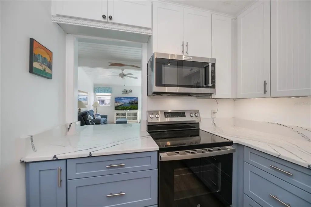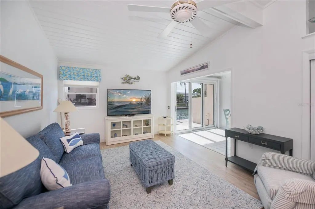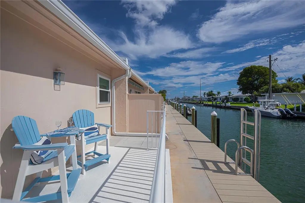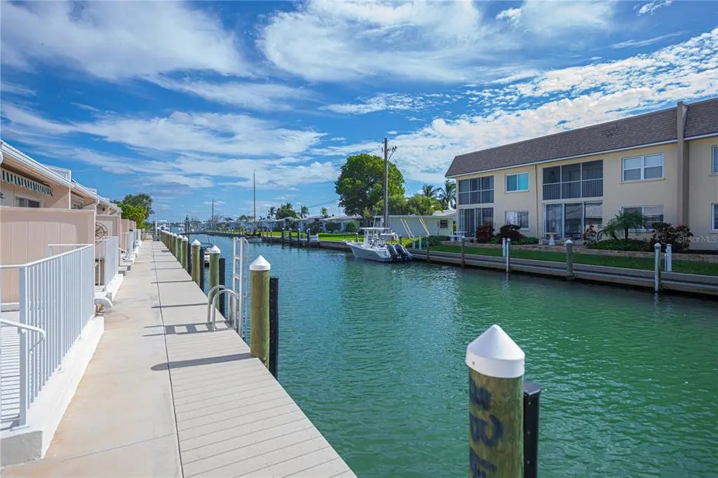 Welcome to Tarpon Center Villas, a beautifully renovated coastal retreat located on the Island of Venice, Florida. A rare opportunity to own, as these units do not come up often. This charming 2-bedroom, 2-bathroom furnished condo offers 966 square feet of thoughtfully updated living space, with deeded Gulf beach access just steps away. What truly sets this property apart is its exclusive private dockage, designated specifically to the unit. Situated along the adjacent seawall, the dock accommodates boats up to approximately 23 feet in length, making it a rare and highly desirable feature for boating enthusiasts. Whether you're heading out for a sunset cruise or a day of fishing, your boat is right outside your back door. Inside, the home has been completely renovated in 2019 and further enhanced in 2025, including a new coastal-grade AC system, fresh interior paint, and new Coretec luxury vinyl plank flooring. The kitchen features modern quartz countertops, updated cabinetry, and clever storage solutions like a custom Lazy Susan corner cabinet. Both bathrooms have been fully modernized with stylish fixtures and frameless shower enclosures. The primary bedroom includes a custom Elfa closet system and a mini home office tucked into a converted closet. Additional highlights include attic storage, washer/dryer hookups, and a reinforced seawall installed in 2024.This condo has been lovingly maintained by the same owner since 1998 and has never been rented—used only for personal enjoyment. With its unbeatable location, extensive upgrades, rare 23-foot boat dockage, and coming completely turn-key furnished this home is ready for its new owner! Whether you are looking for a year-round piece of paradise, a place to hide from the cold during the winter months, or for an investment, this has all you need. In season, there is potential for generous rent, with some rental restrictions. The location is perfect.....deeded beach easement, close to restaurants, downtown Venice, shopping, medical facilities, gorgeous beaches, Venice Theatre, Venice Art Center, Legacy Bike Trail, all within minutes.