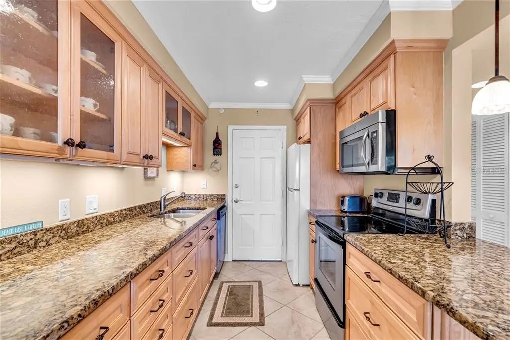 Discover an amazing location on the Island of Venice, just steps away from the Gulf! This updated 2-bedroom, 2-bath, turn-key unit in Gulf Point offers delightful peek-a-boo views of the water. The spacious primary bedroom features an en suite with a walk-in closet and a stylish tiled shower with glass doors. You’ll find a generously sized guest bedroom and across you will find a bath equipped with a convenient tub/tile combination, making it perfect for visitors. The beautifully updated kitchen boasts granite counter tops and ample storage and counter space, ideal for any cooking enthusiast or baker. The living room and dining room create an inviting great room concept that seamlessly transitions to a fantastic enclosed lanai, perfect for year-round use! With tile flooring throughout the living areas, kitchen, and baths, cleanup is a breeze, while the bedrooms provide a cozy feel with plush carpeting. One of the standout features of this unit is the utility closet, offering extra storage space for your pool and beach essentials. When it’s time to unwind, take a refreshing dip in your heated pool and enjoy the great Clubhouse and gentle sea breeze with the Gulf just across the street. Enjoy leisurely strolls to catch the sunset or start your day with a peaceful walk along the beach. Covered Parking. This prime location is nearly perfect, with historic downtown Venice just a short stroll away, where you can savor diverse restaurants, enjoy theater and art, or catch concerts at the gazebo. Plus, public tennis, pickle ball, and basketball courts are just up the road. Don’t wait—call today to schedule your private showing