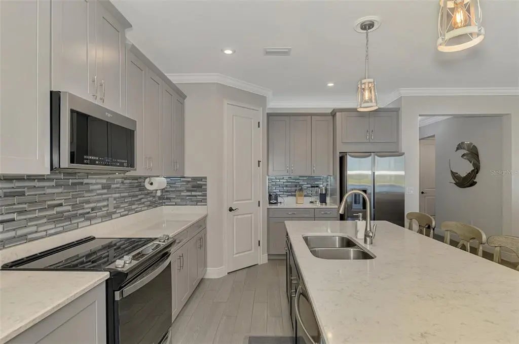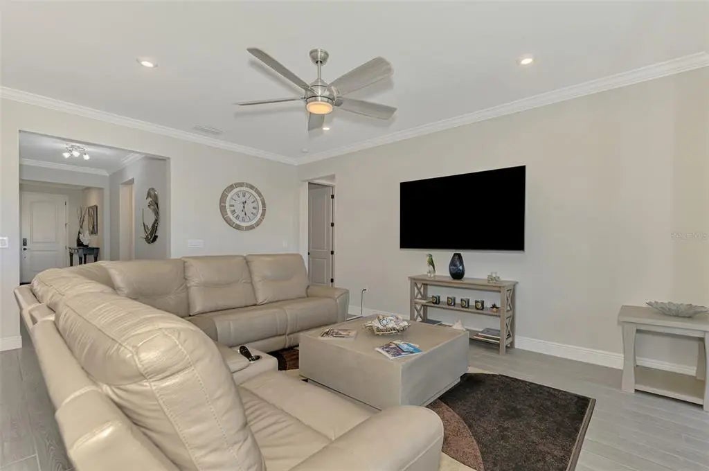 Welcome to your piece of paradise in the highly desirable community of Renaissance at West Villages in the awesome master community of Wellen Park. Walk into your spacious home which includes 3 bedrooms and 2 bathrooms perfectly for family and guests. Each bedroom provides ample space and natural light for comfort and privacy. The open floor plan creates a welcoming atmosphere complemented by high ceilings, crown molding and tasteful finishes. The living areas are designed for relaxation and entertainment. The kitchen provides a large island for entertaining and food prep work. Kitchen upgrades include a beautiful backsplash highlighted by upper and lower cabinet lighting. The separate dining area next to the kitchen allows for plenty of entertaining space. Step outside through your triple sliding doors to your outdoor oasis. Your huge fenced in back yard keeps your furry friends safe. And if you want to walk them there is a dog park withing short walk away. Community highlights include a beautiful community center, pickleball courts and tennis courts, huge pool, lap pool and hot tub. Tons of planned activities throughout the month. You will never be bored. Wellen Park is just a golf cart ride across the street where you can enjoy shopping, restaurants, concerts in the park and an amazing Sunday farmer's market just to name a few. if you are a baseball fan the Atlanta Braves state of the art training center is within the Wellen Park community. Let's not forget the many beaches which are a short drive away, including Siesta Key Beach which is the number one beach in the United States! This home is being sold turnkey! What are you waiting for?